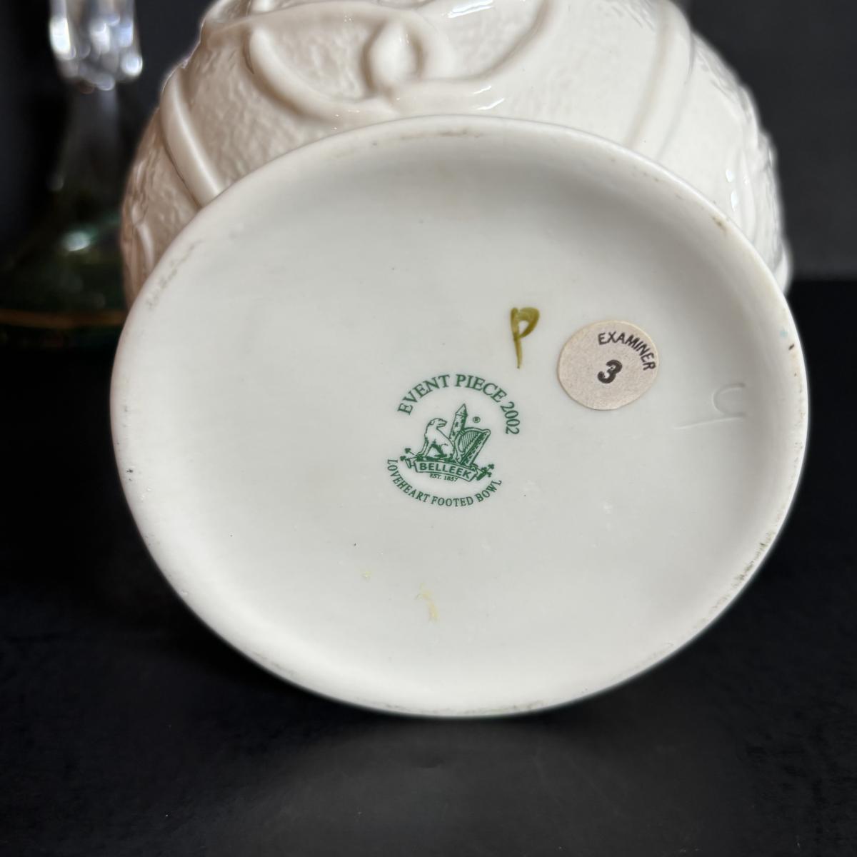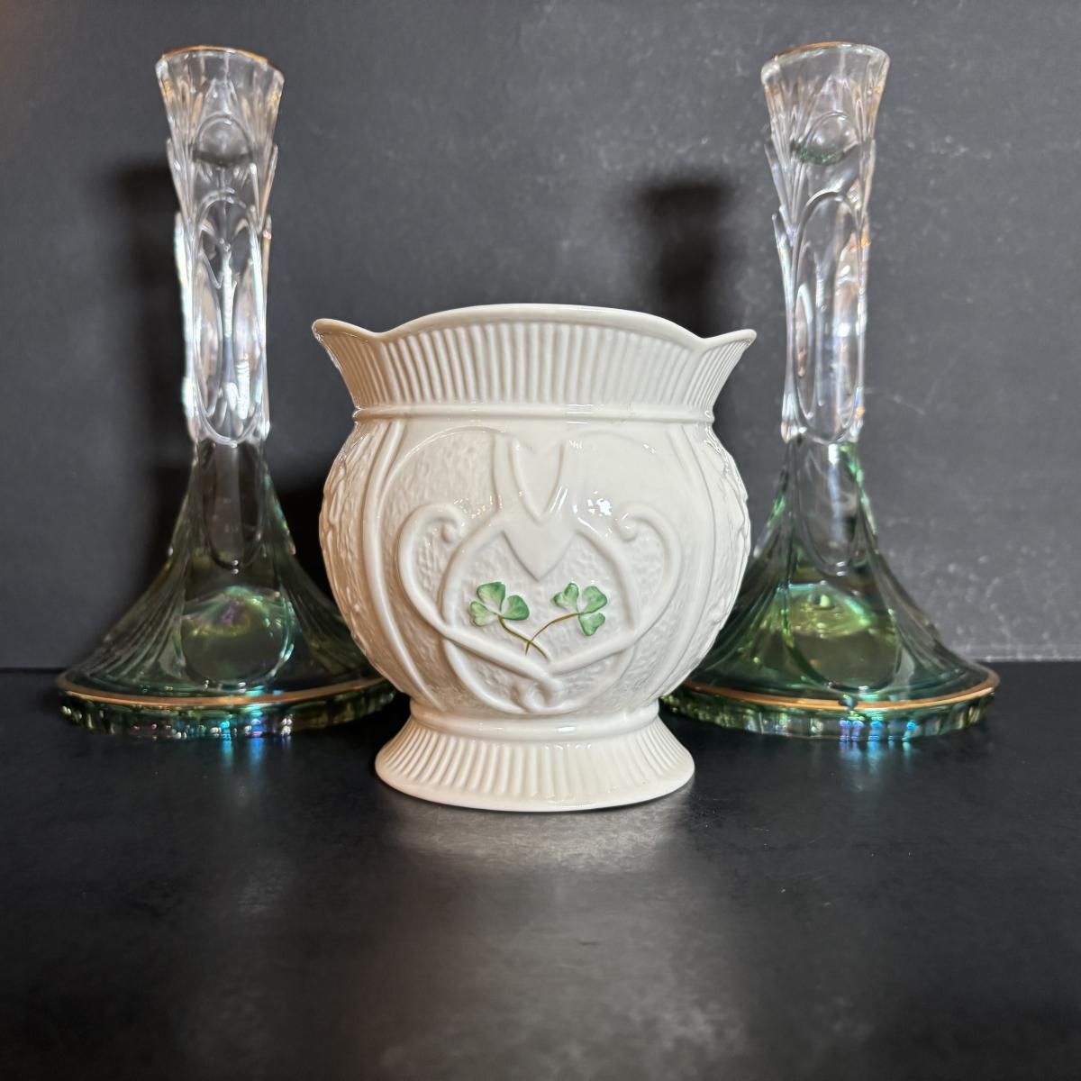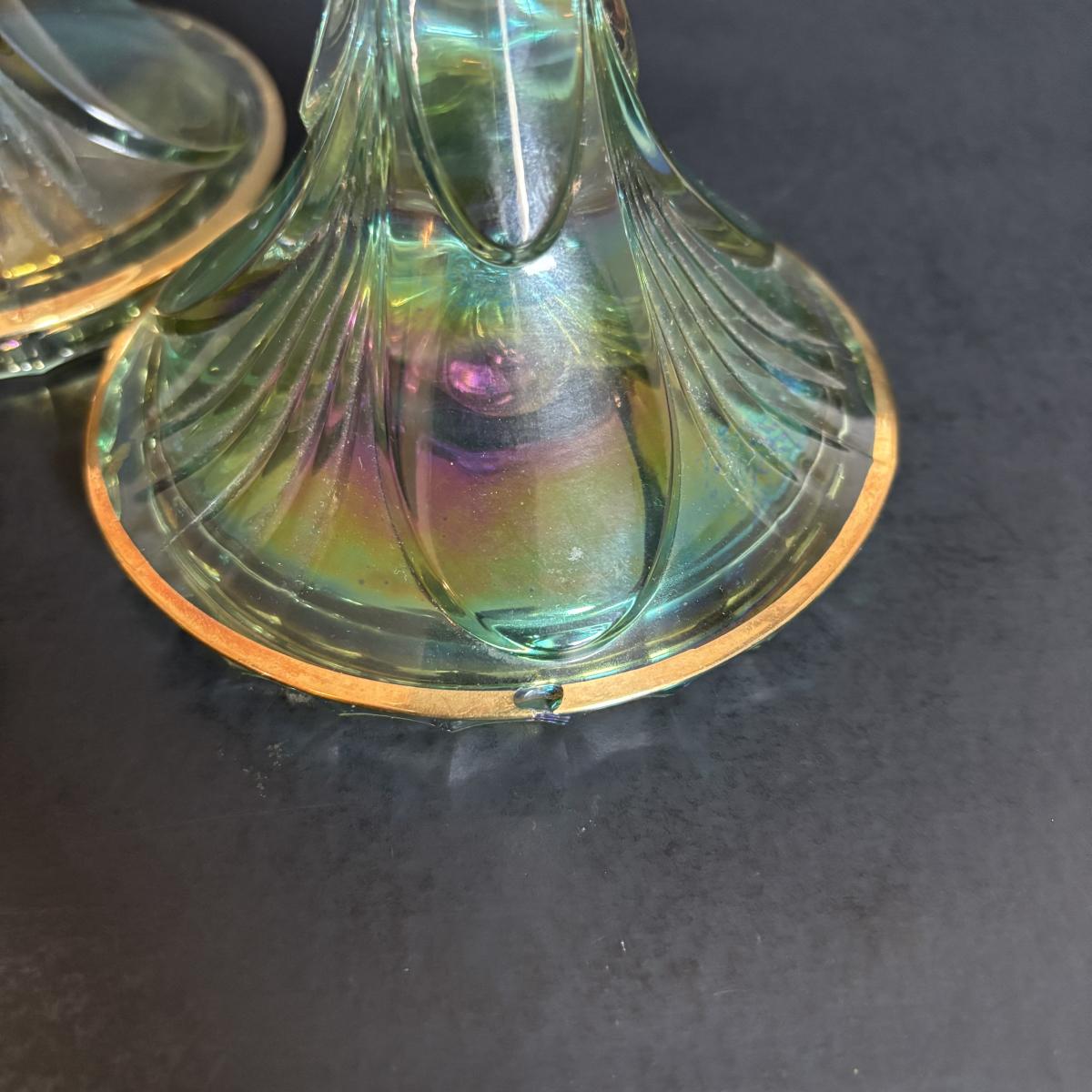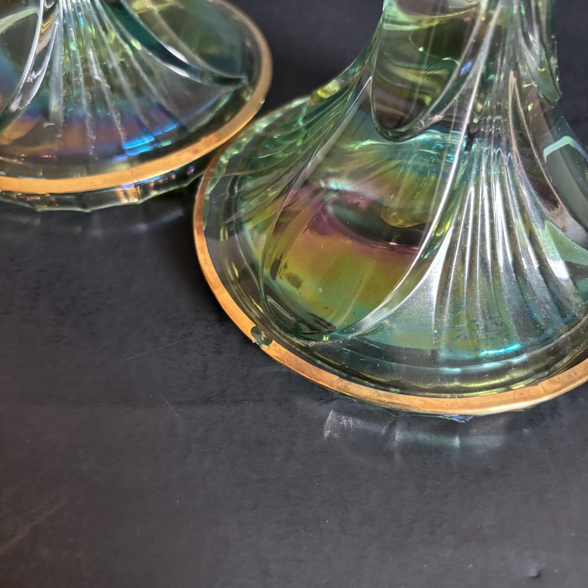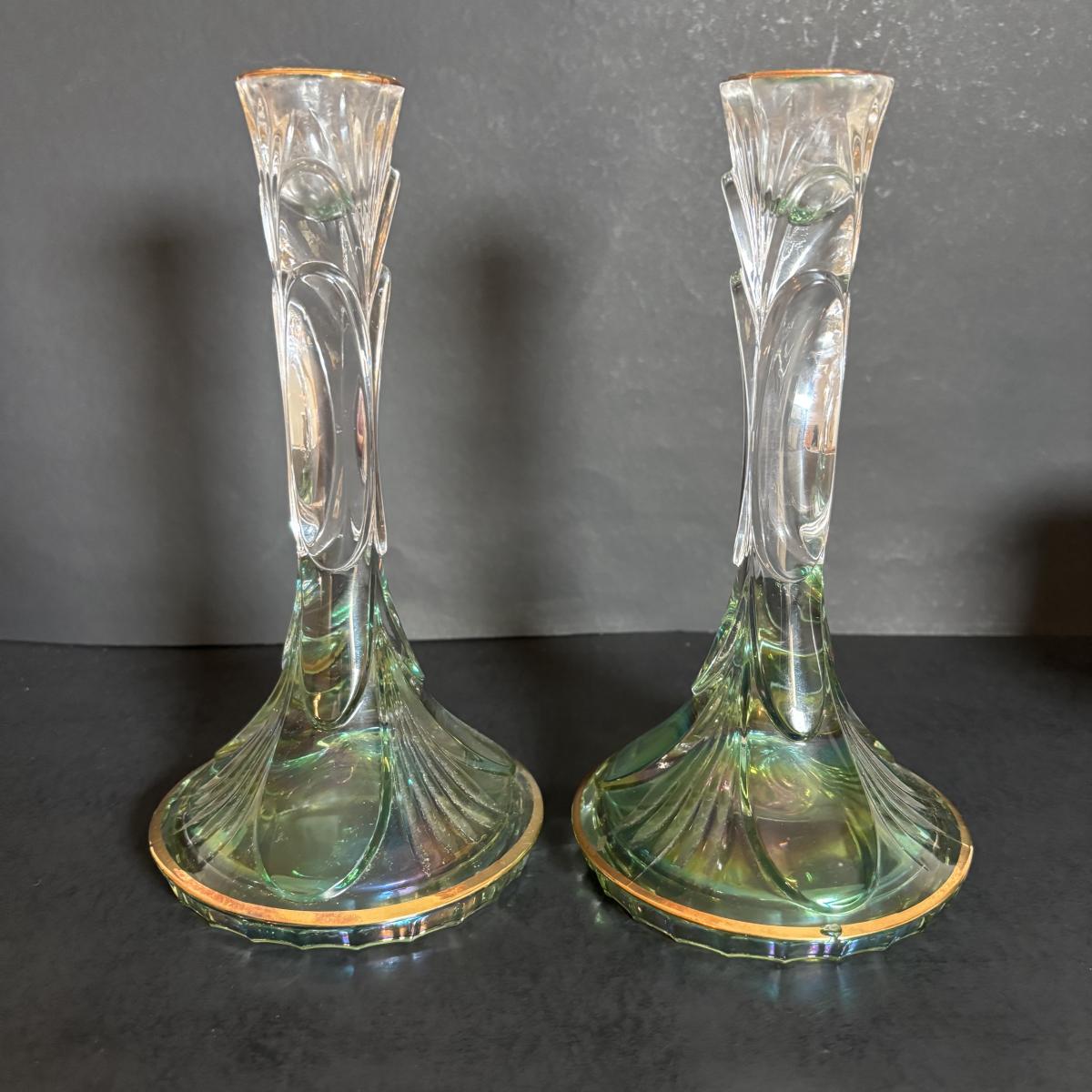 LOT 79: Crystal Iridescent Candle Sticks & Belleck Love Heart Footed Bowl