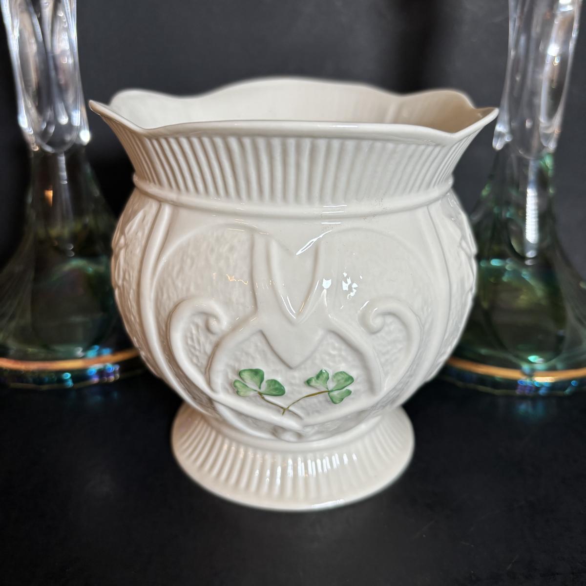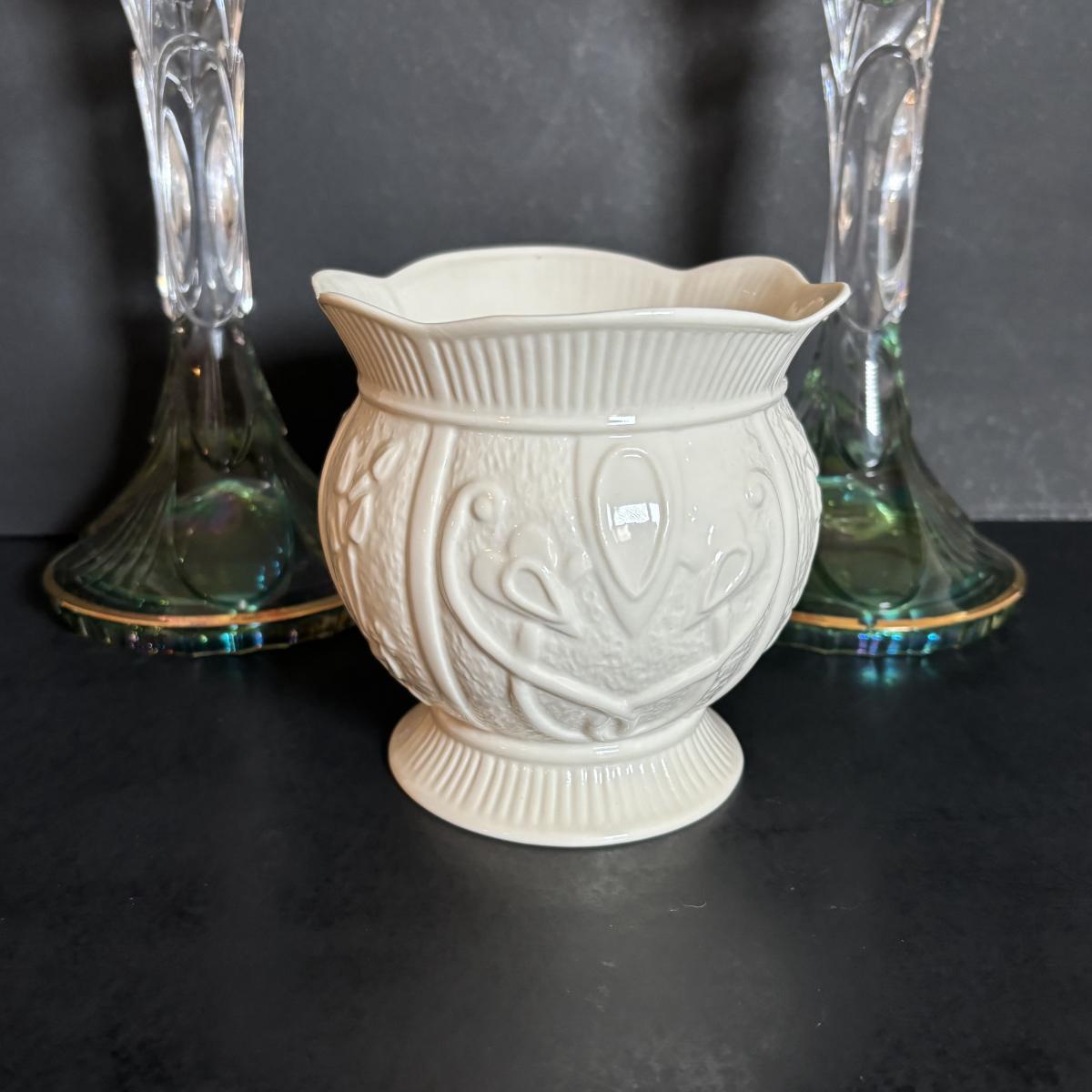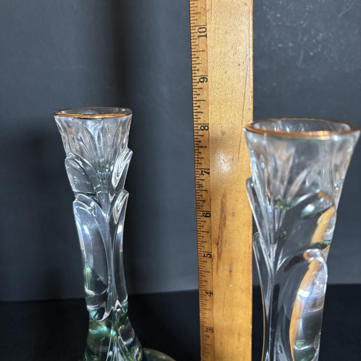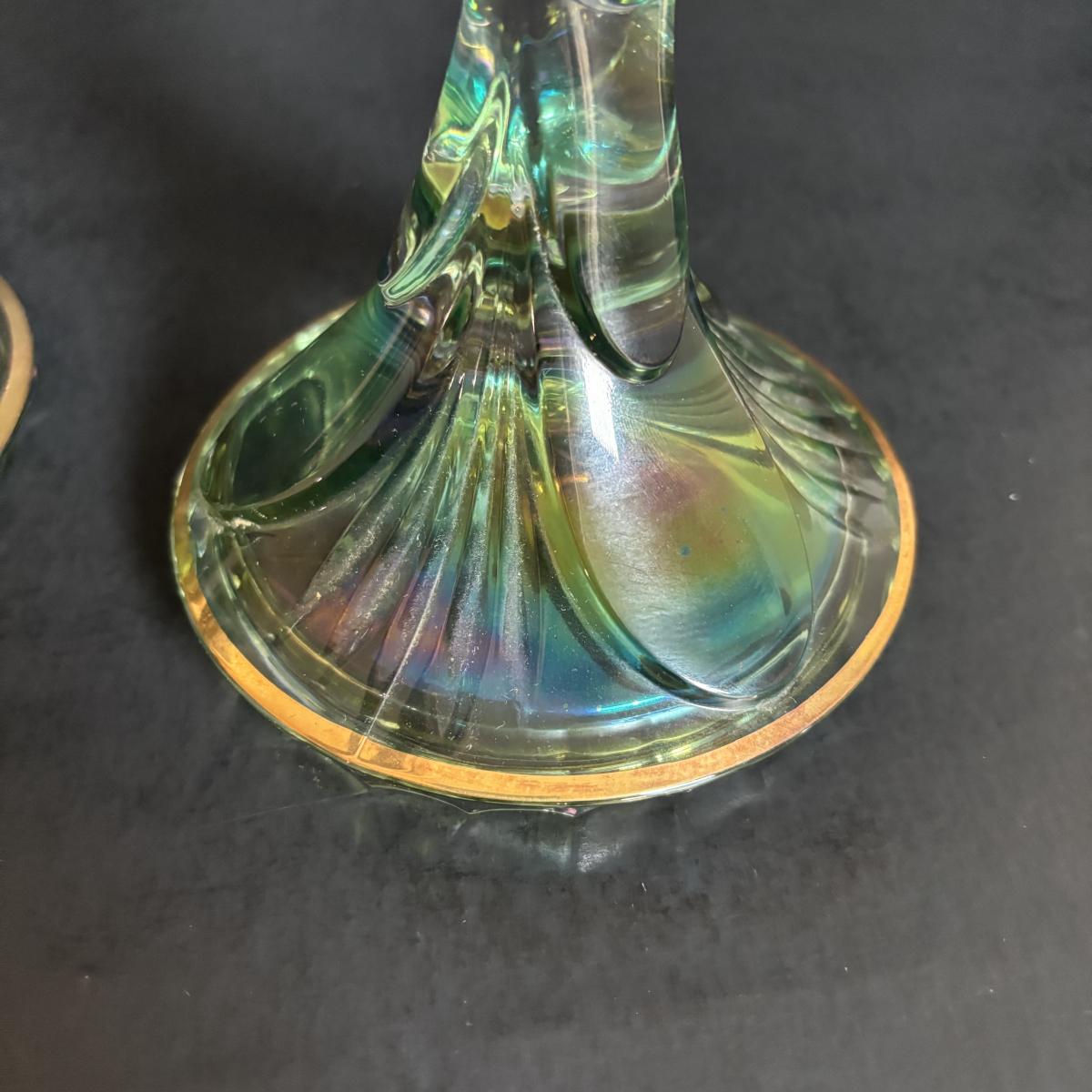 LOT 79: Crystal Iridescent Candle Sticks & Belleck Love Heart Footed Bowl