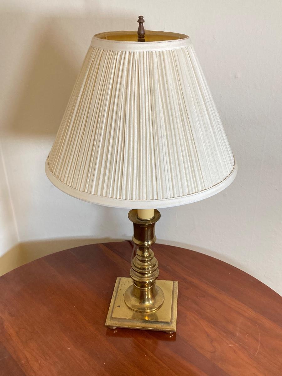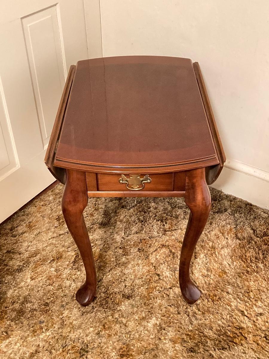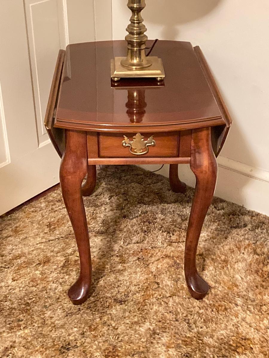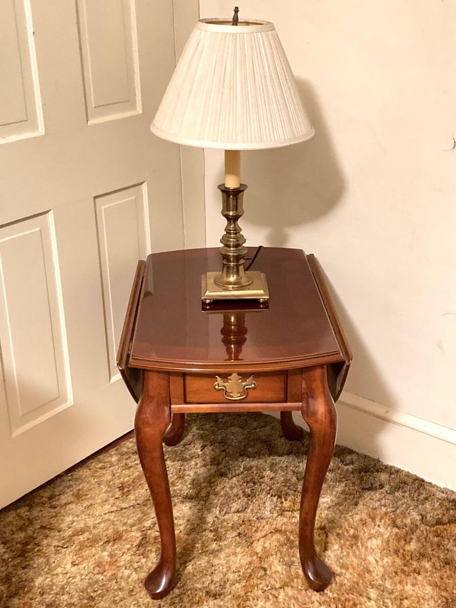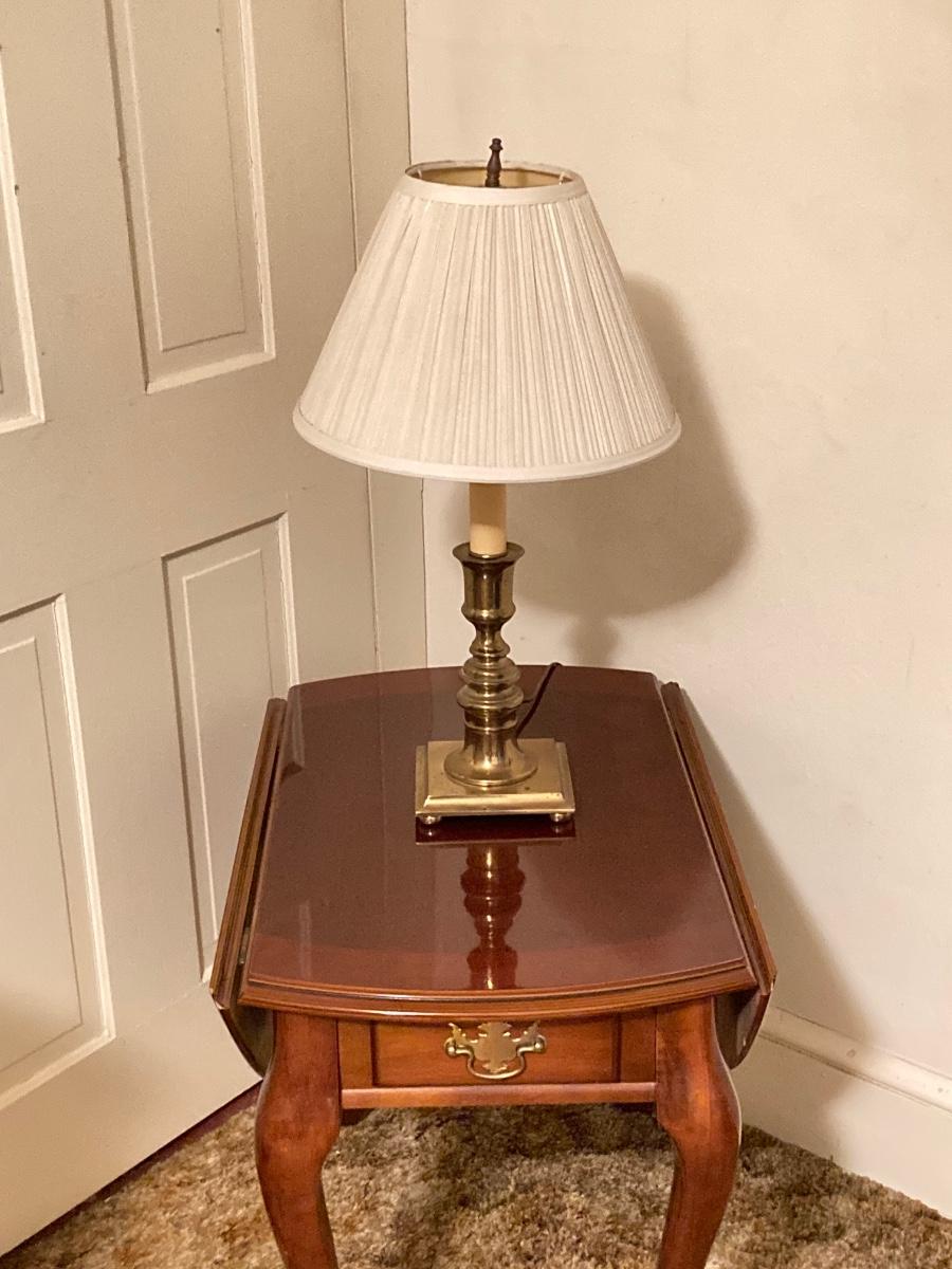 LOT 90: Drop Leaf Side Table and Brass Lamp