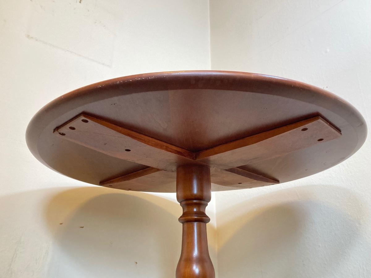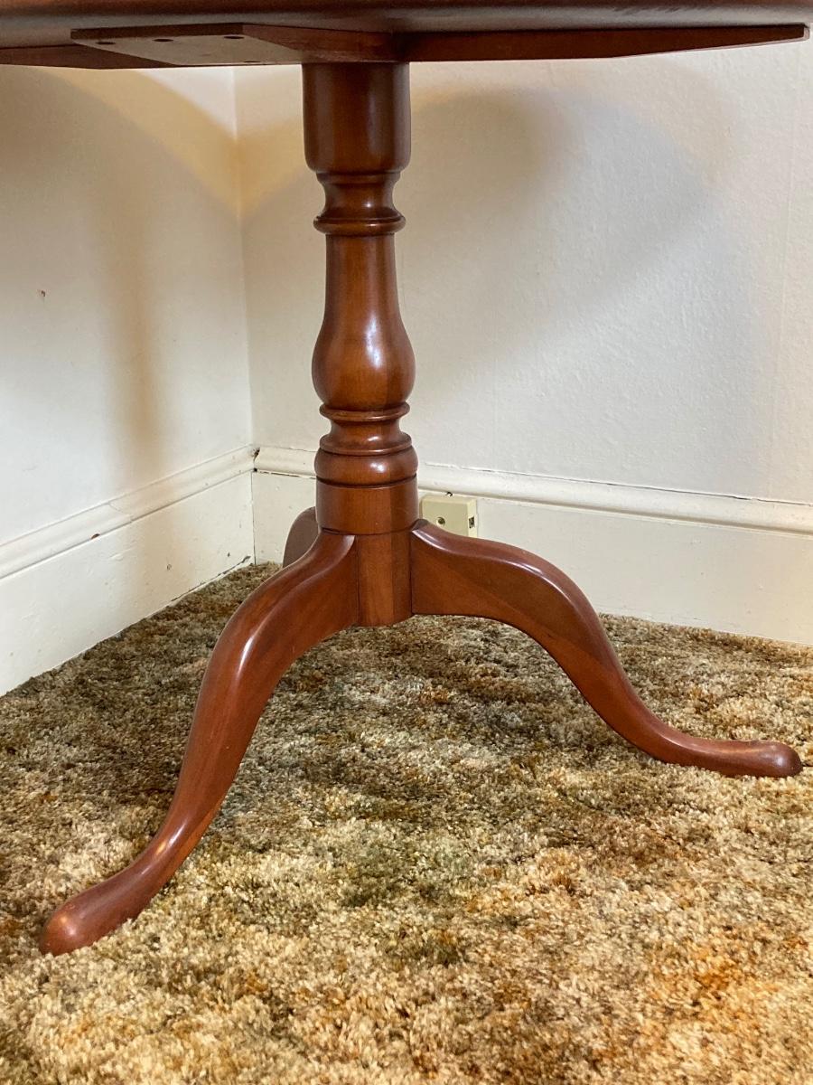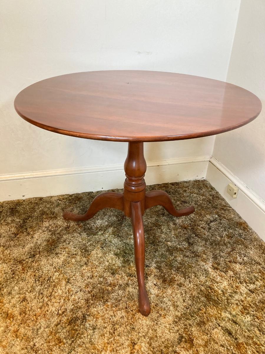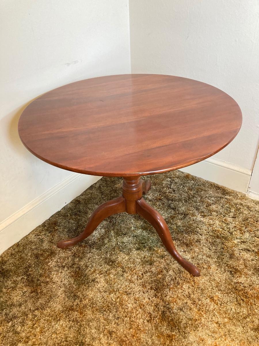 LOT 93: Vintage Round Three Leg Pedestal Wood Table
