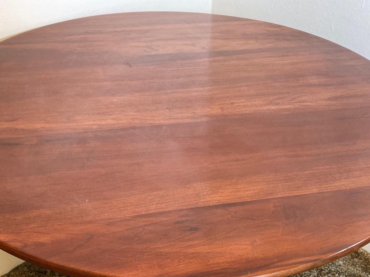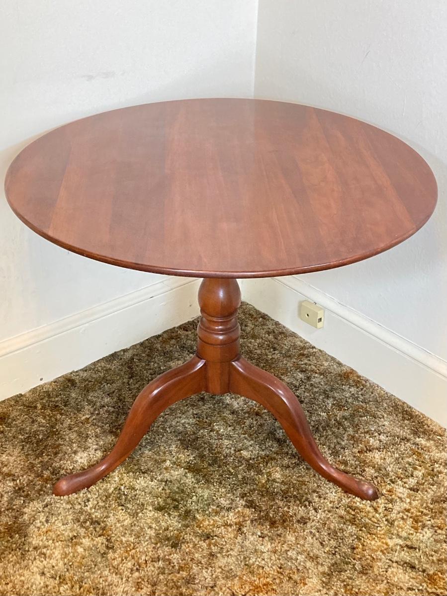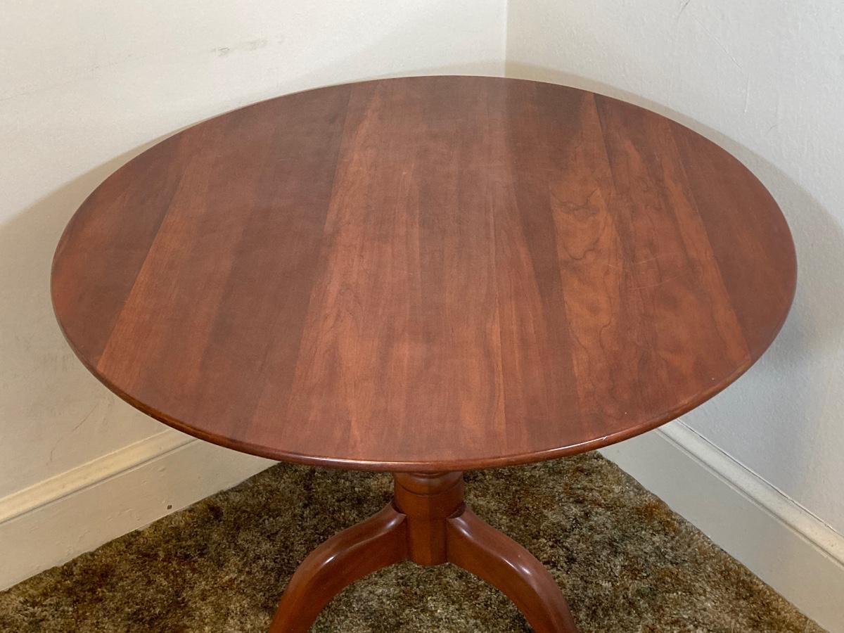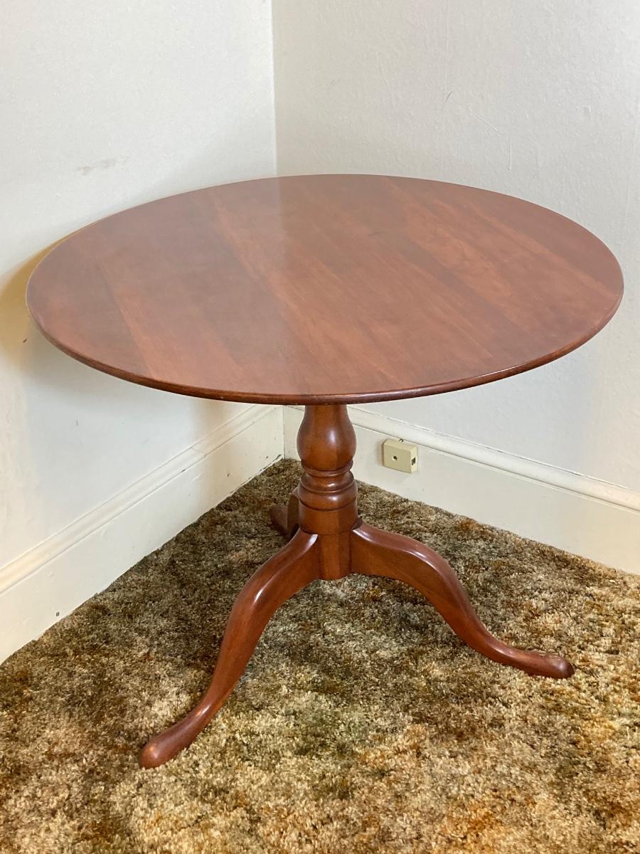 LOT 93: Vintage Round Three Leg Pedestal Wood Table