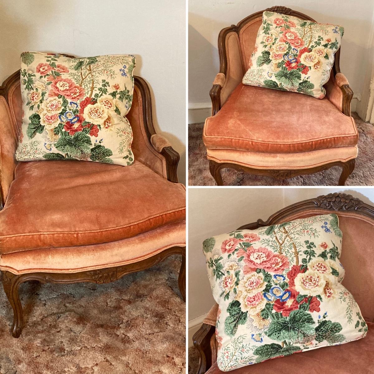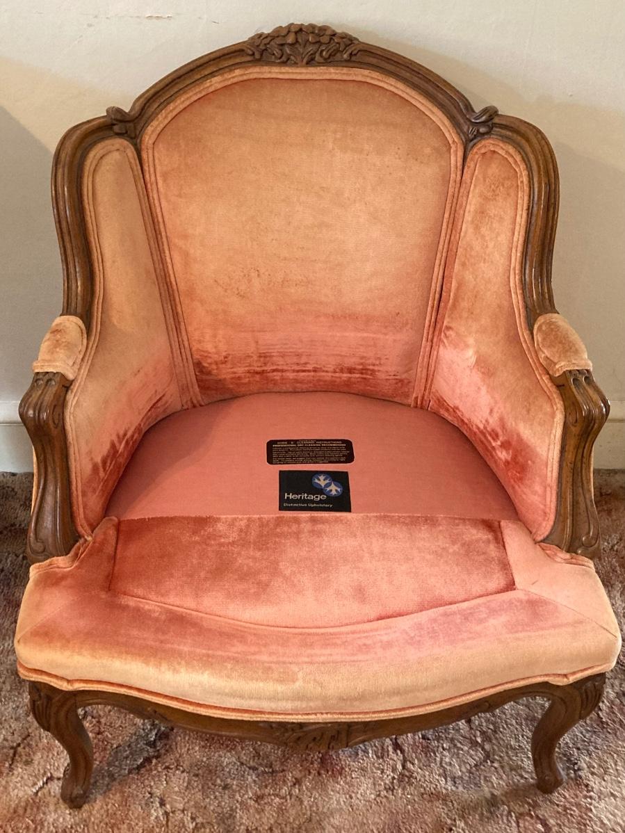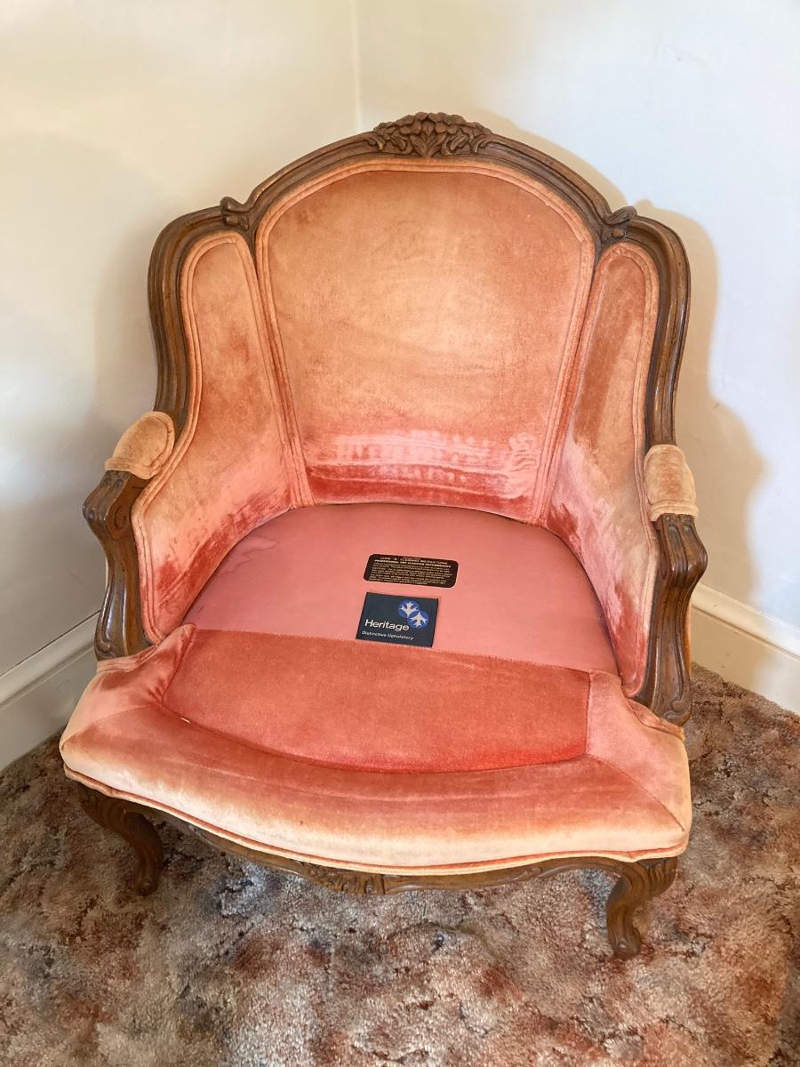 LOT 97: Pair of Heritage Distinctive Upholstered Carved Wood Chairs with Accent Pillows