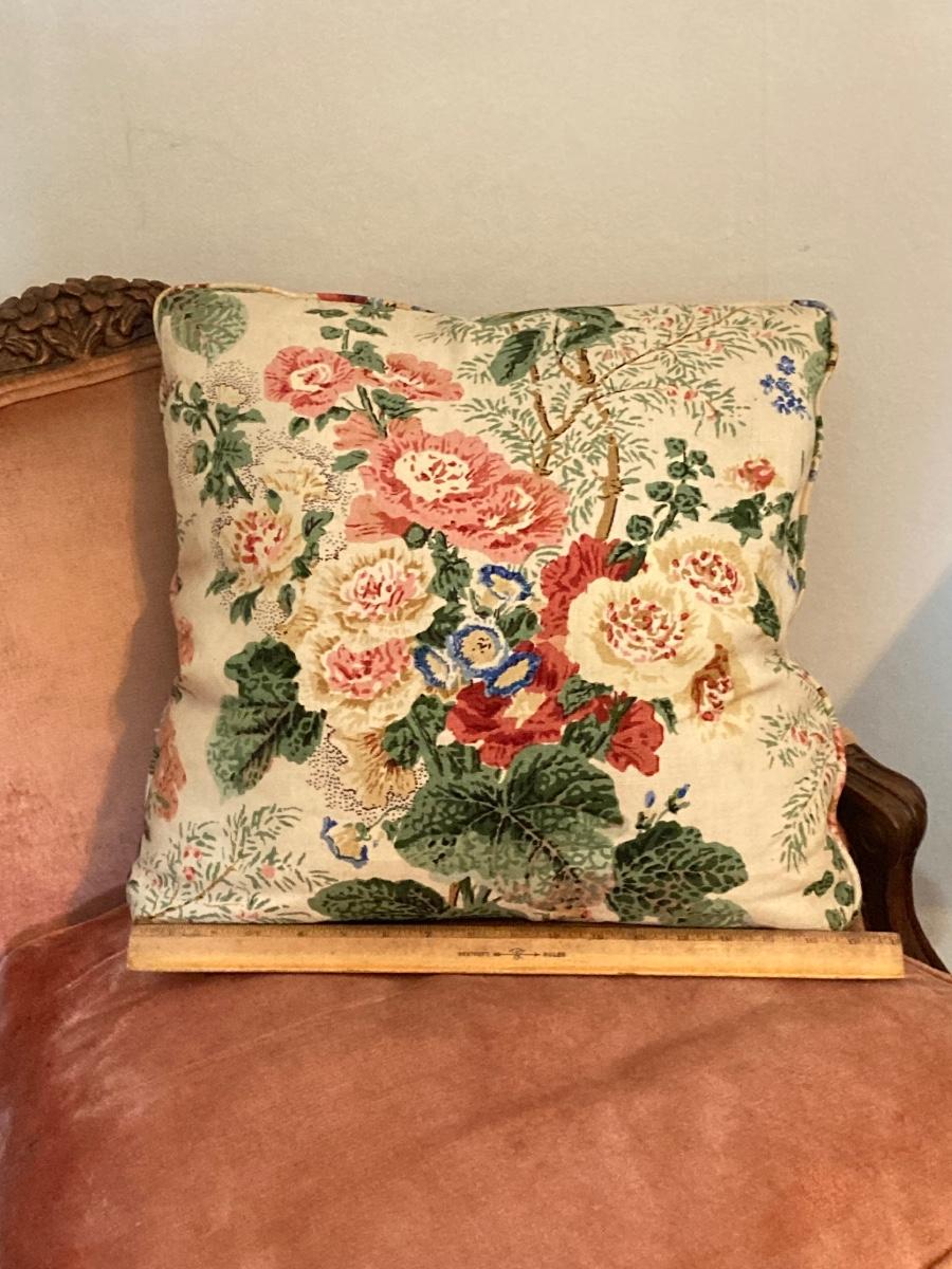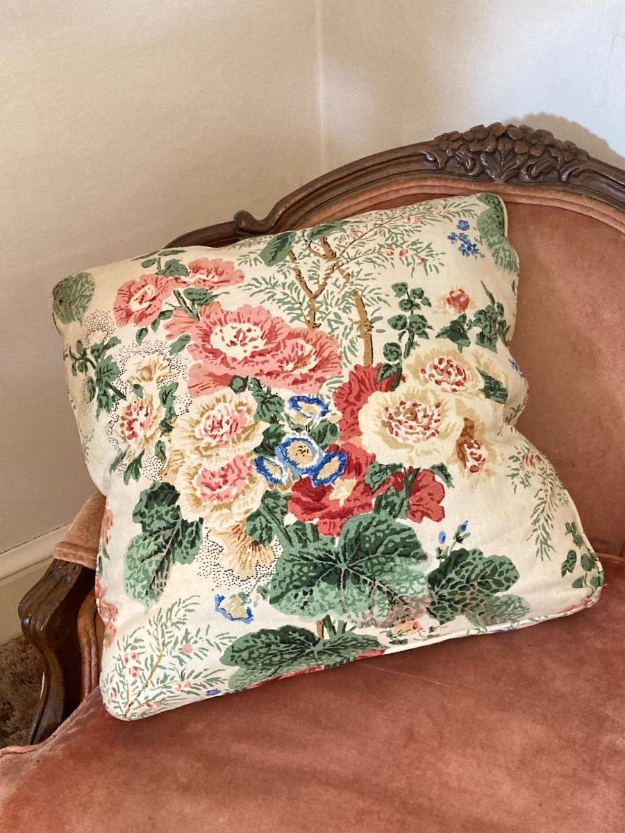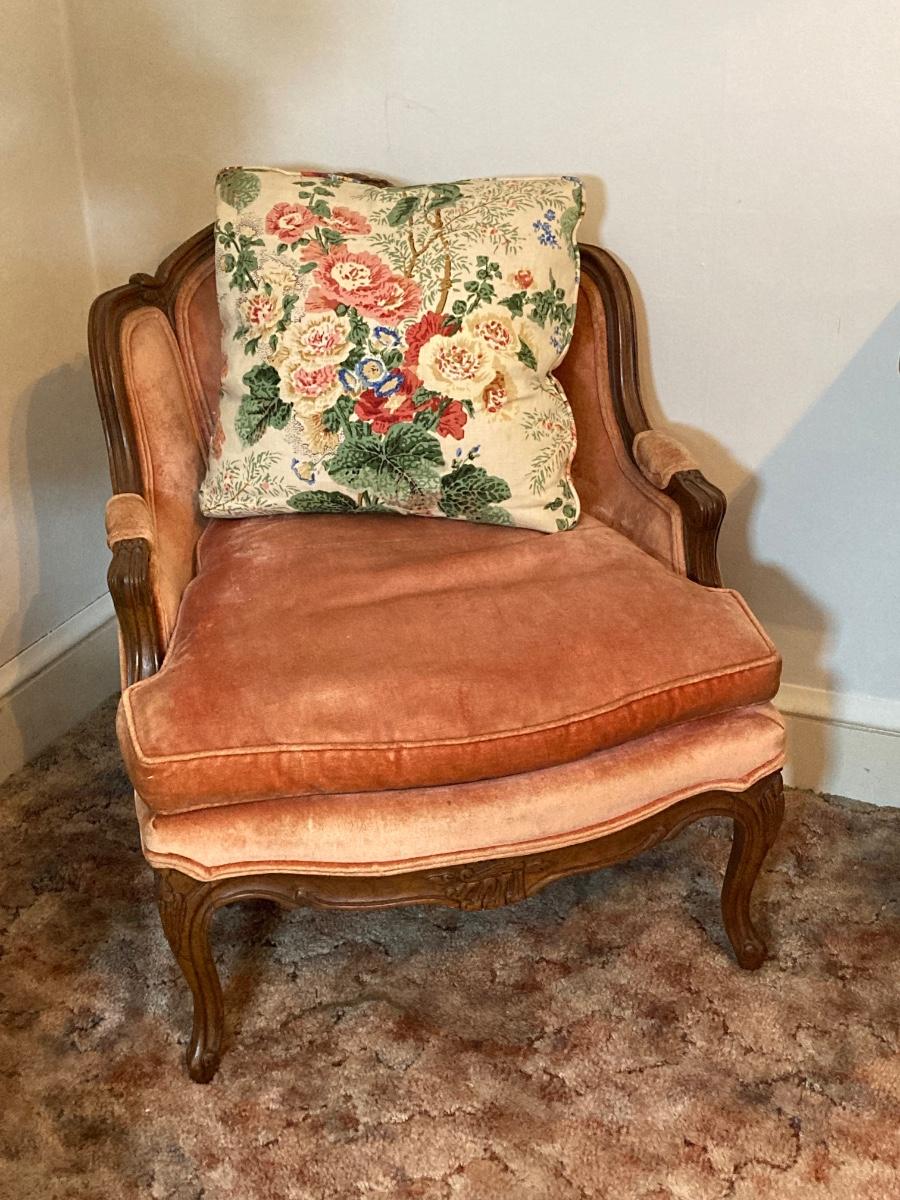 LOT 97: Pair of Heritage Distinctive Upholstered Carved Wood Chairs with Accent Pillows