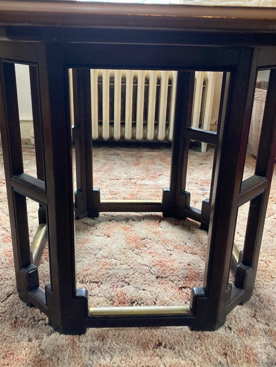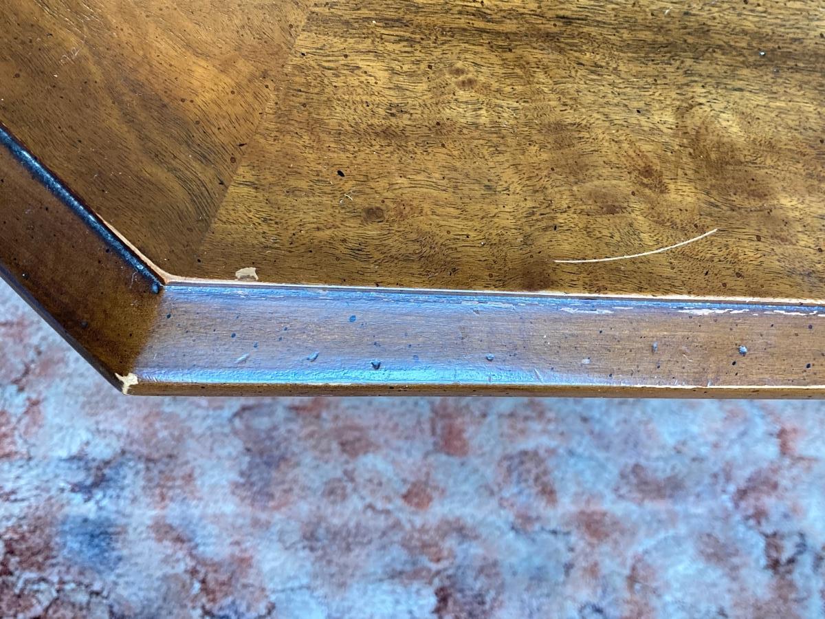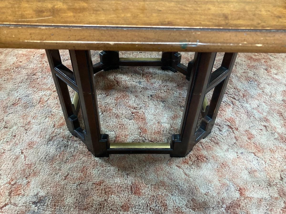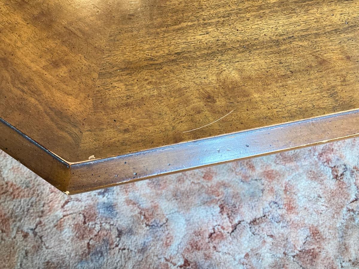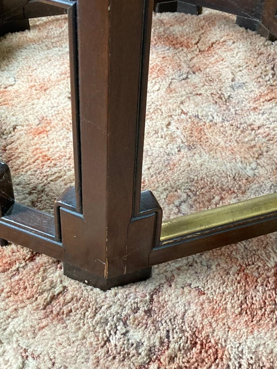 LOT 98: Octagon Wood Table with Four Wrap Around Wood / Upholstered Rolling Chairs