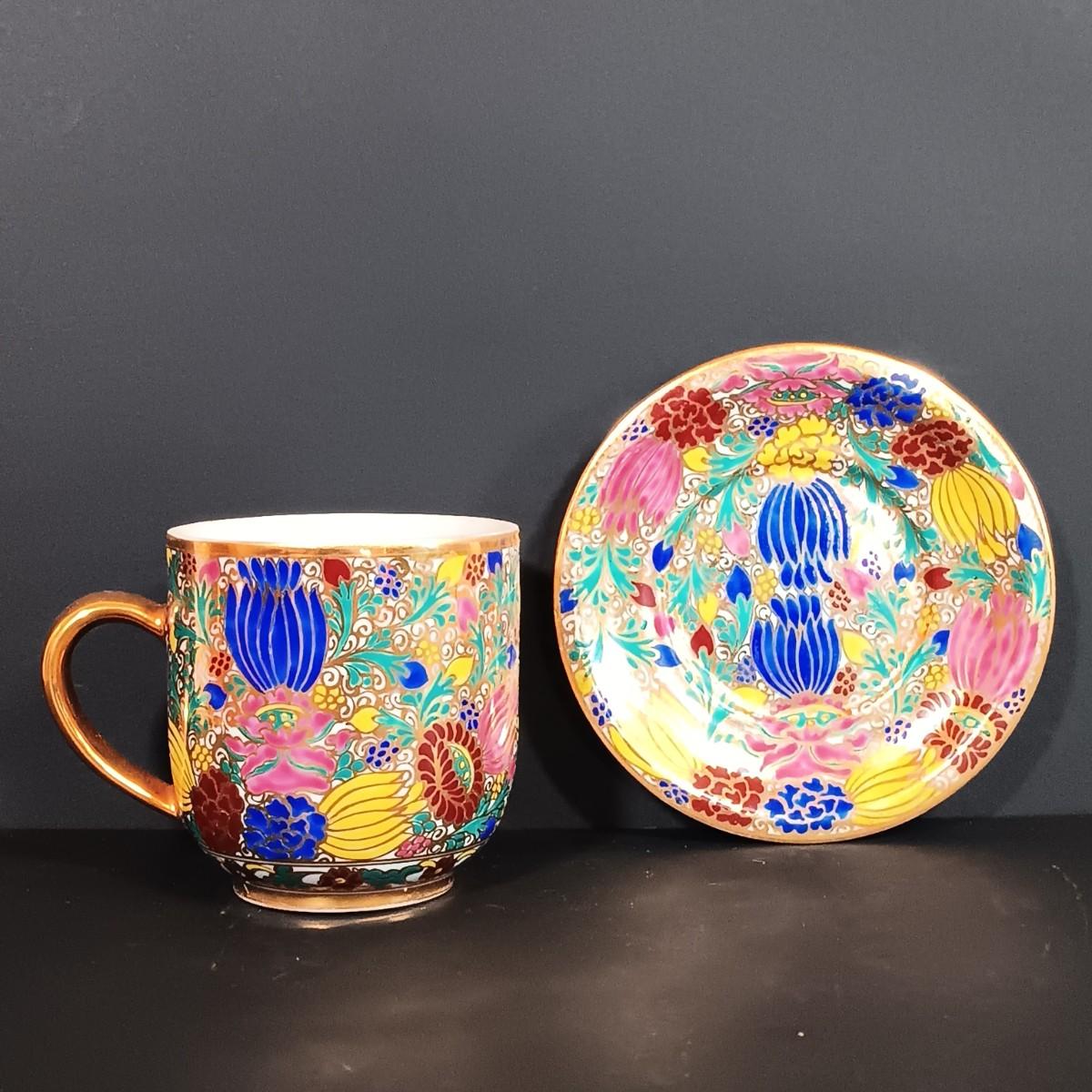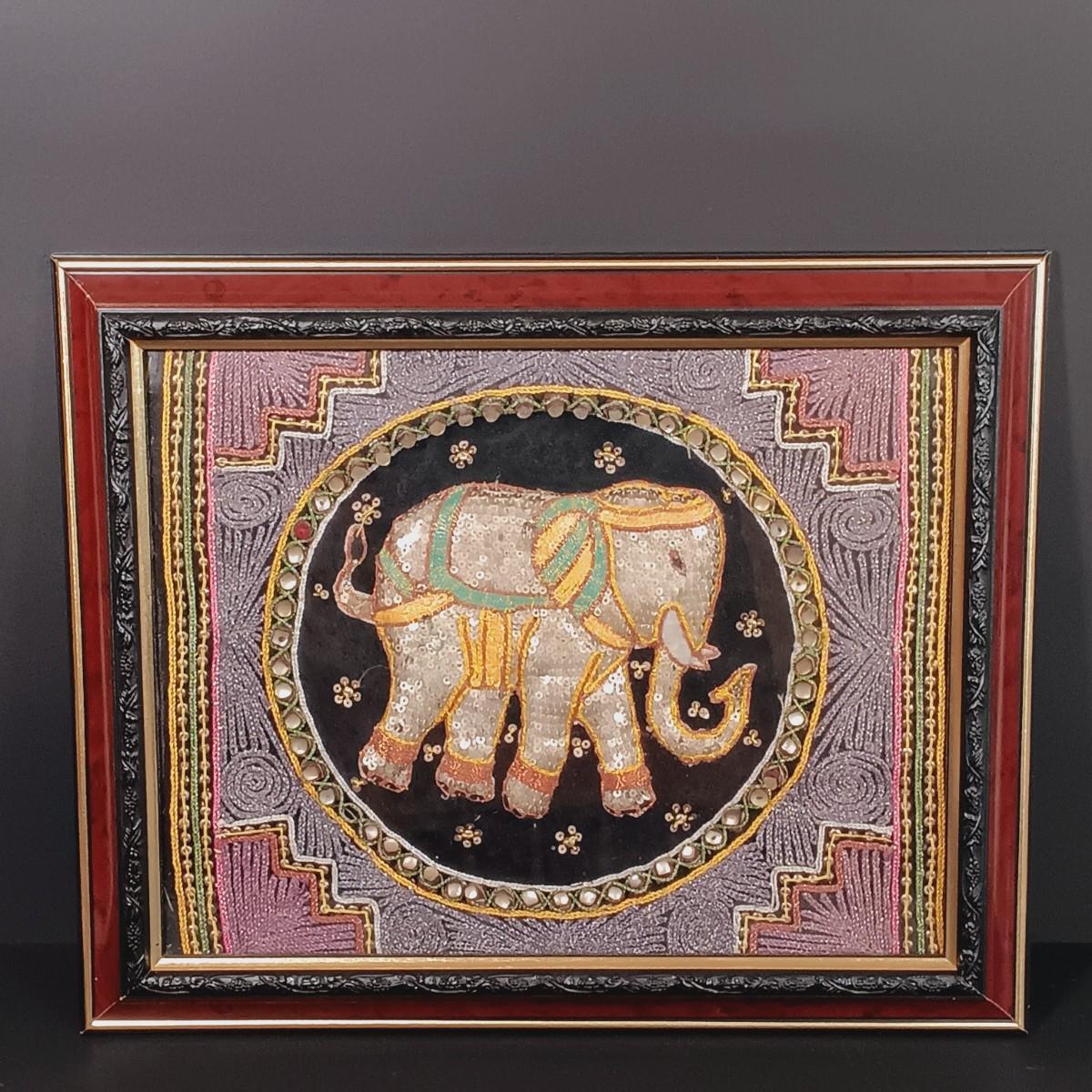 LOT 110: Vintage Framed Thai Kalaga Tapestry with Brass Planters & More