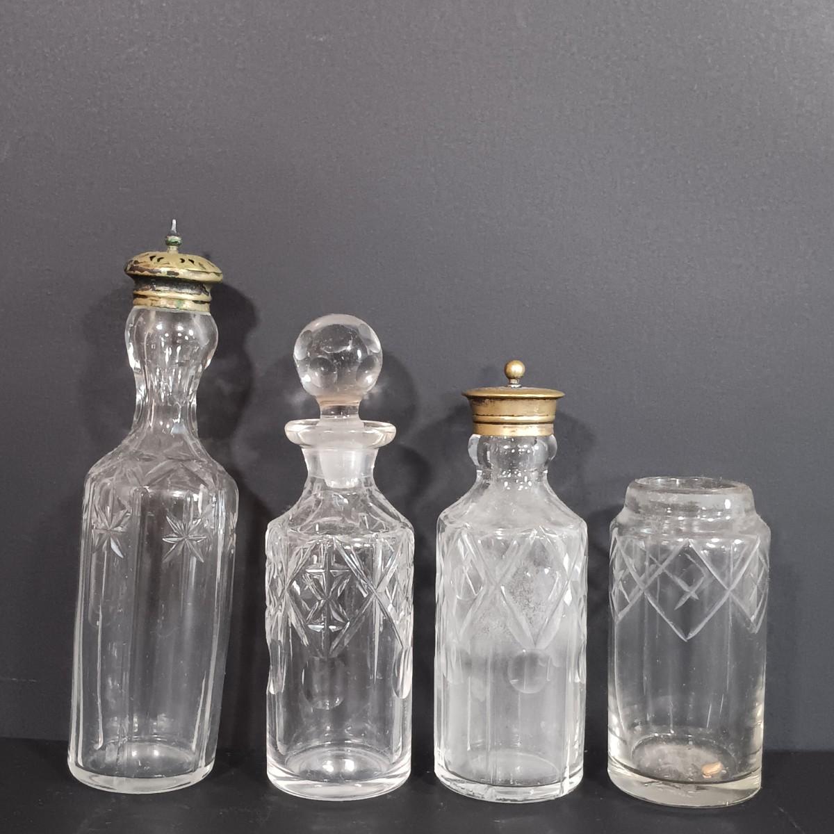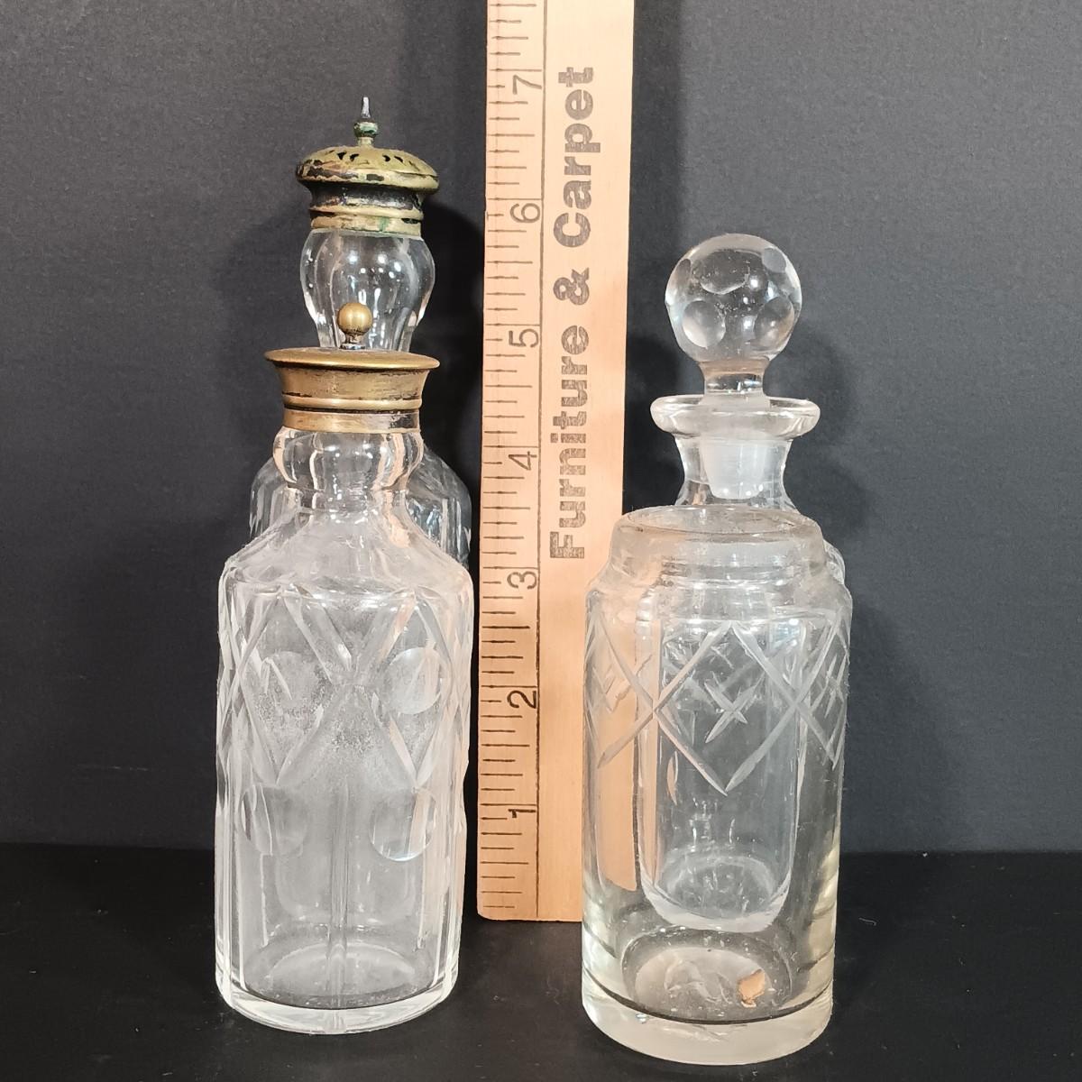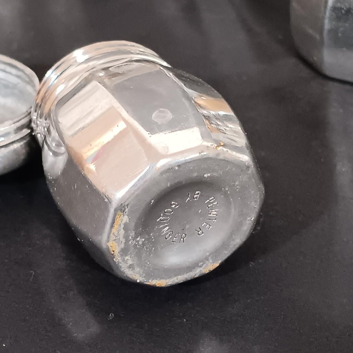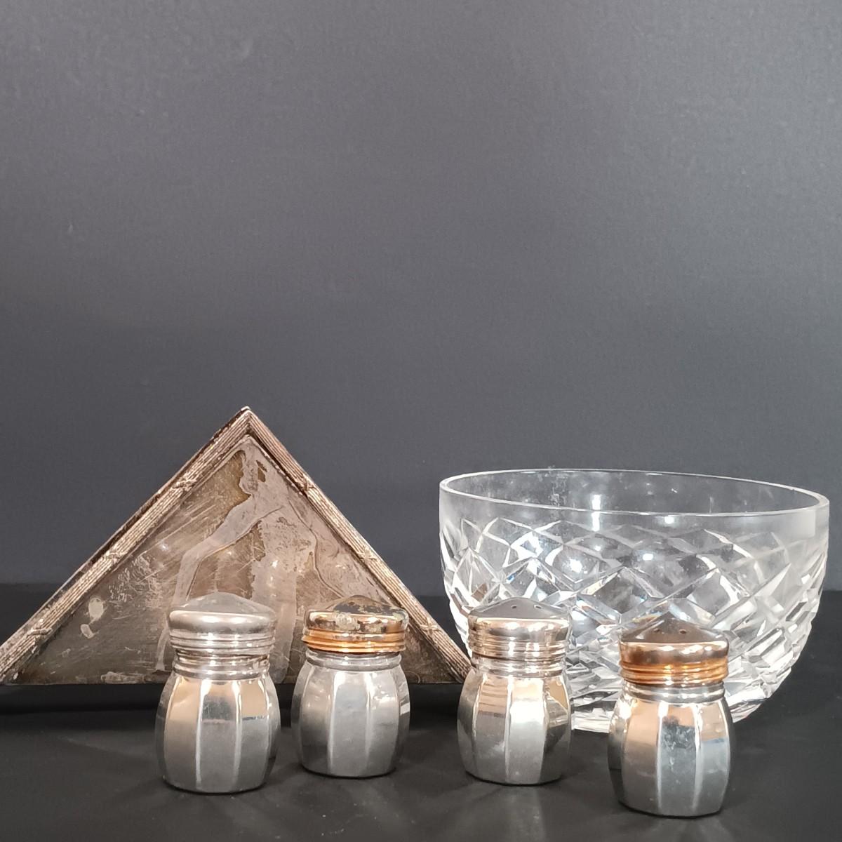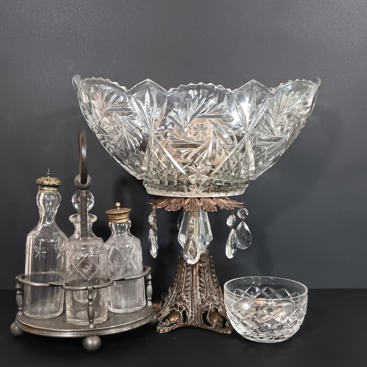 LOT 115: Vintage Cut Glass Pedestal Bowl, Pewter Cruet, Pewter Mini Shakers & More