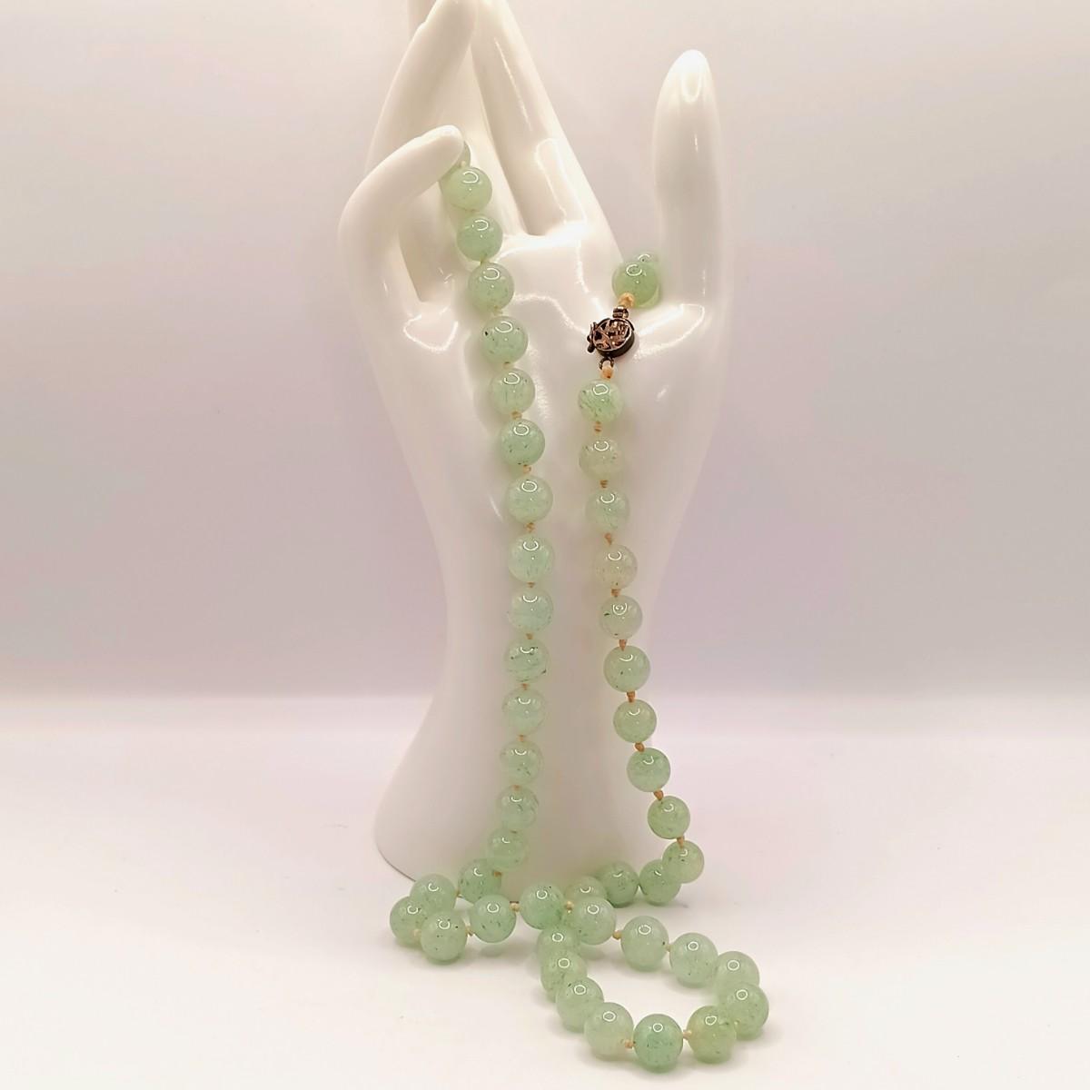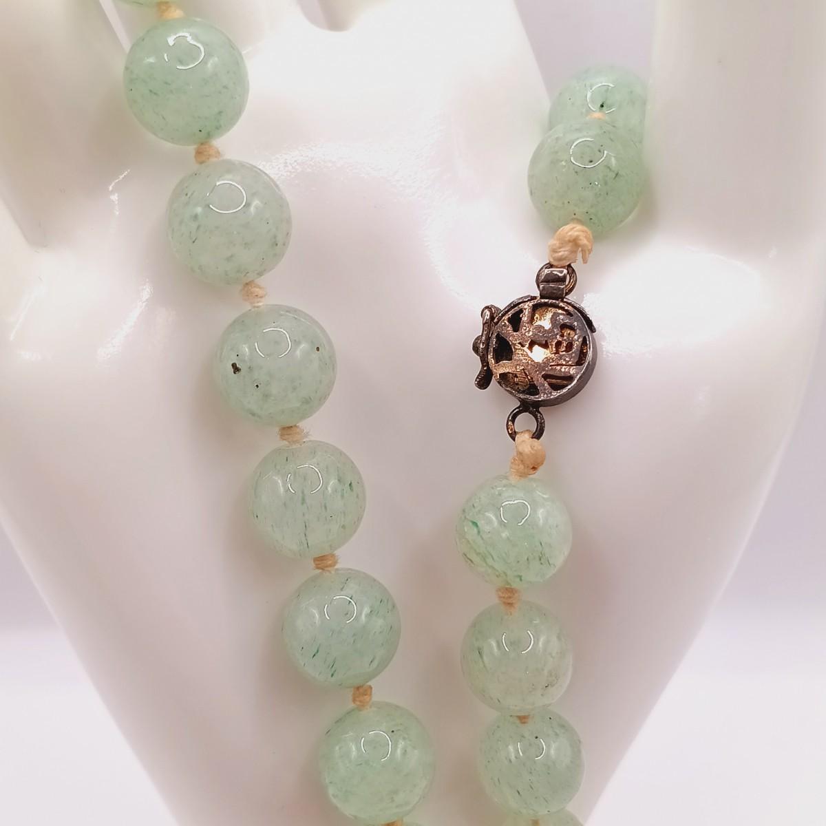 LOT 128: Pale Jade Bead Necklace with Sterling Silver Clasp