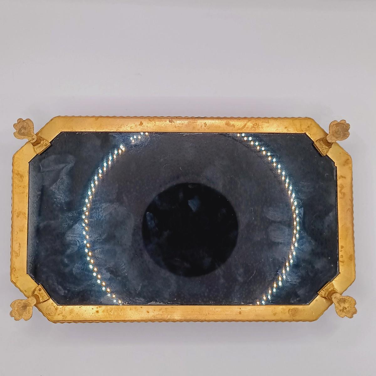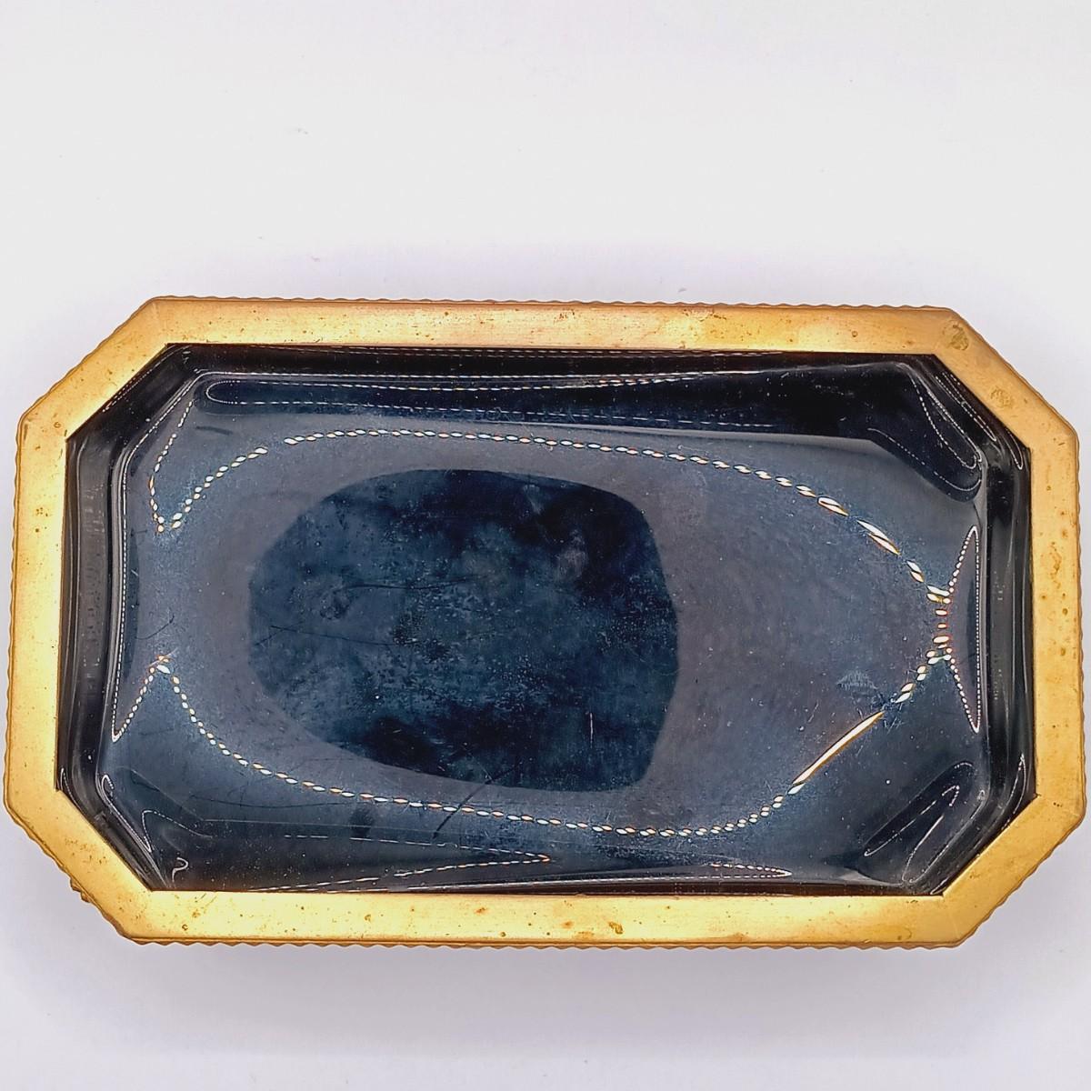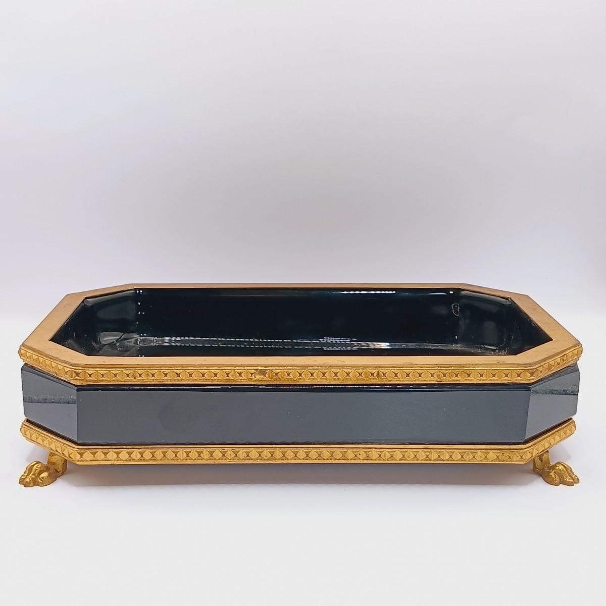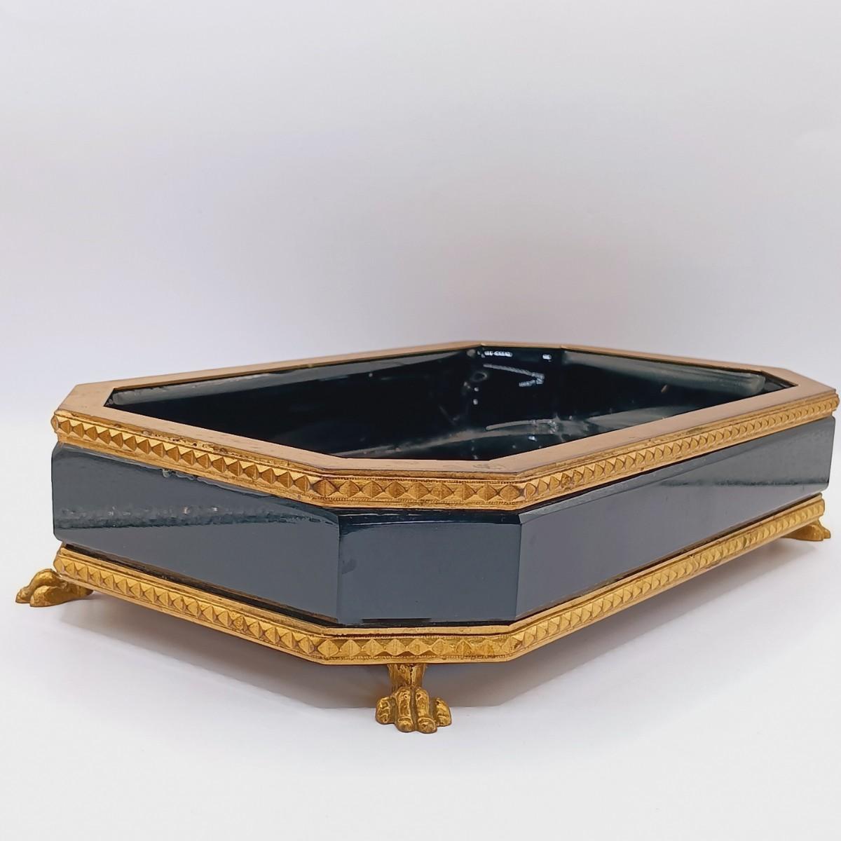 LOT 129: Vintage Black Glass Footed Trinket Tray with Scarves & Feaux Pearls
