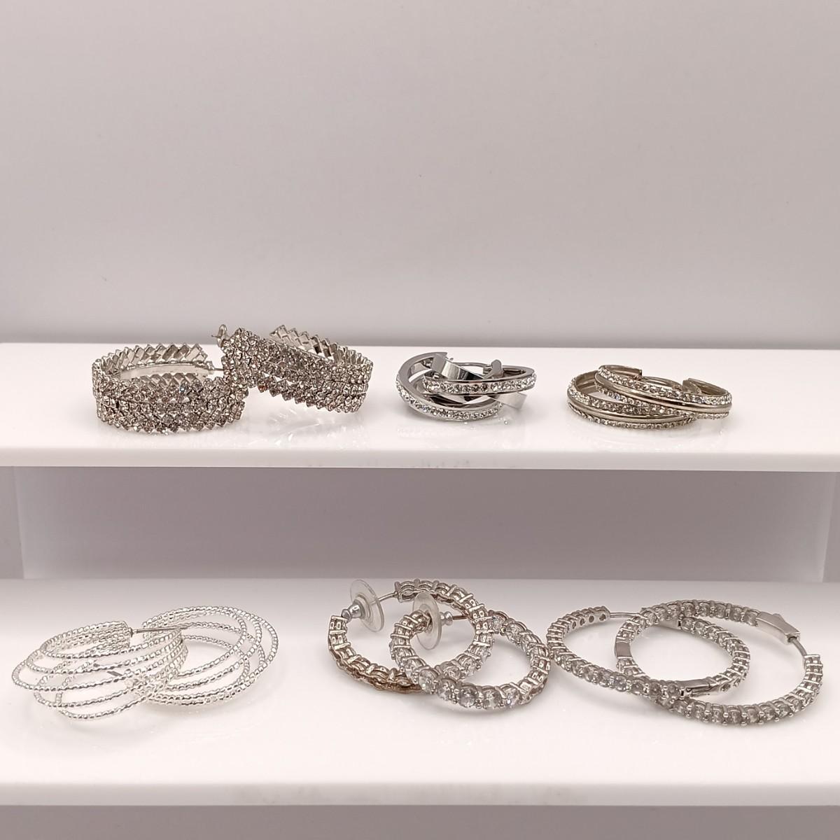 LOT 132: Collection of Vintage Silver-Tone Hoop Earrings