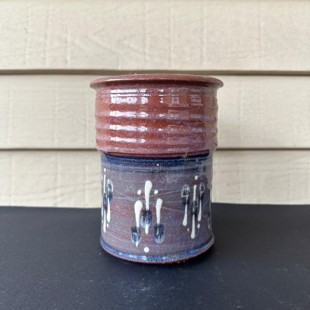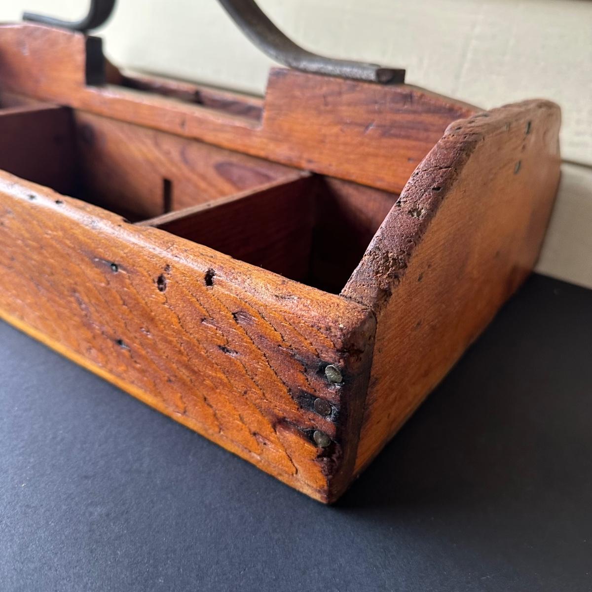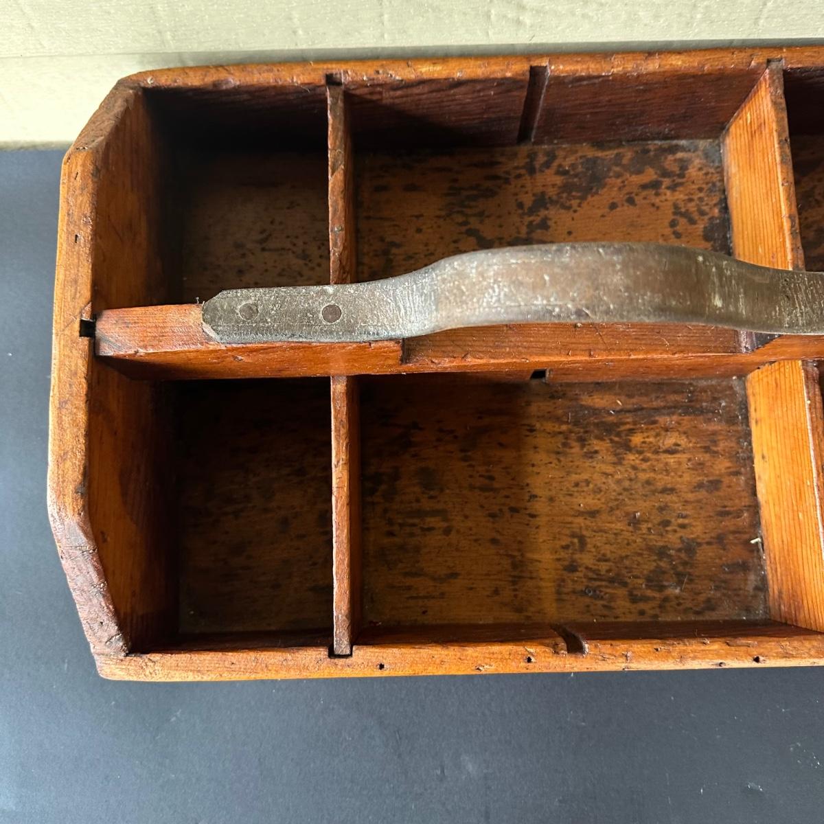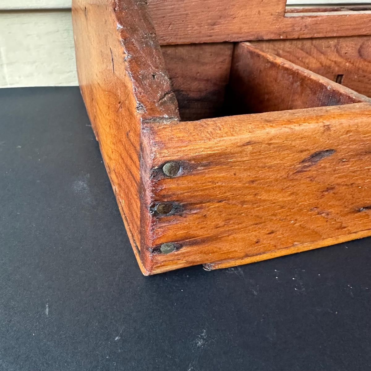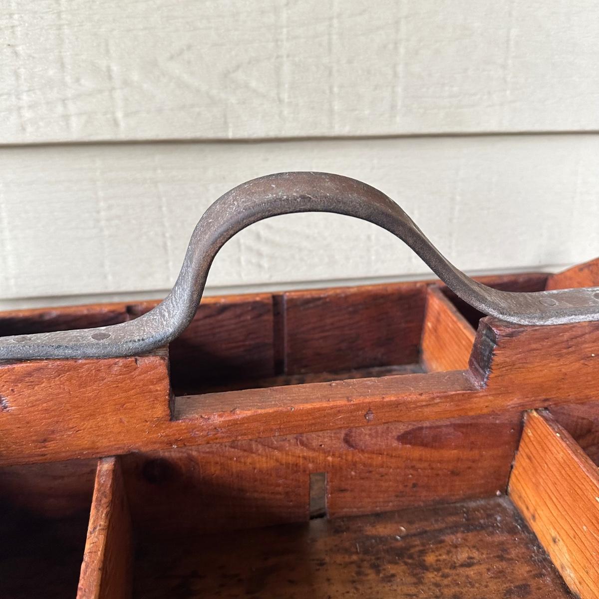 LOT 136: Antique Wooden Farmhouse Tool Caddy along w/Signed Pottery