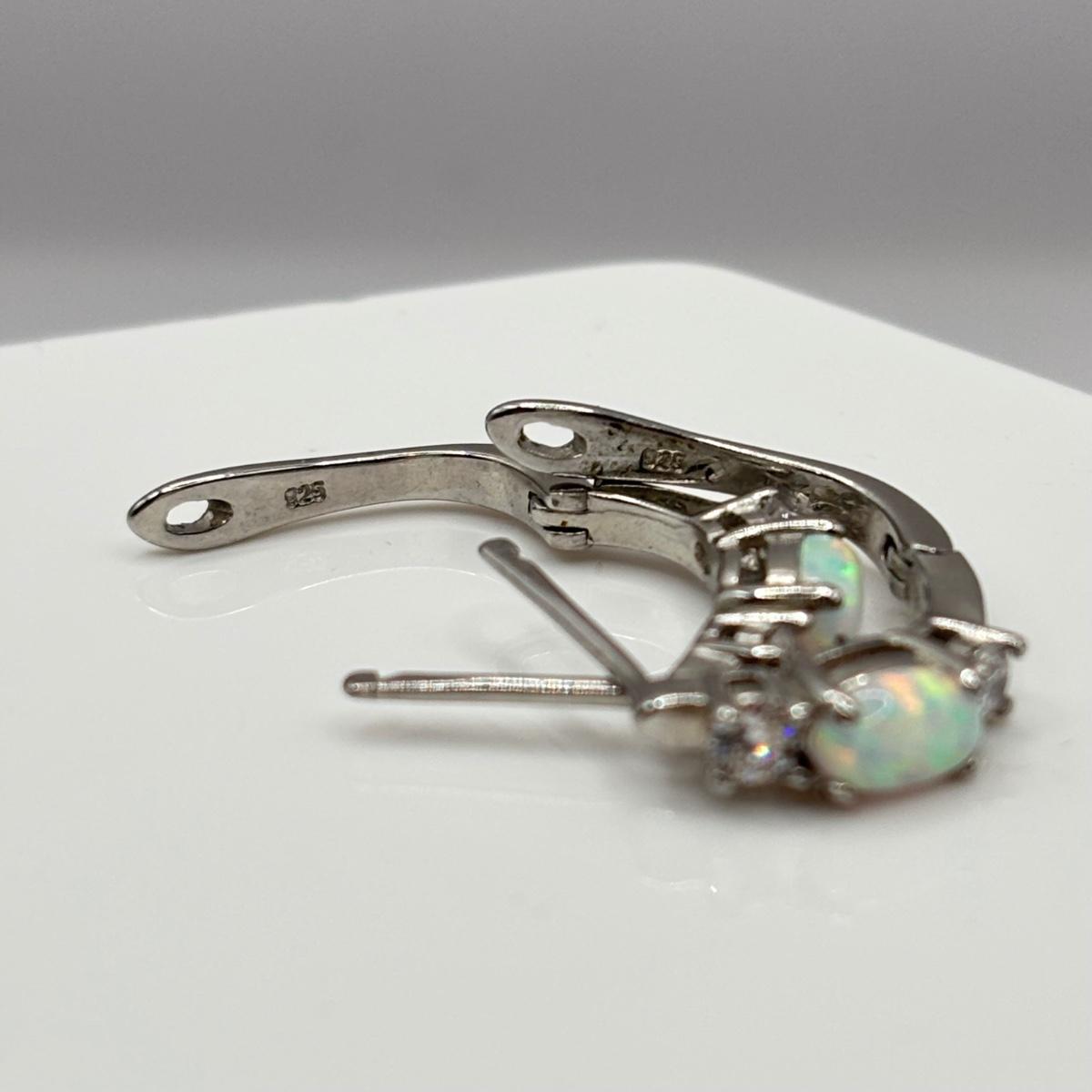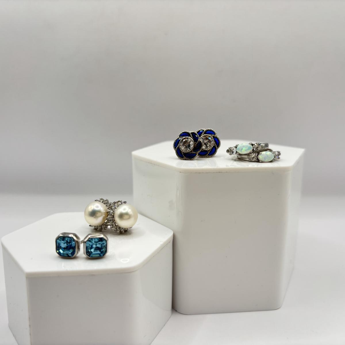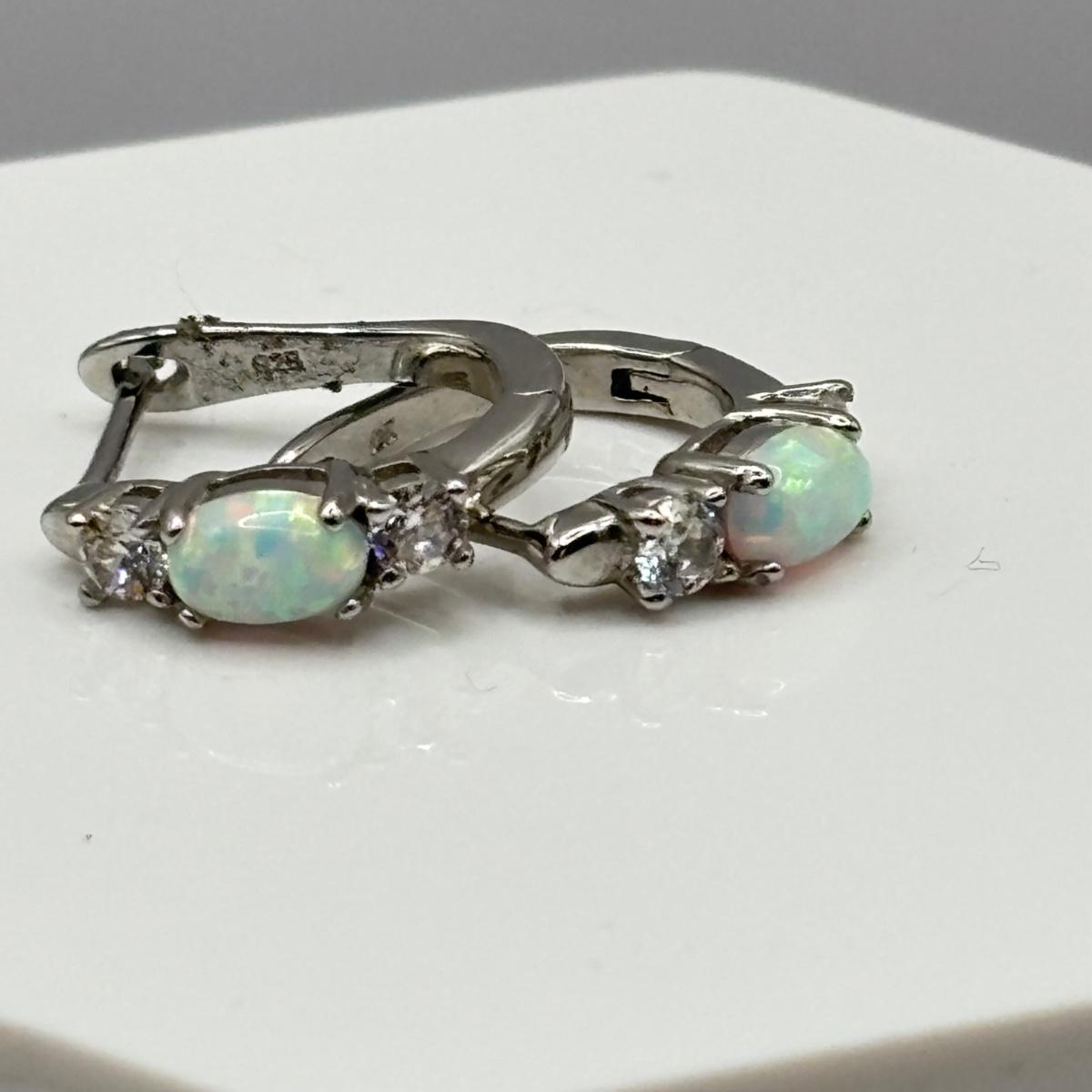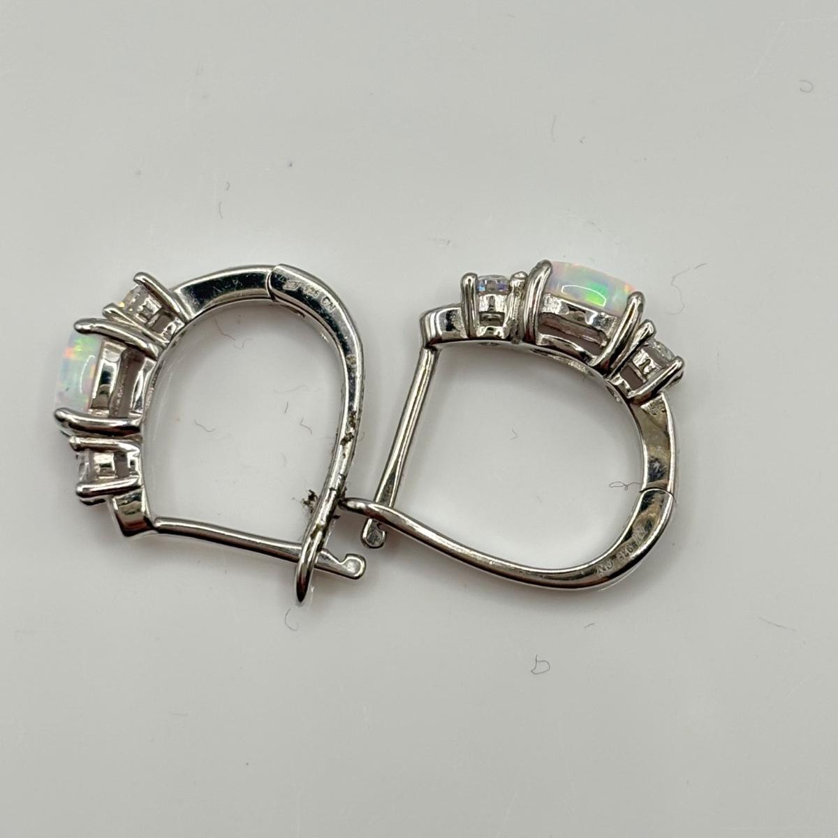 LOT 167: Sterling Silver Collection of 4pr of Earrings: Faceted Blue Topaz, Opals, Pearls & Sapphire