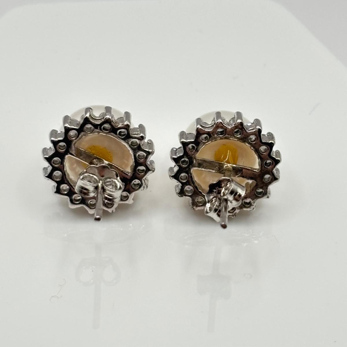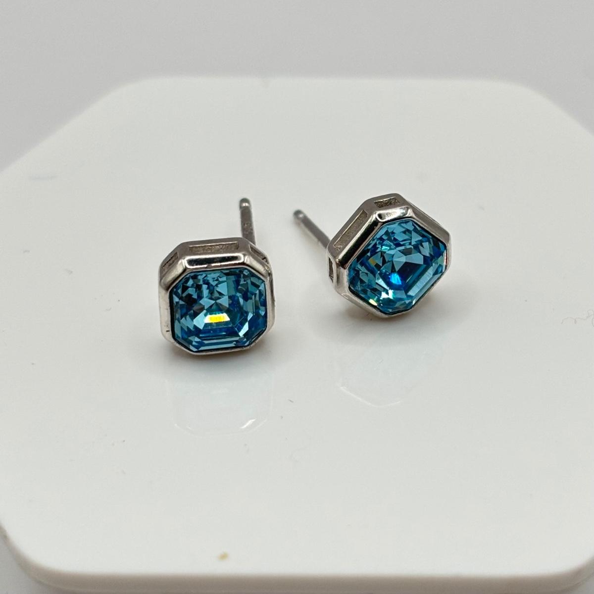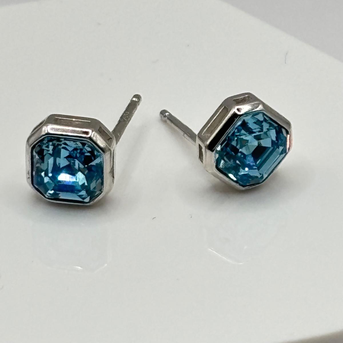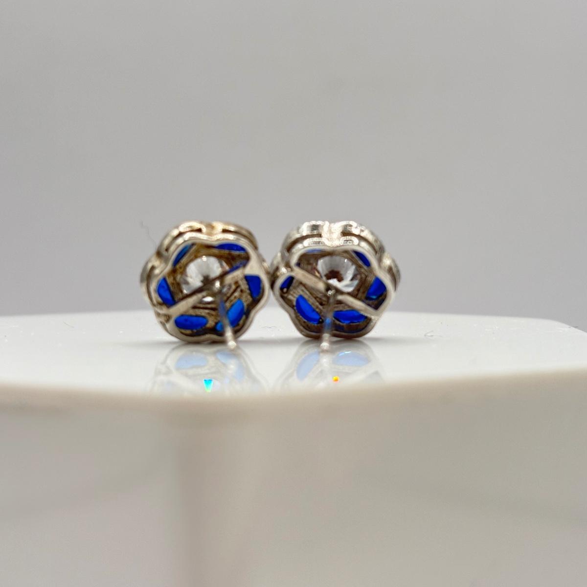 LOT 167: Sterling Silver Collection of 4pr of Earrings: Faceted Blue Topaz, Opals, Pearls & Sapphire