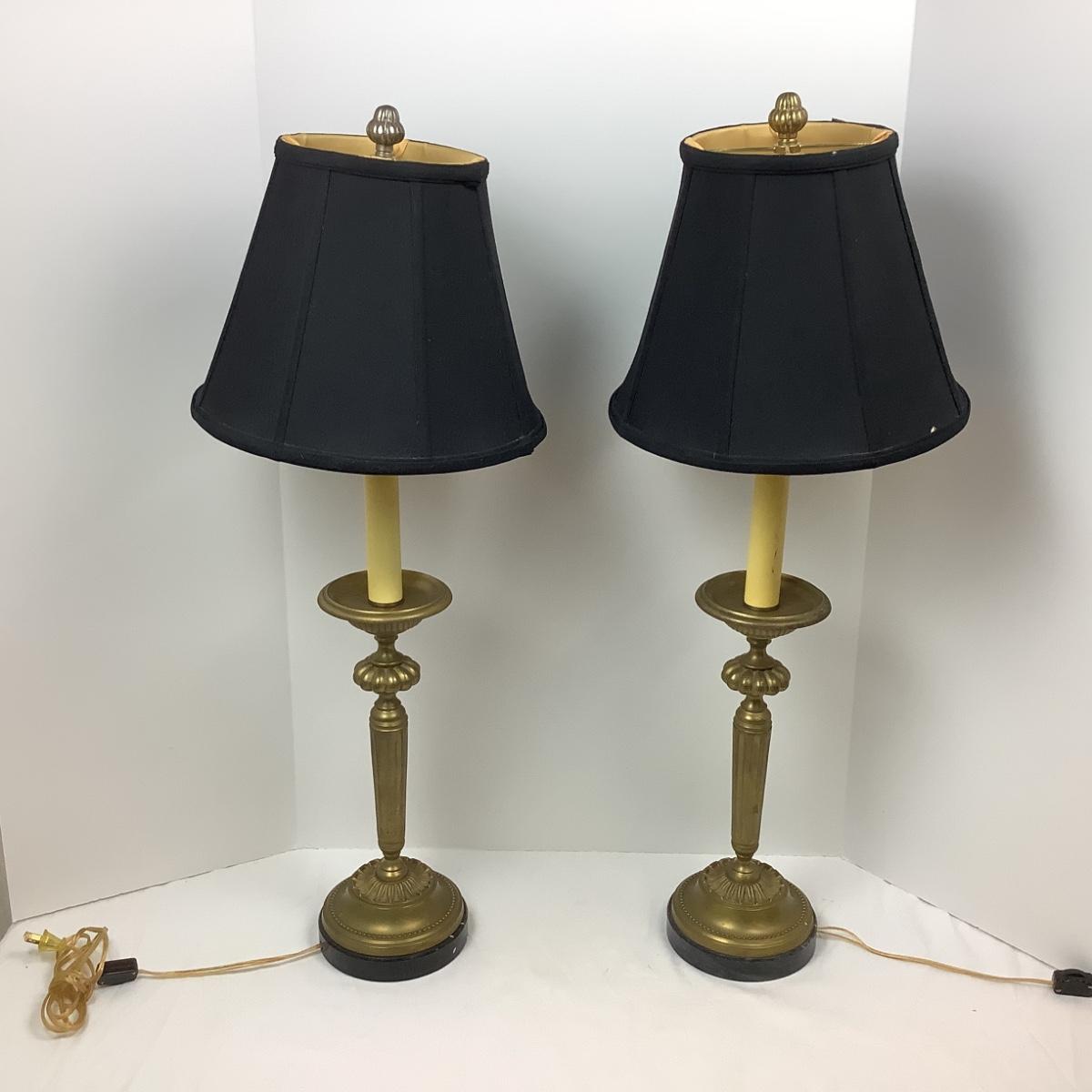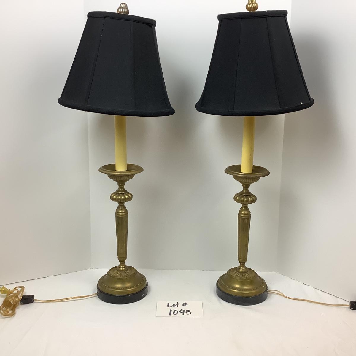 Lot # 1095 Pair of Vintage Brass Lamps on Marble Base