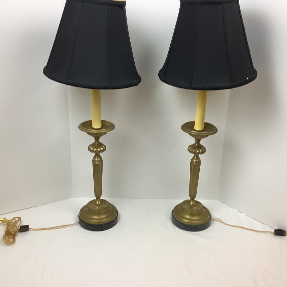 Lot # 1095  Pair of Vintage Brass Lamps on Marble Base