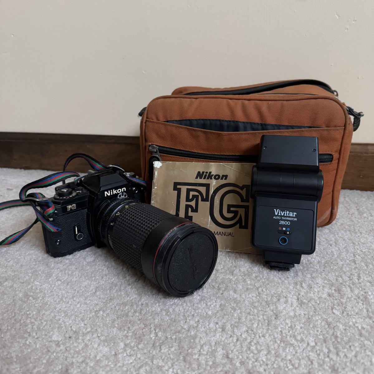 LOT 14B: Nikon FG 35mm Film Camera w/ Lens & Vivitar Auto Thyristor Flash 2800