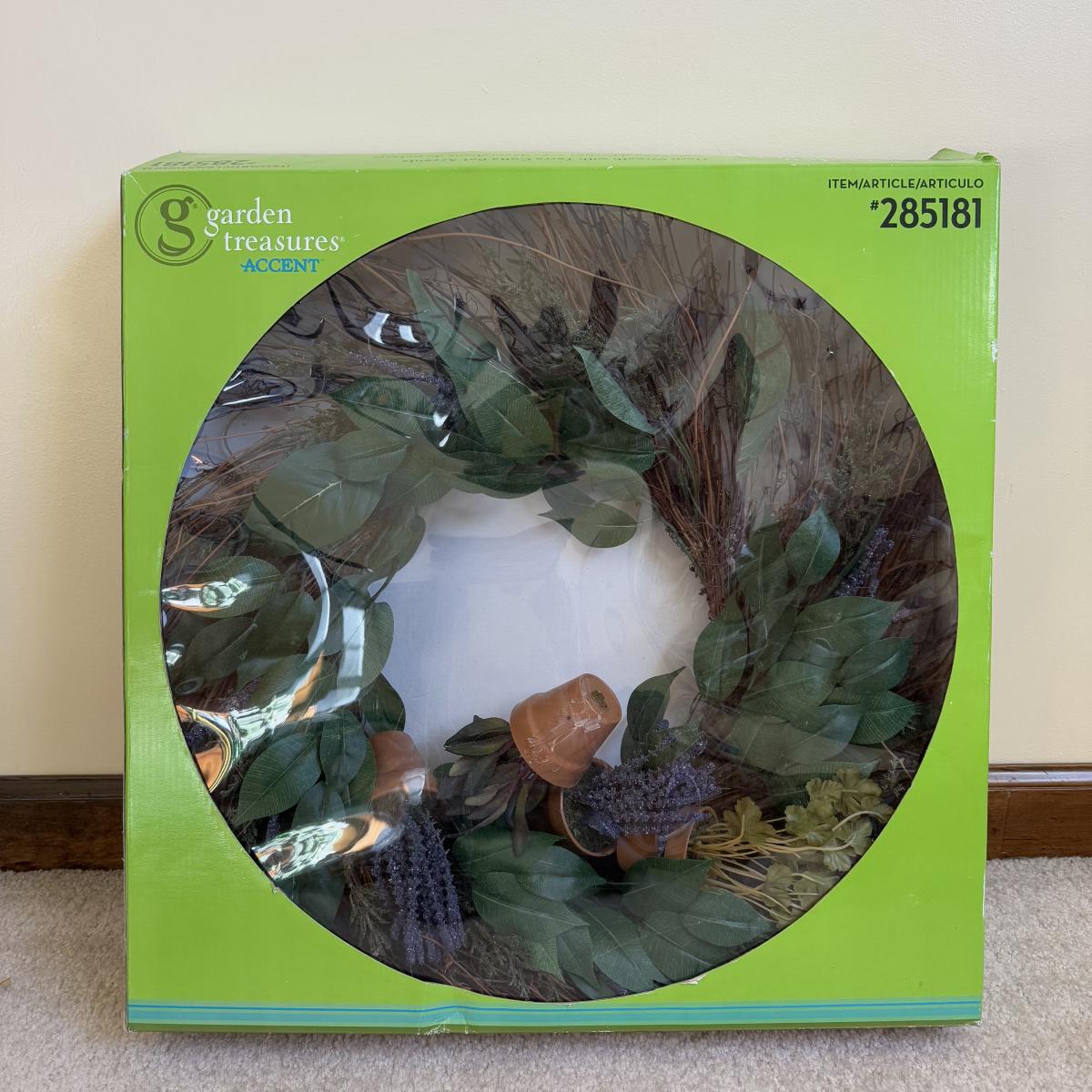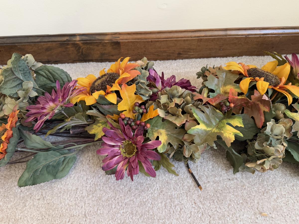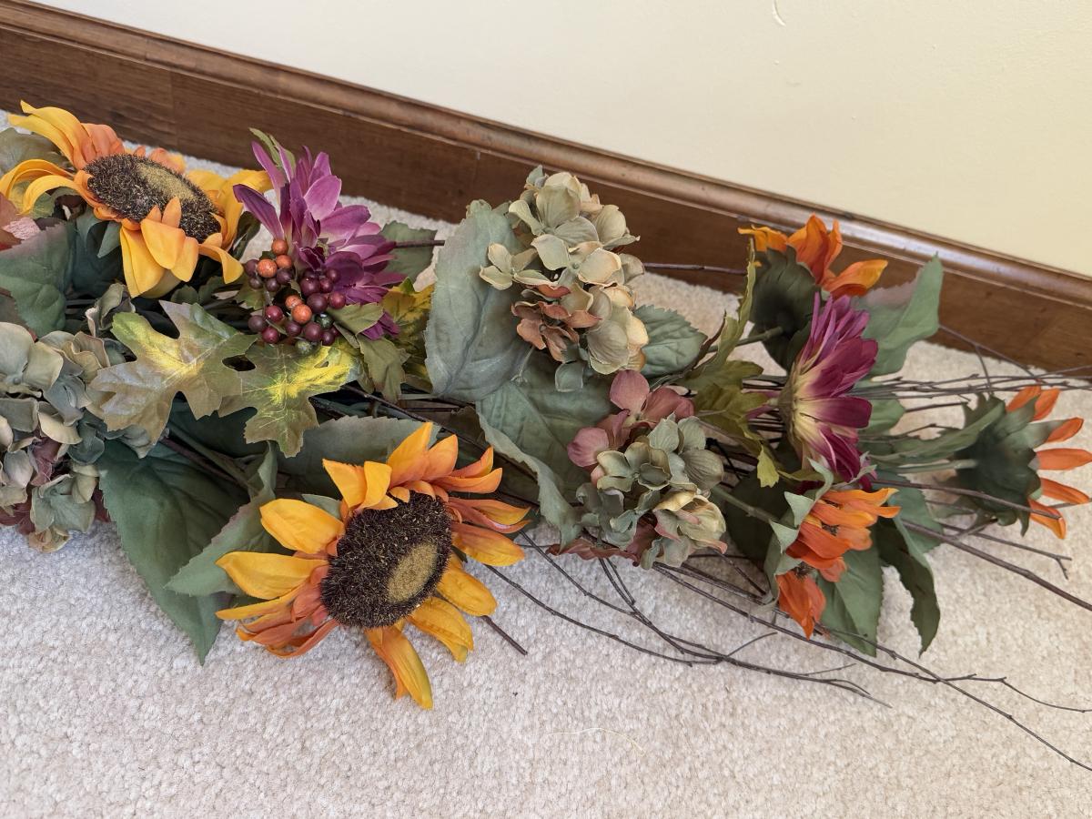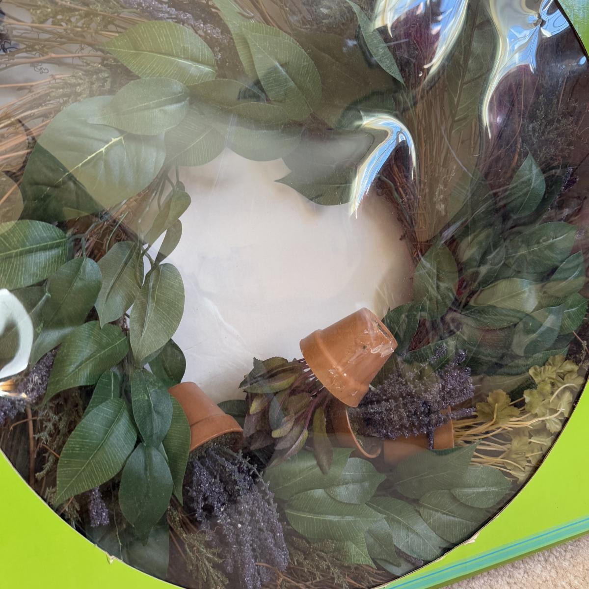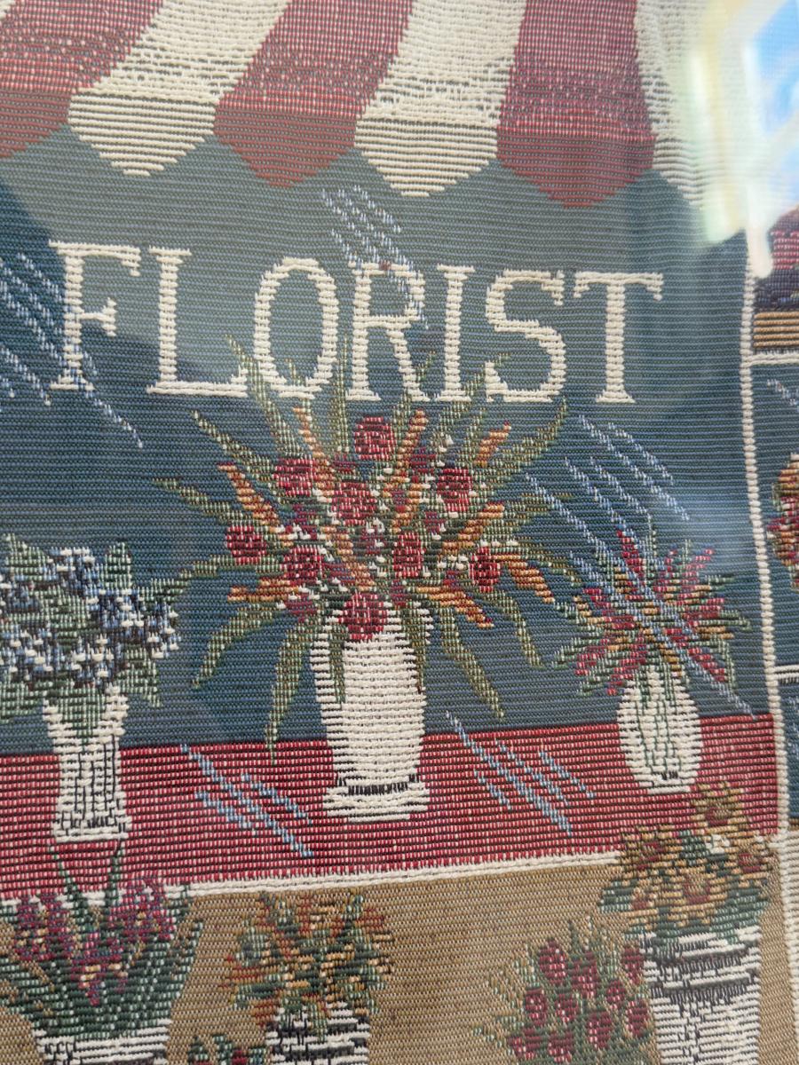 LOT 21B: Charlene Olson Embroidered Artwork, Florist Village House, Wreath in Box & More
