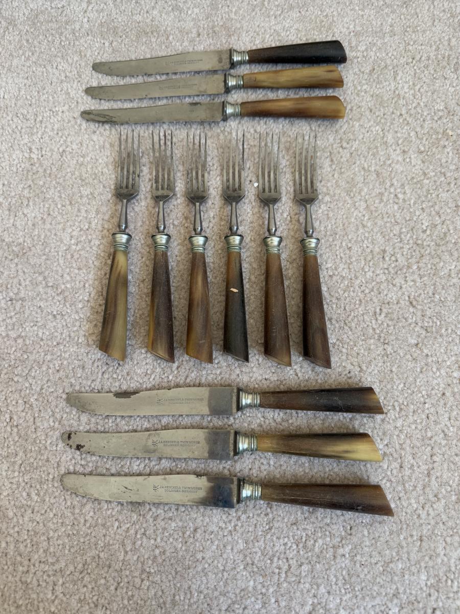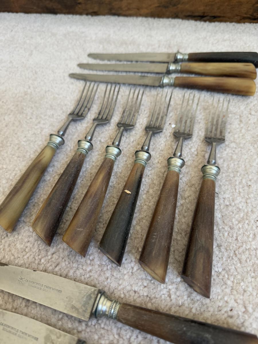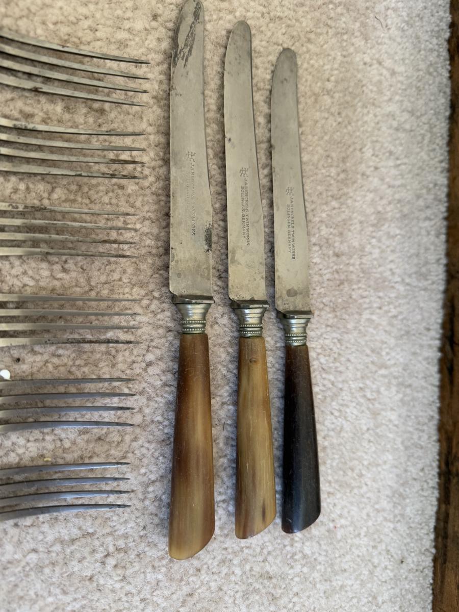 LOT 22B: Vintage J A Henckels Twinworks Soligen Germany Antler Handle Forks & Butter Knives