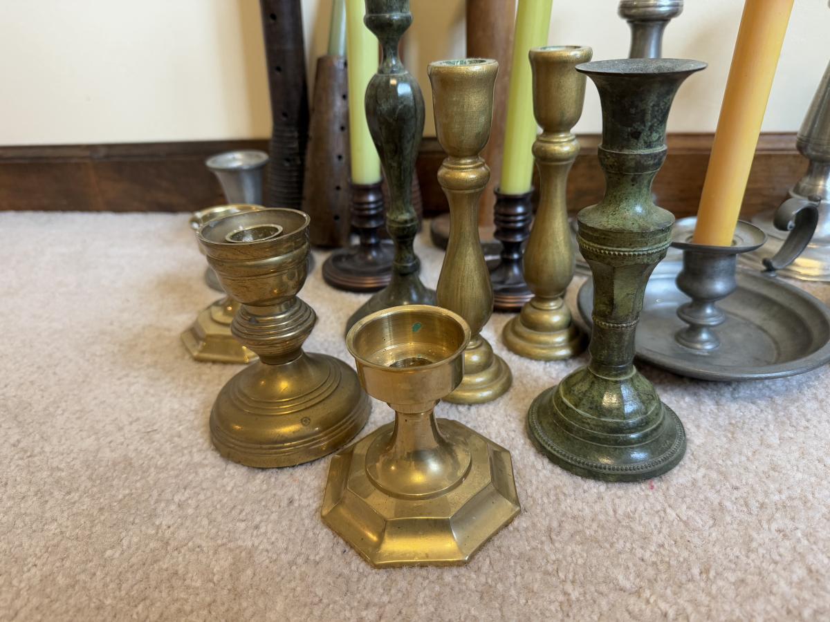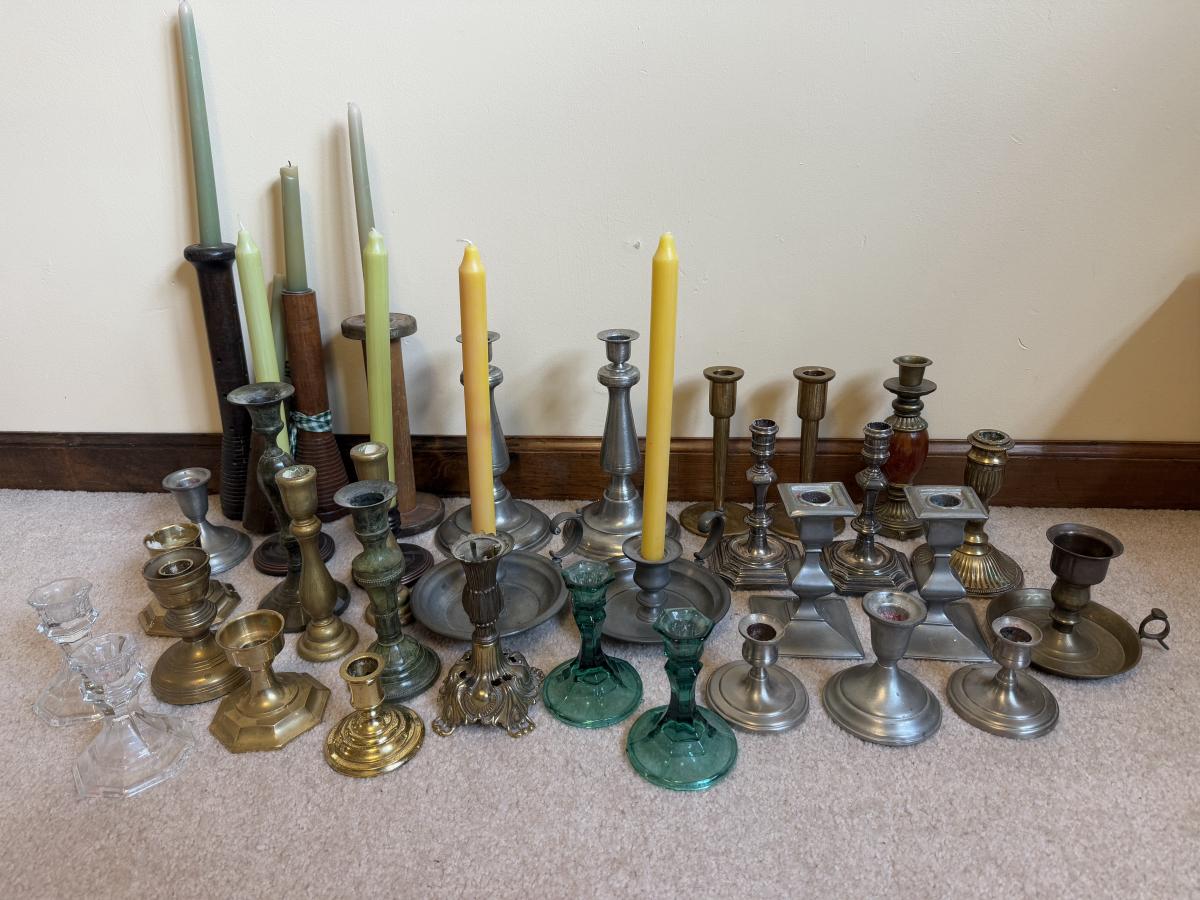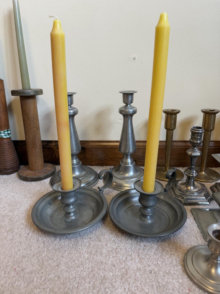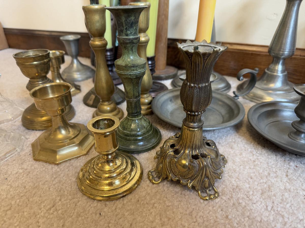 LOT 37B: Collection of Candlesticks & Candles - Williamsburg Stieff Pewter, Baldwin, Brass, Poole Pewter, Silver Plate & More