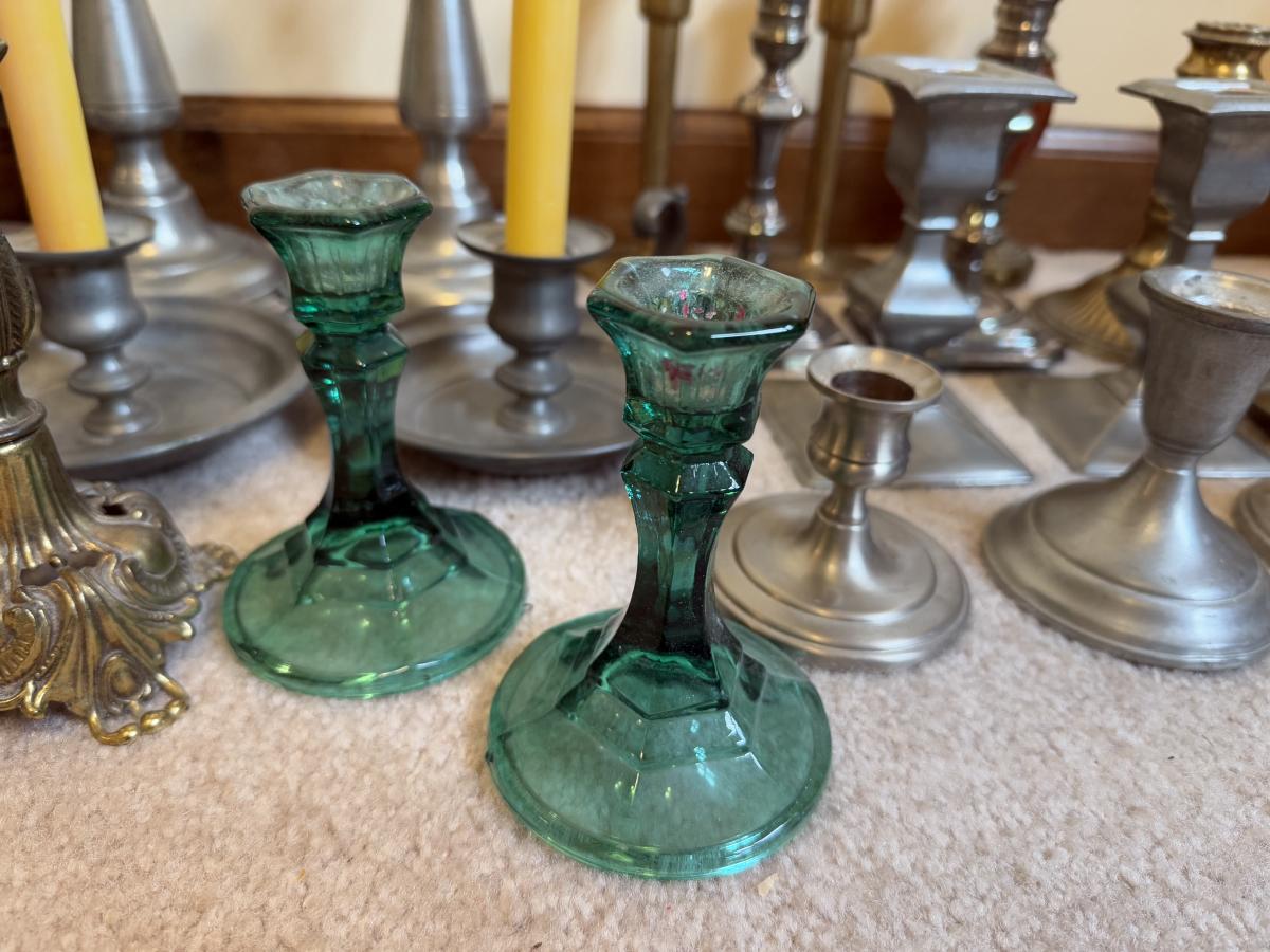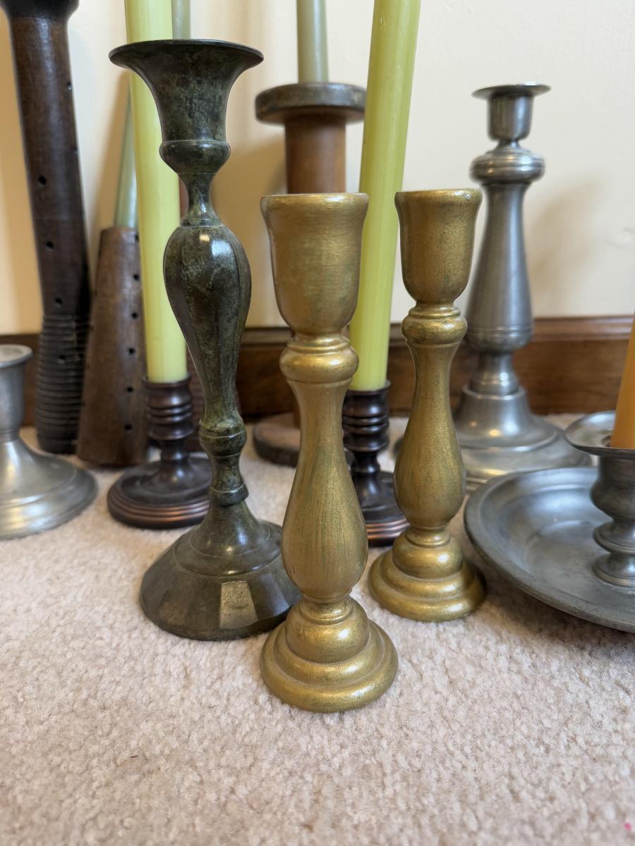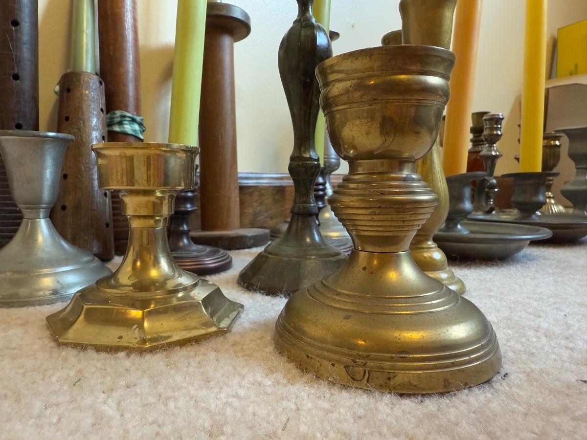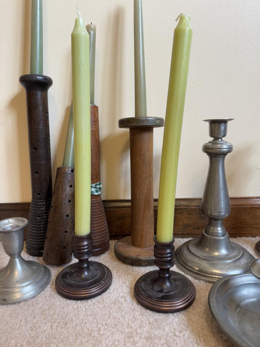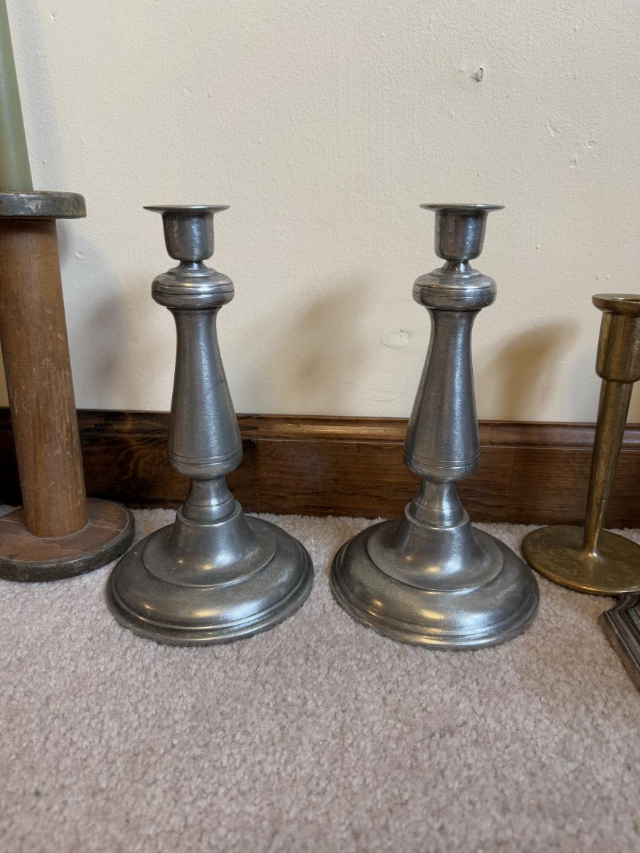 LOT 37B: Collection of Candlesticks & Candles - Williamsburg Stieff Pewter, Baldwin, Brass, Poole Pewter, Silver Plate & More