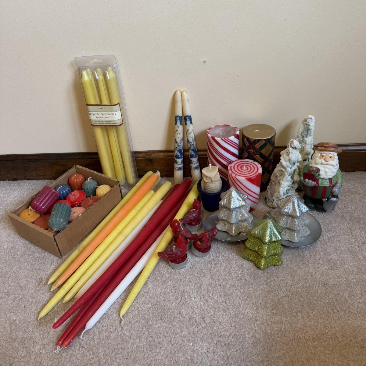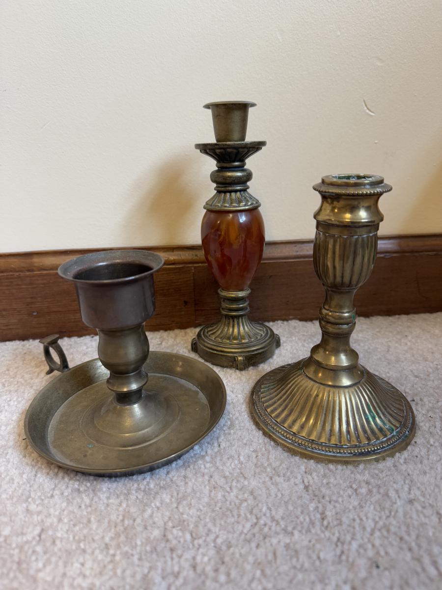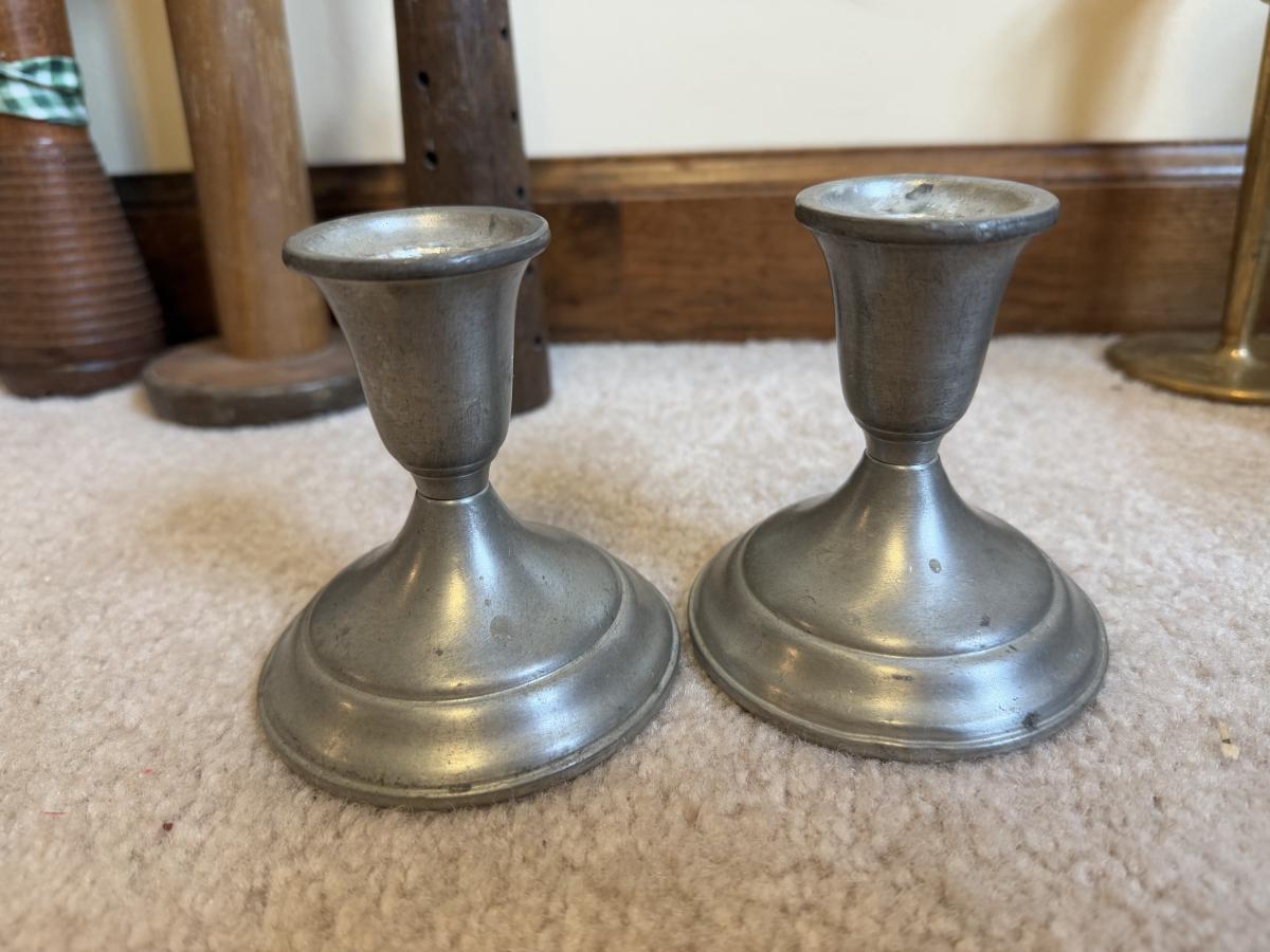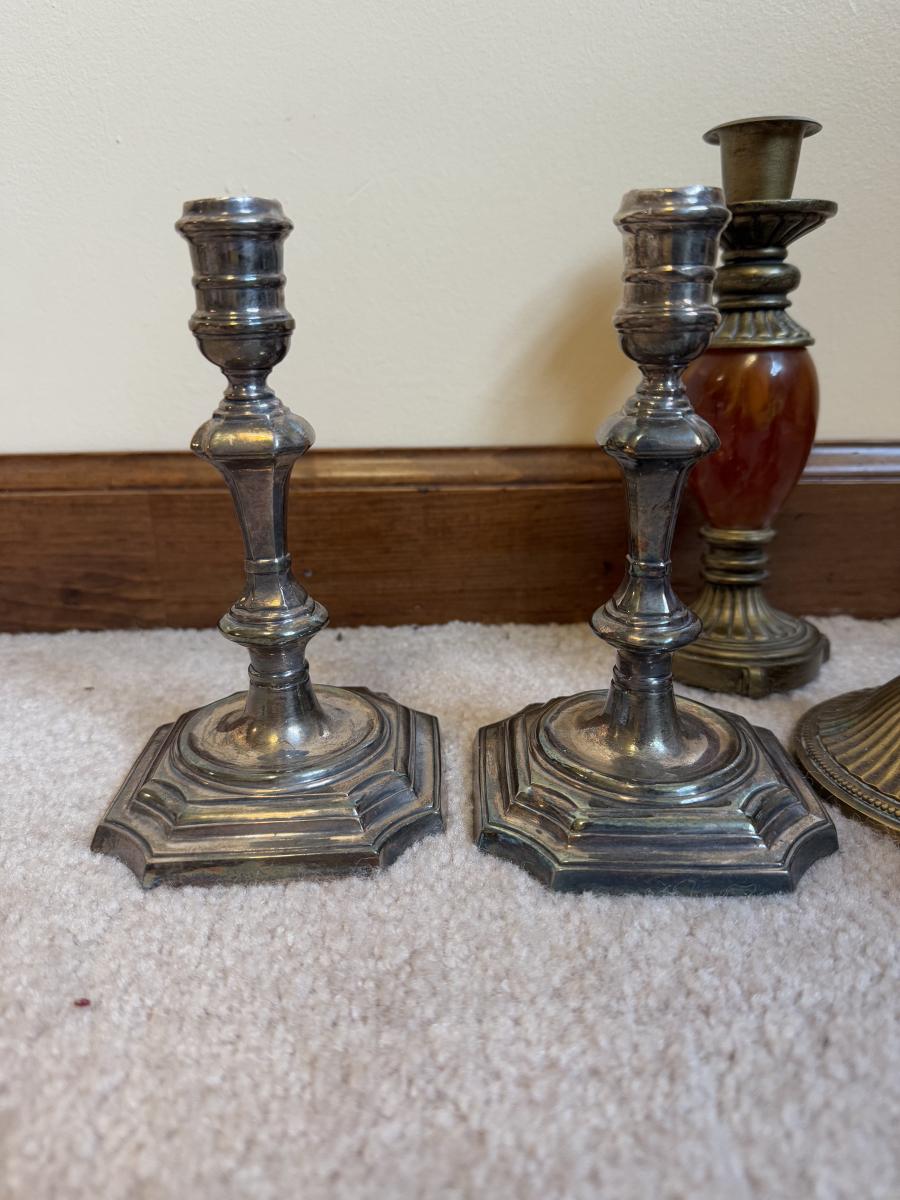 LOT 37B: Collection of Candlesticks & Candles - Williamsburg Stieff Pewter, Baldwin, Brass, Poole Pewter, Silver Plate & More