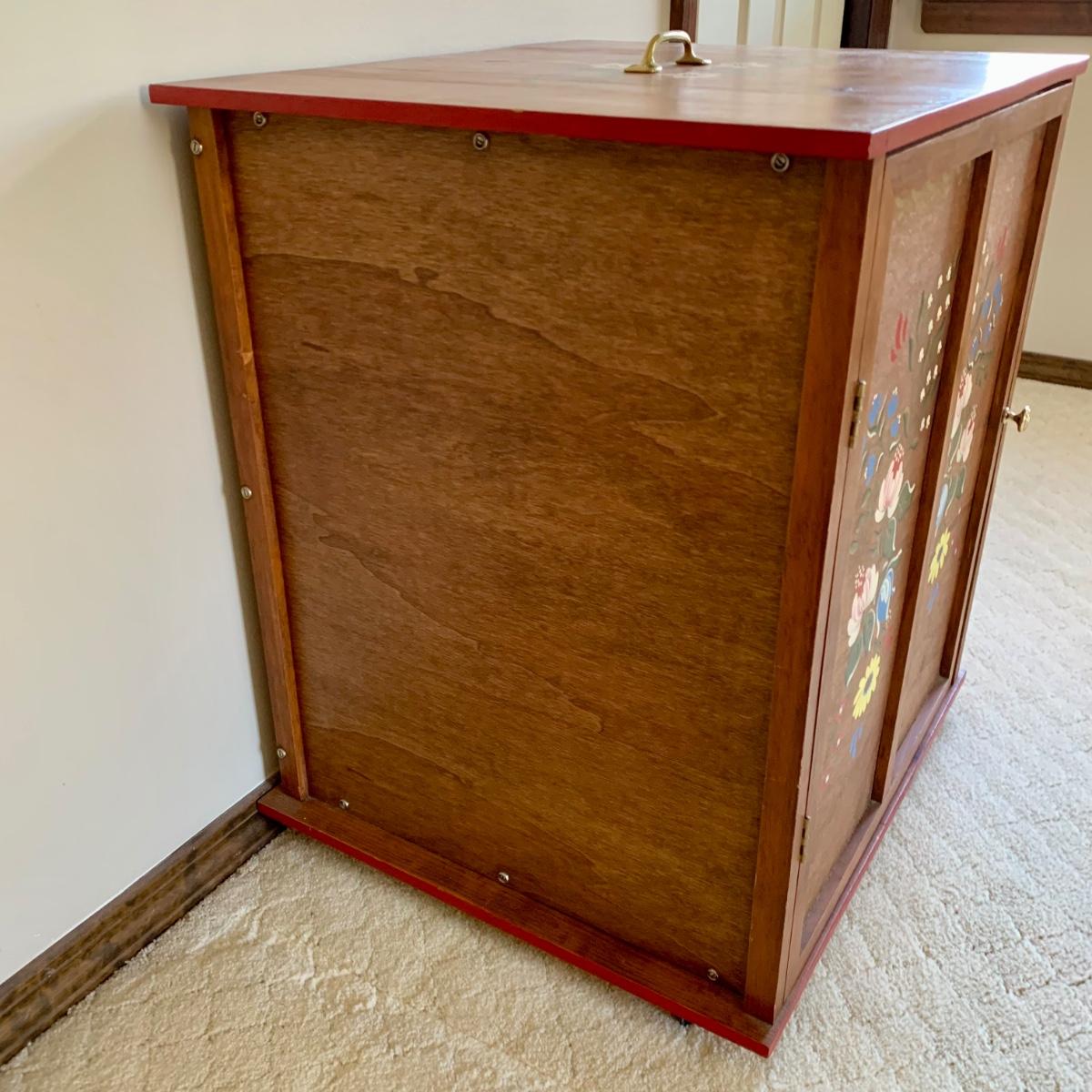 LOT 57 M: Hand Painted Cupboard / Storage Box w/ Wheels