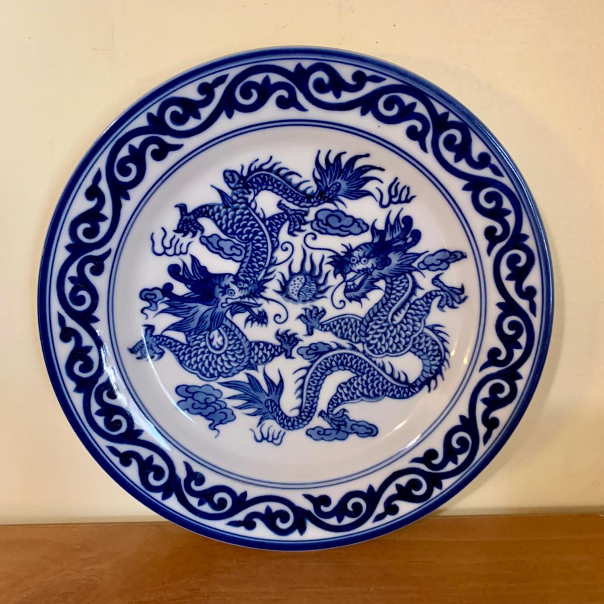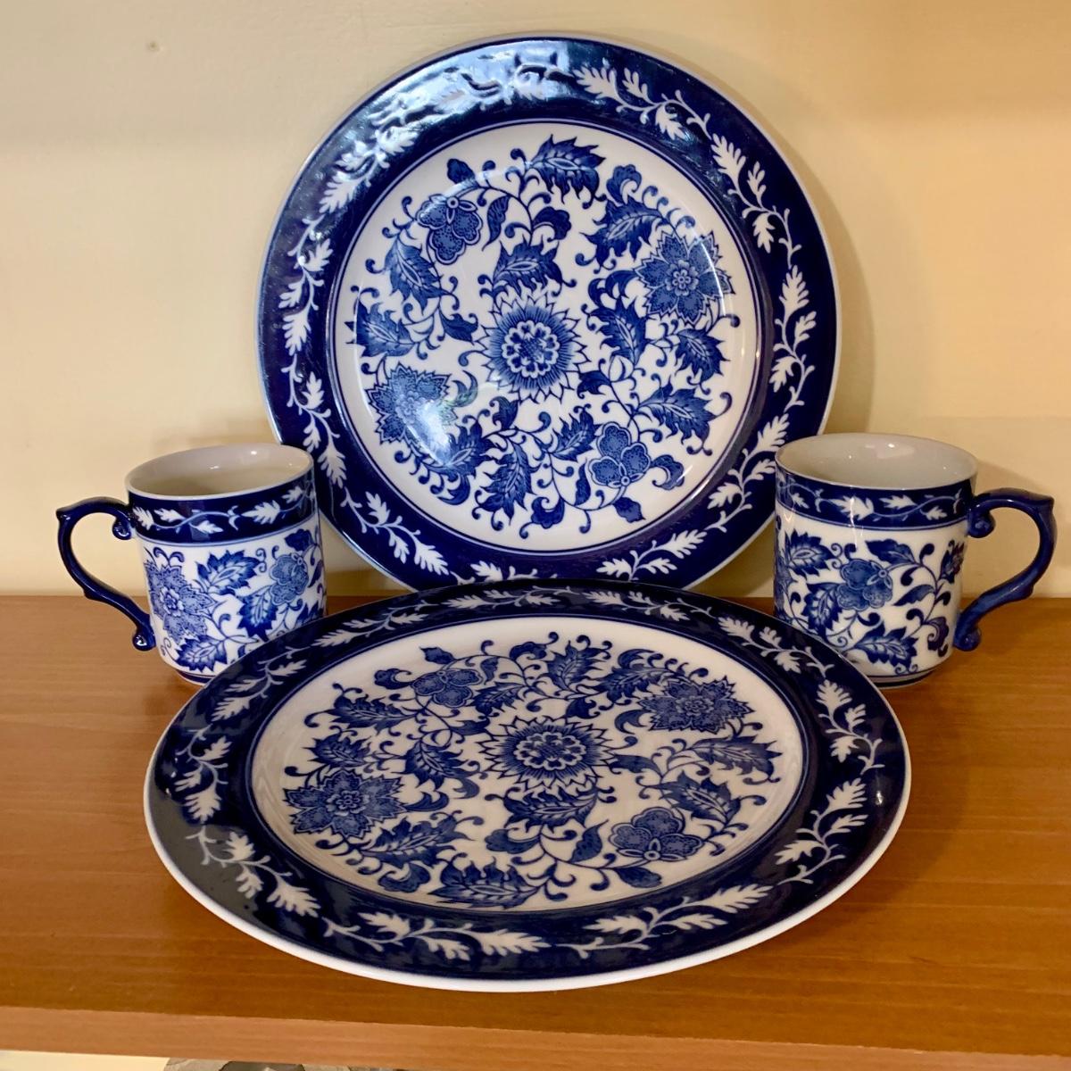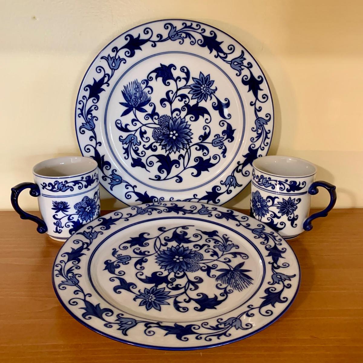 LOT 59 K: Bombay Blue & White China Set: Florals & Dragons 18 pieces