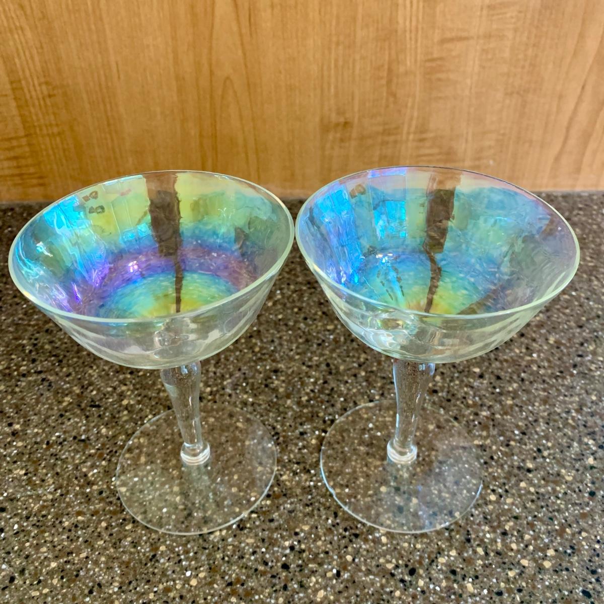 LOT 65 K: Gorgeous 1960's Iridescent Hi-ball & Martini Glasses
