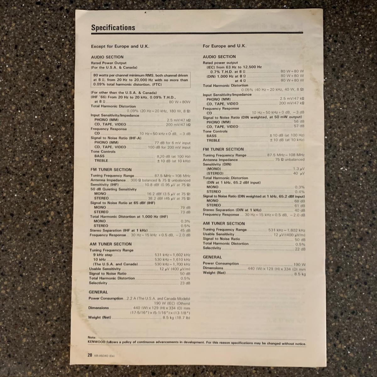 LOT 69 L: Kenwood AM/FM Stereo Receiver Model #KR-A5040