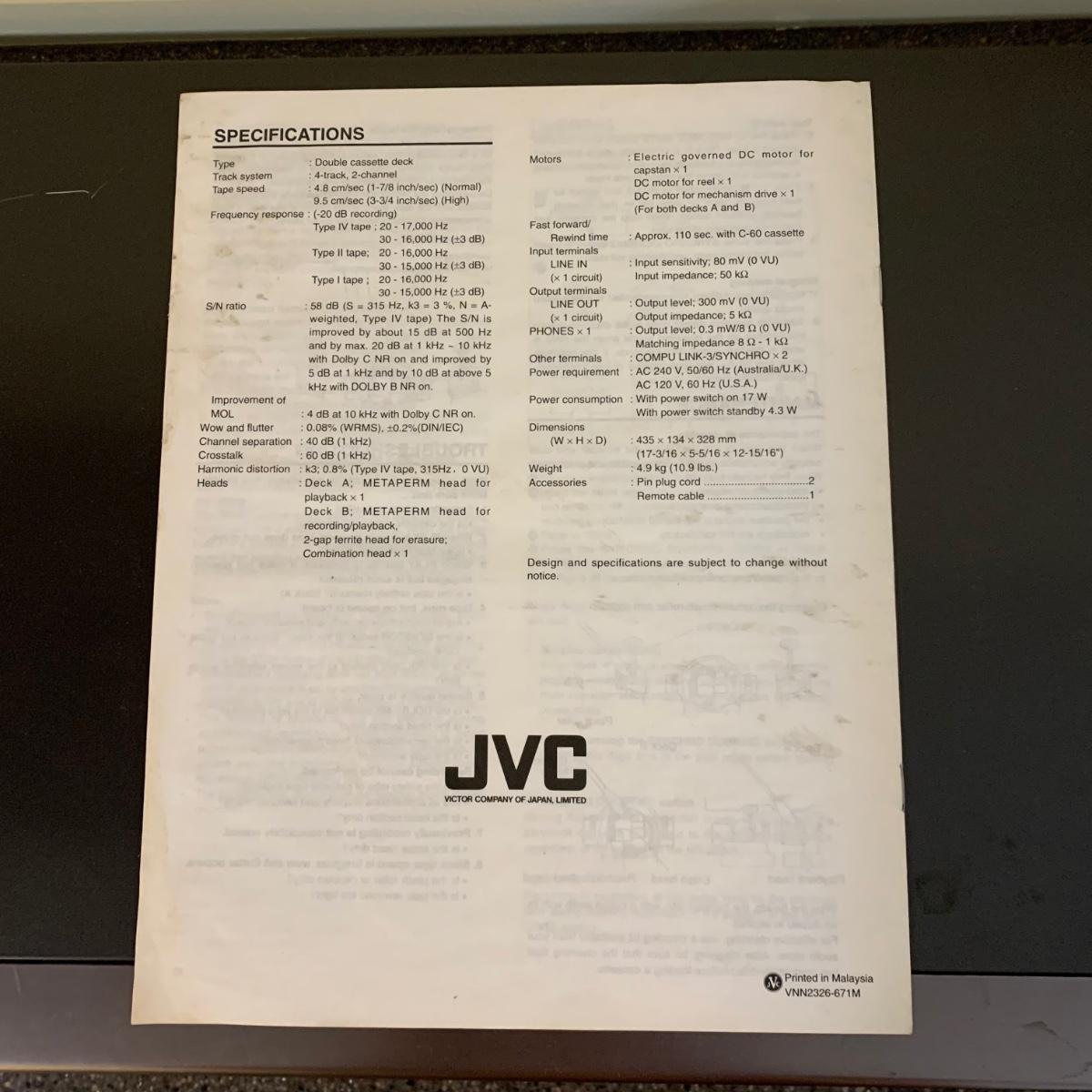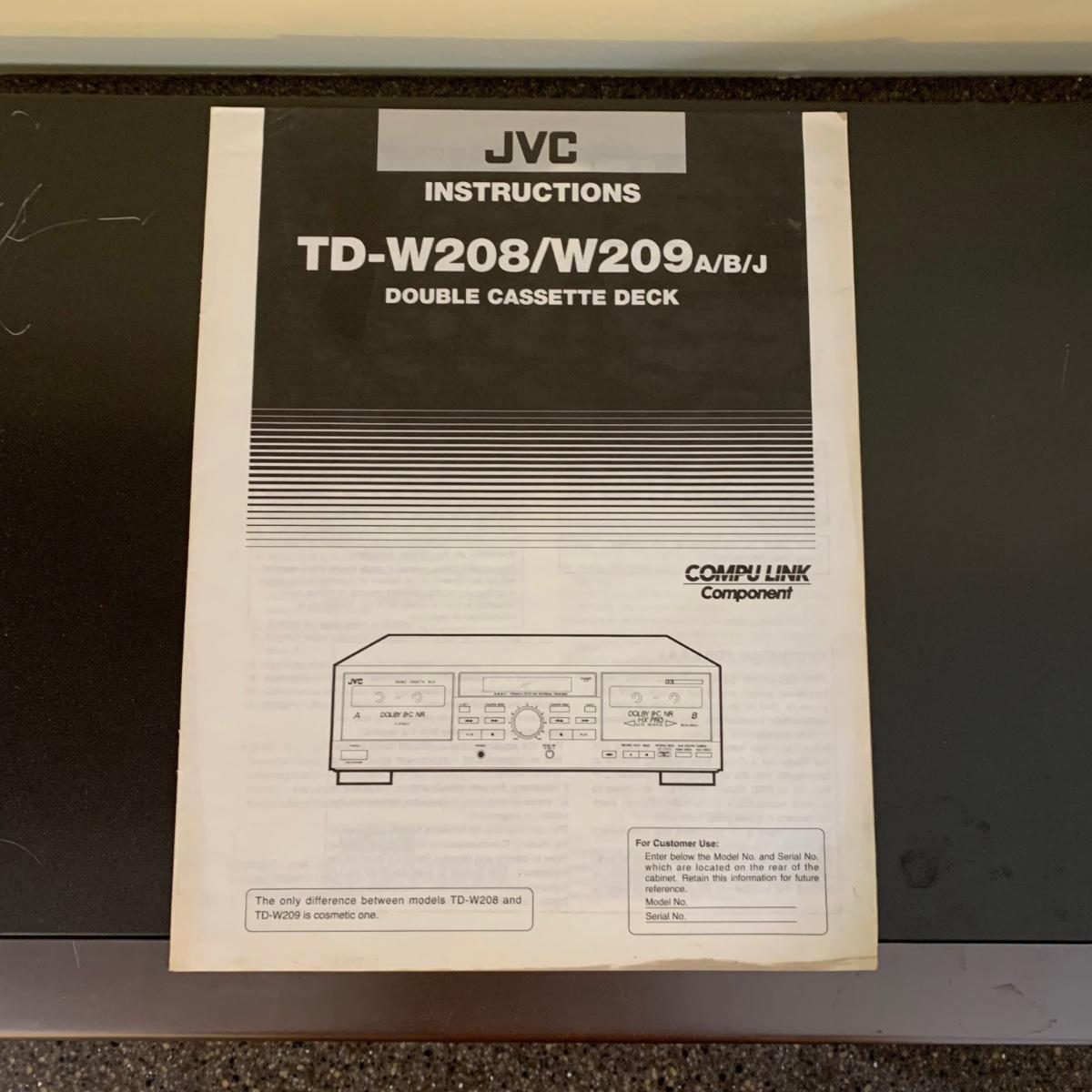 LOT 72 L: JVC Double Cassette Deck Model #TD-W209