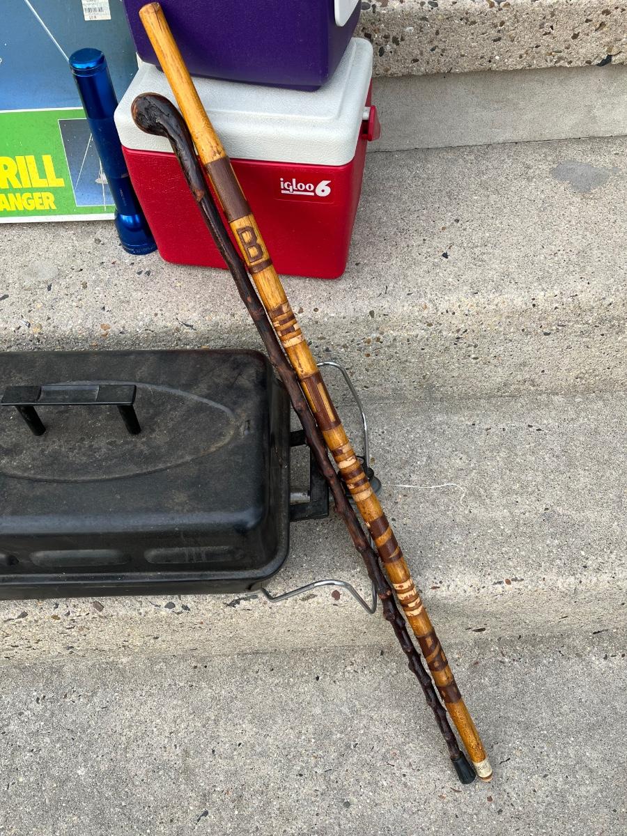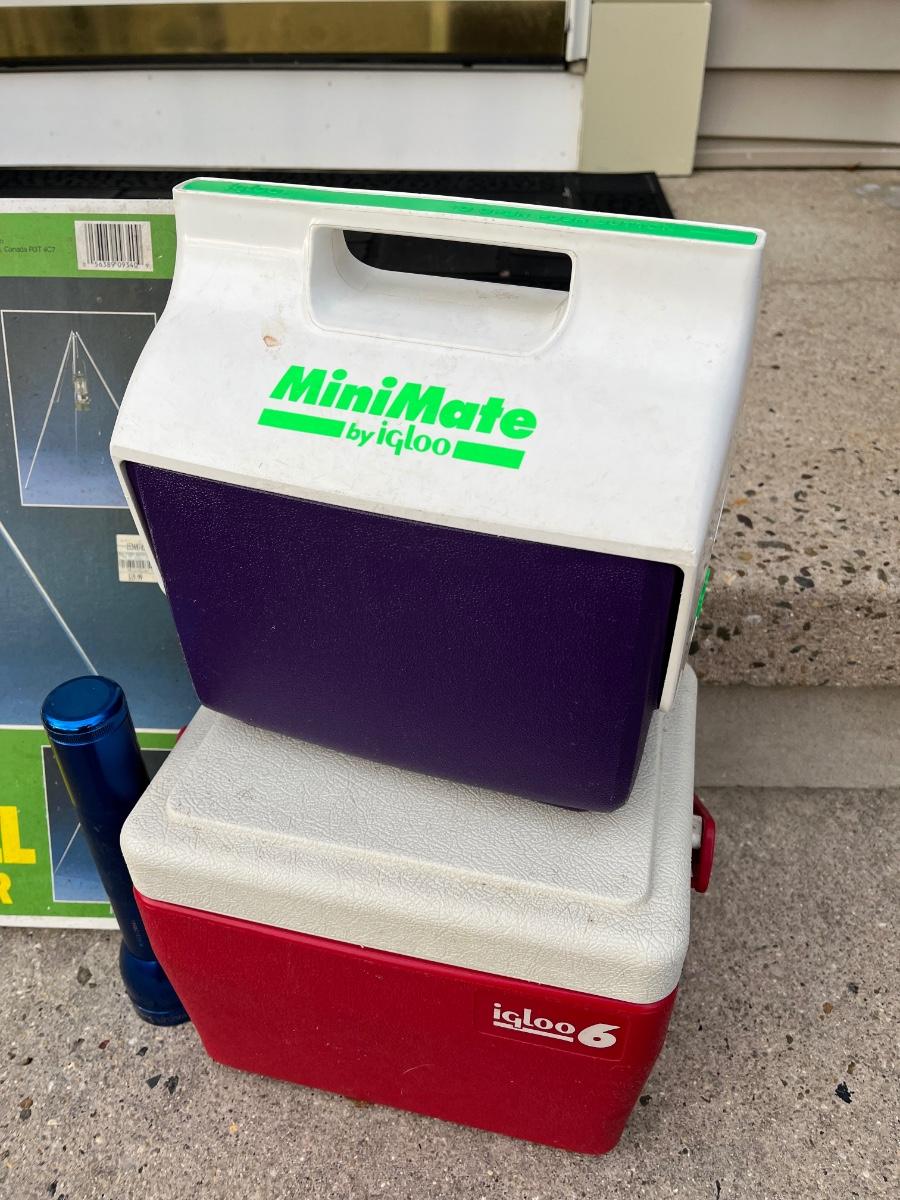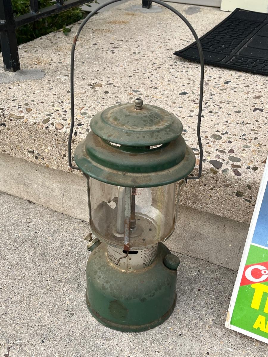 LOT 86G: Camping / Outdoors Equipment - Fishing Net, Cast Iron Pot, Binoculars, Lantern and More