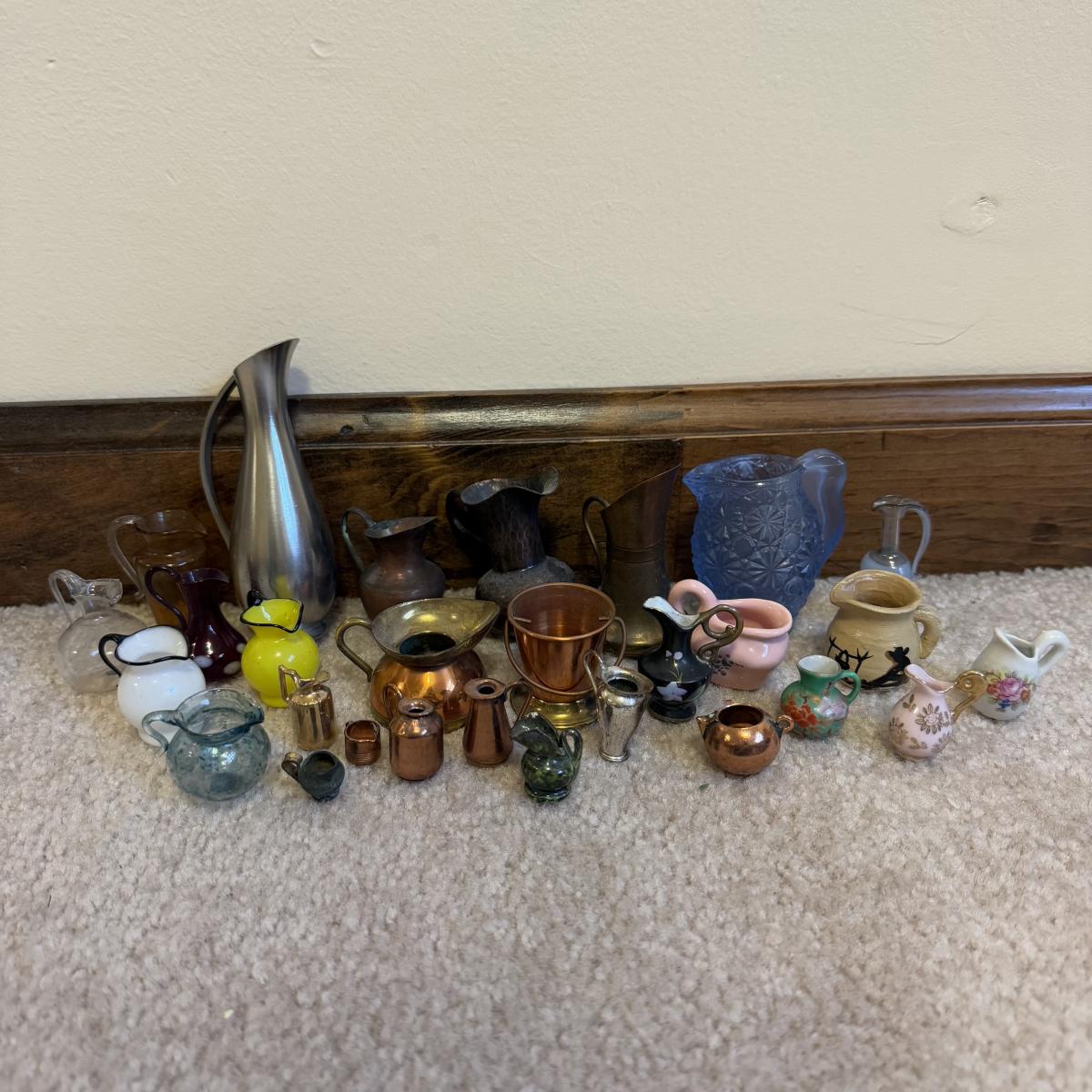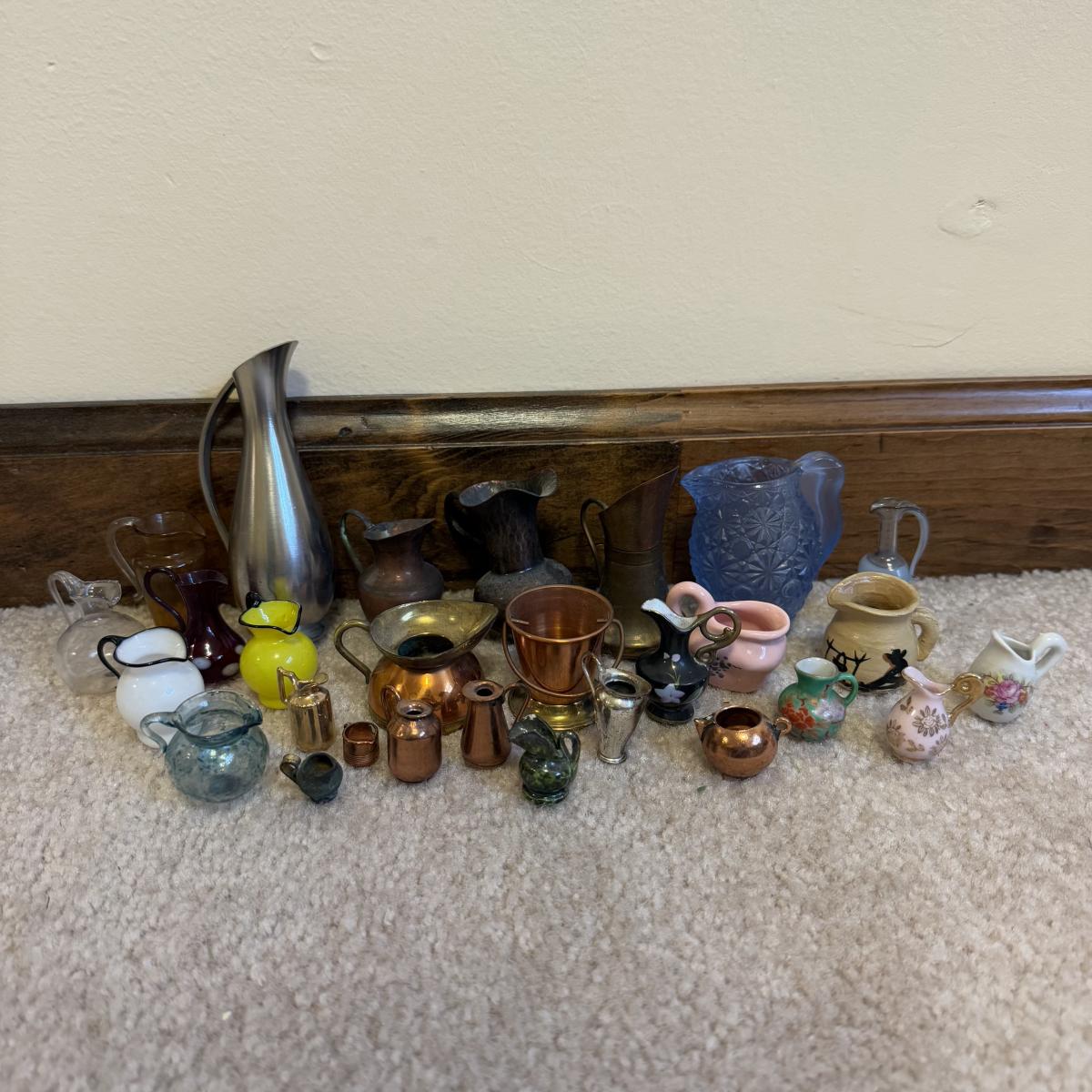 LOT 106B: Collection of Mini Pitchers - Glass, Cooper & More