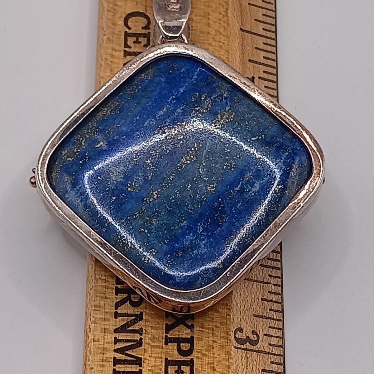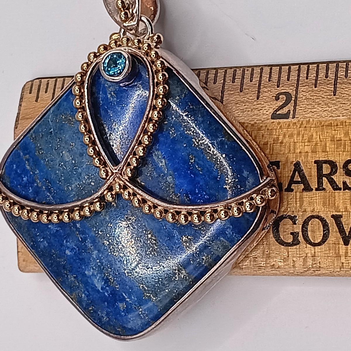 LOT 9: Lapis and Blue Topaz Pendant Set in 925 Sterling 29.8gtw on a 925 Sterling Choker 9.7g