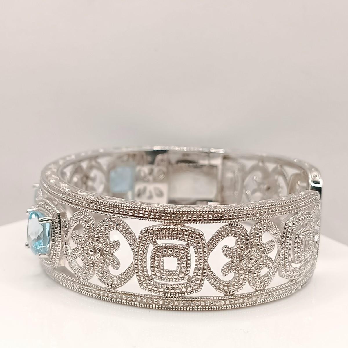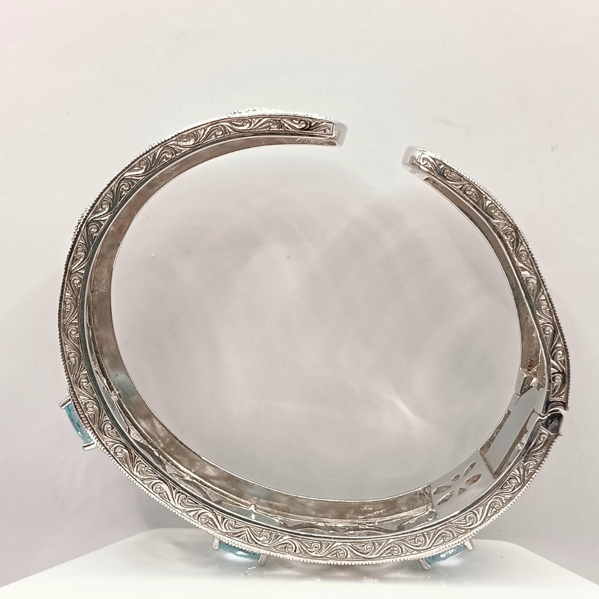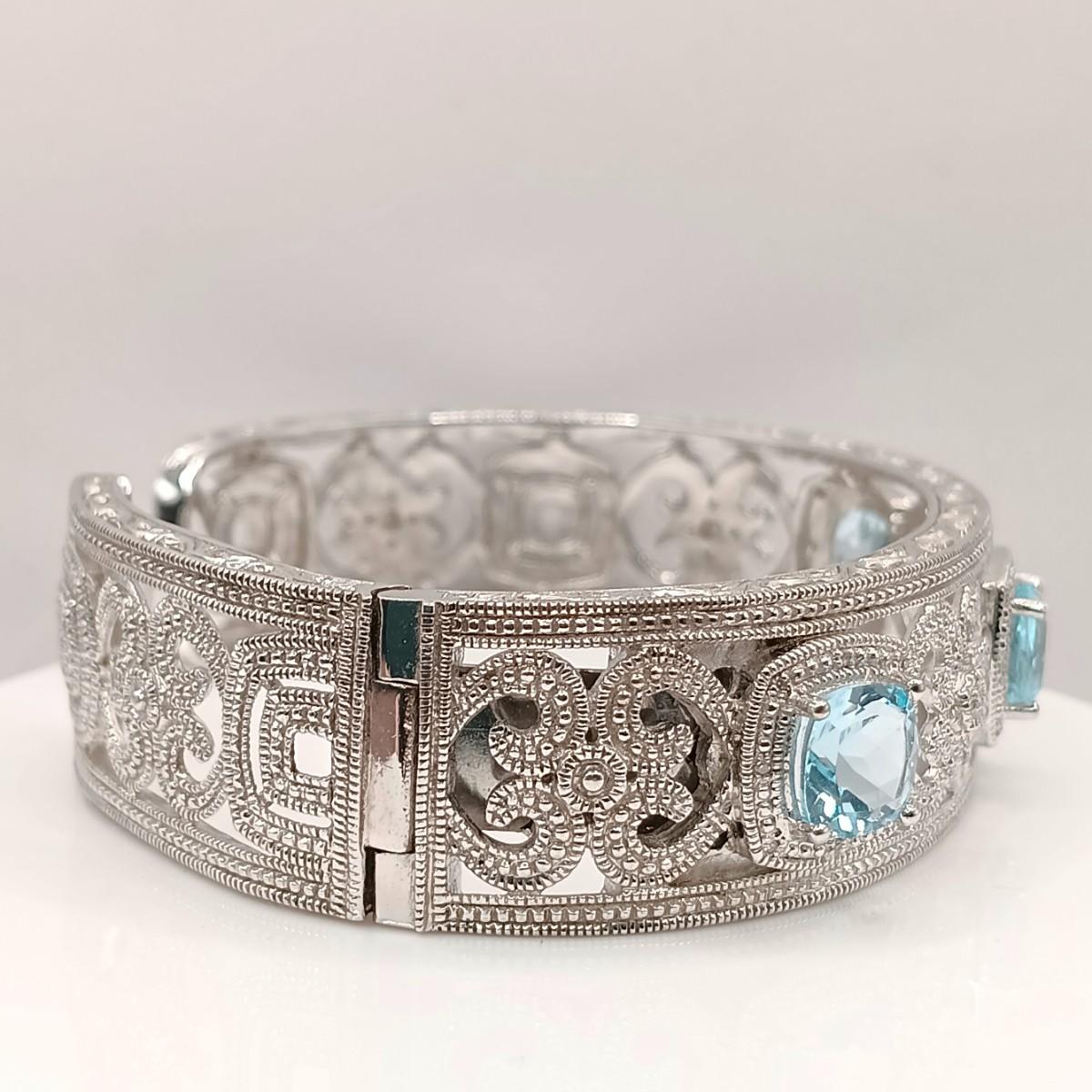 LOT 10: ISP 925 Sterling China Hinged Cuff with Blue Topaz Stones 39.4gtw