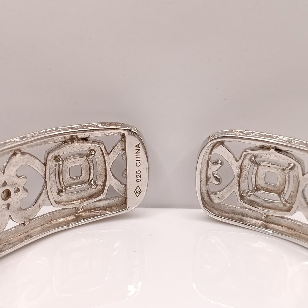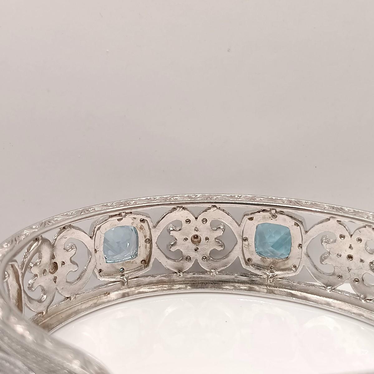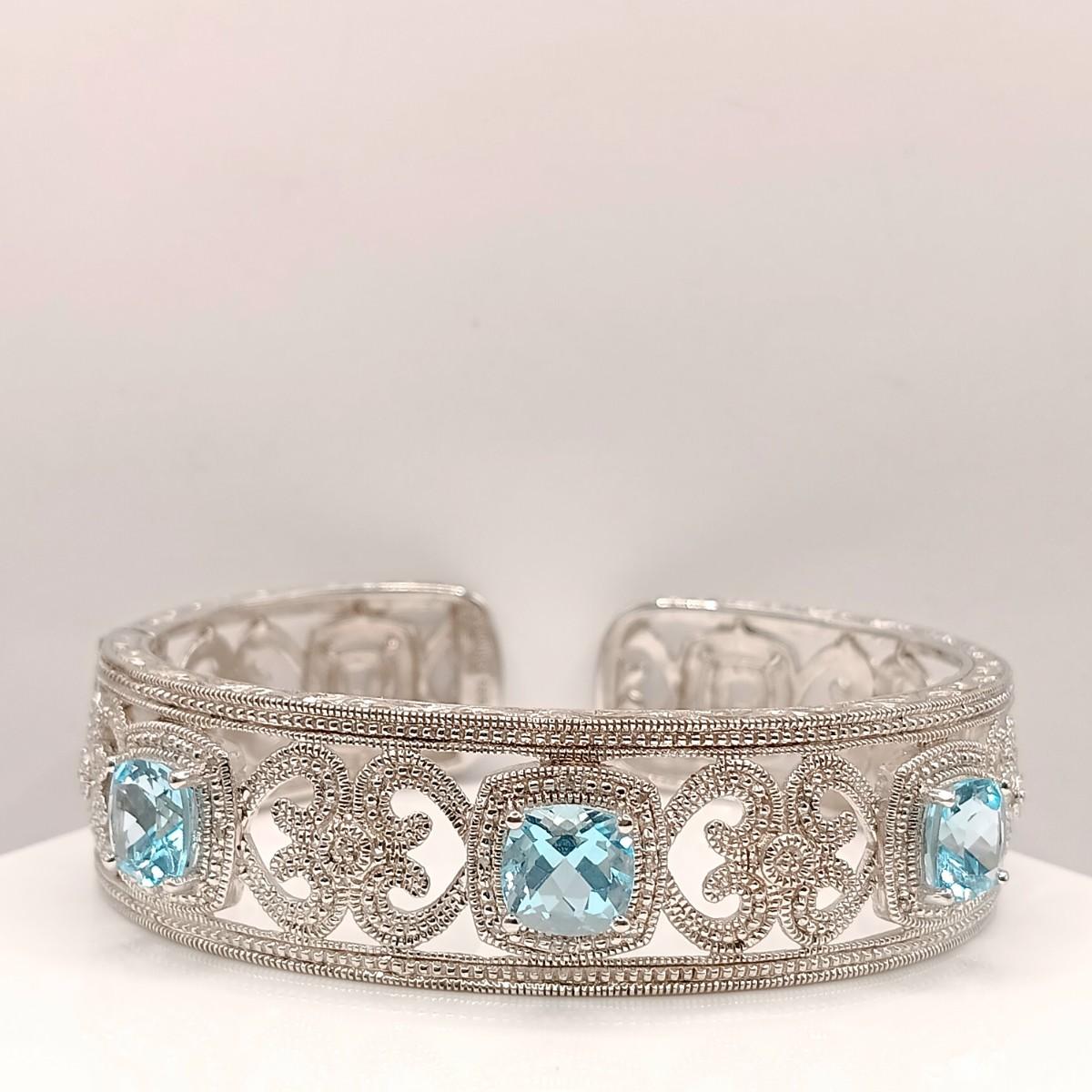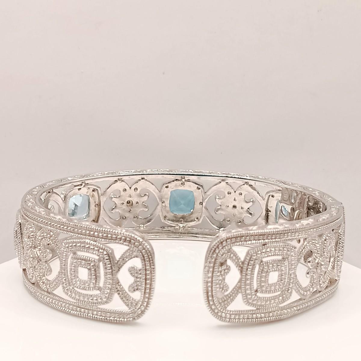 LOT 10: ISP 925 Sterling China Hinged Cuff with Blue Topaz Stones 39.4gtw