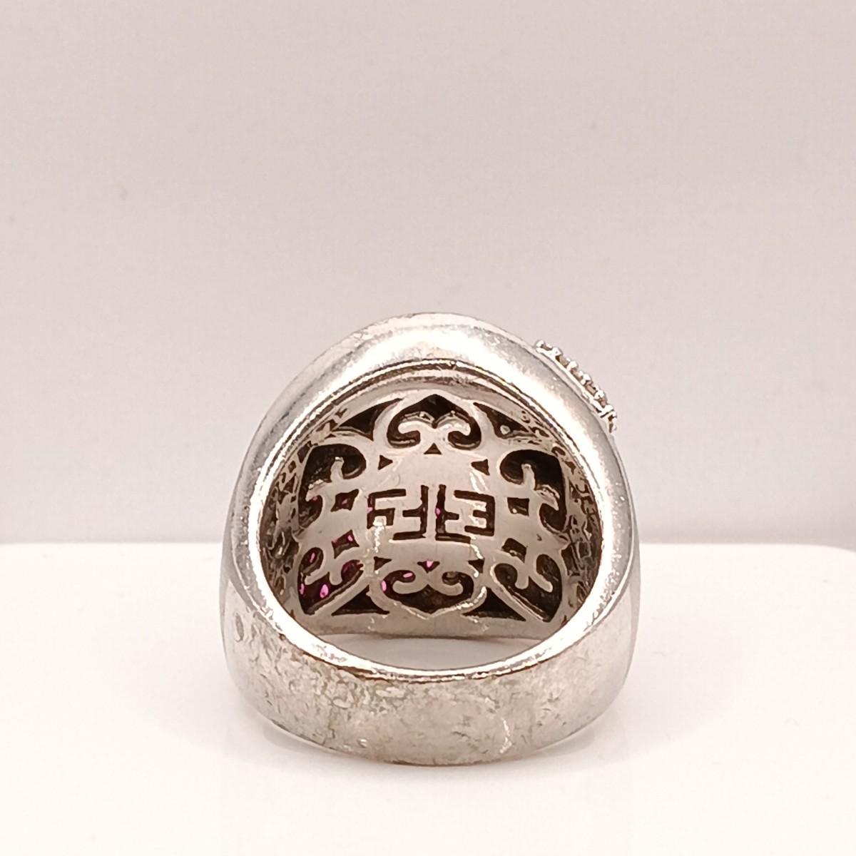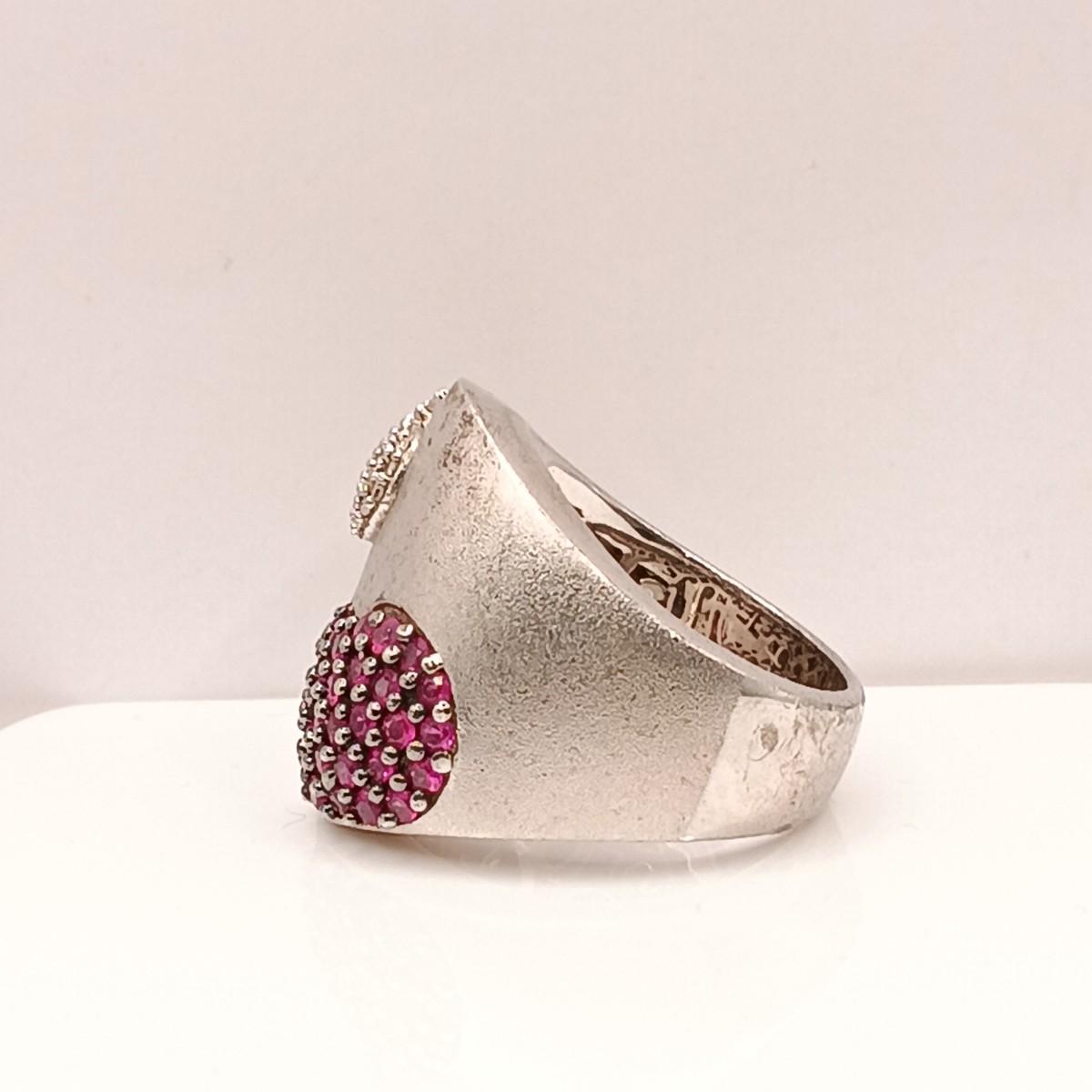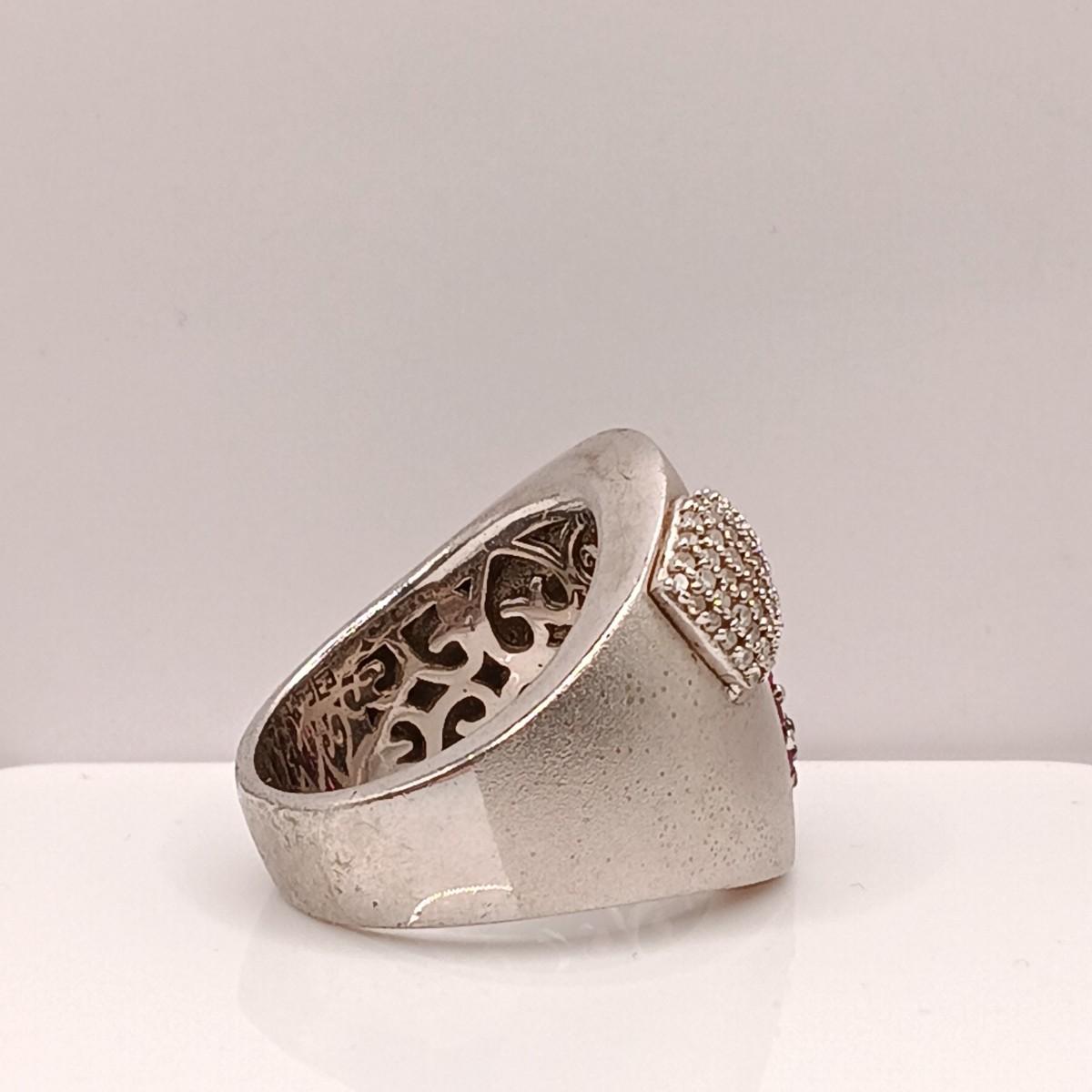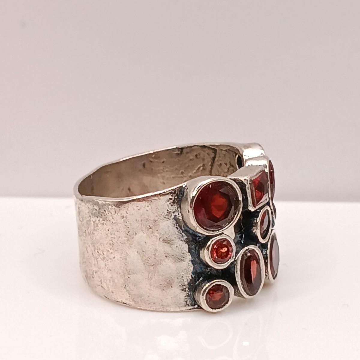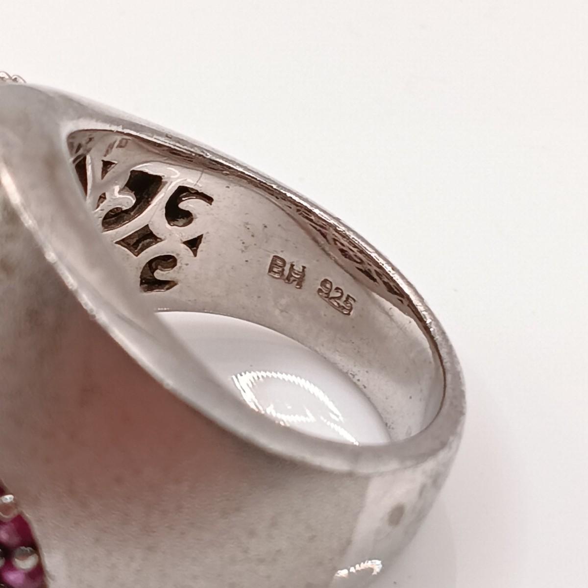 LOT 26: BH 925 Sterling Heart Ring 13.39g, 950 Flower Ring 10.73g & Israel 925 Ring with Garnet-Tone Stones 7.94g