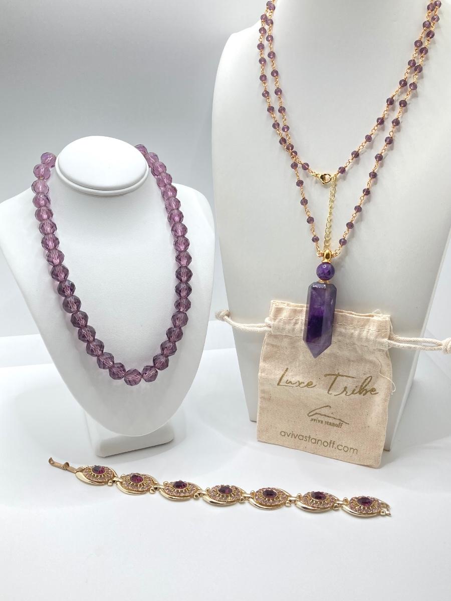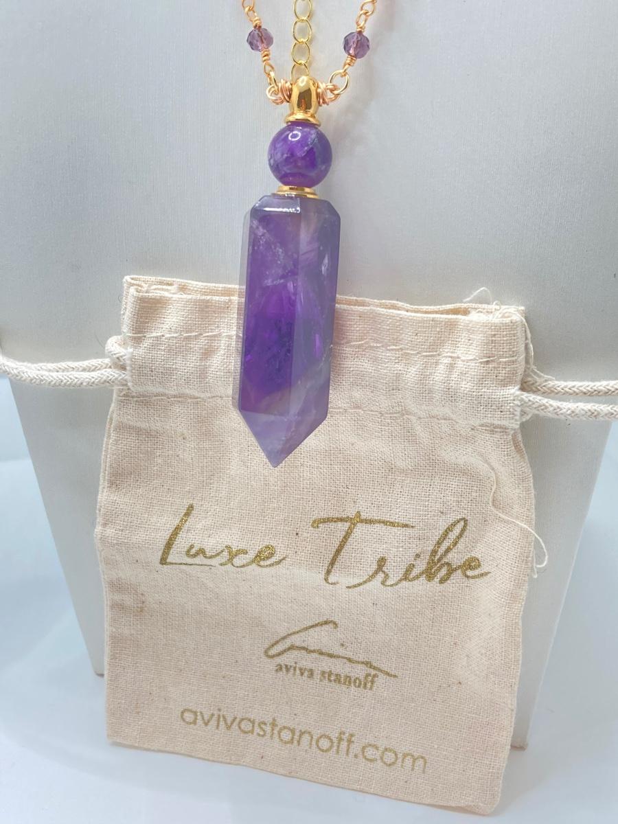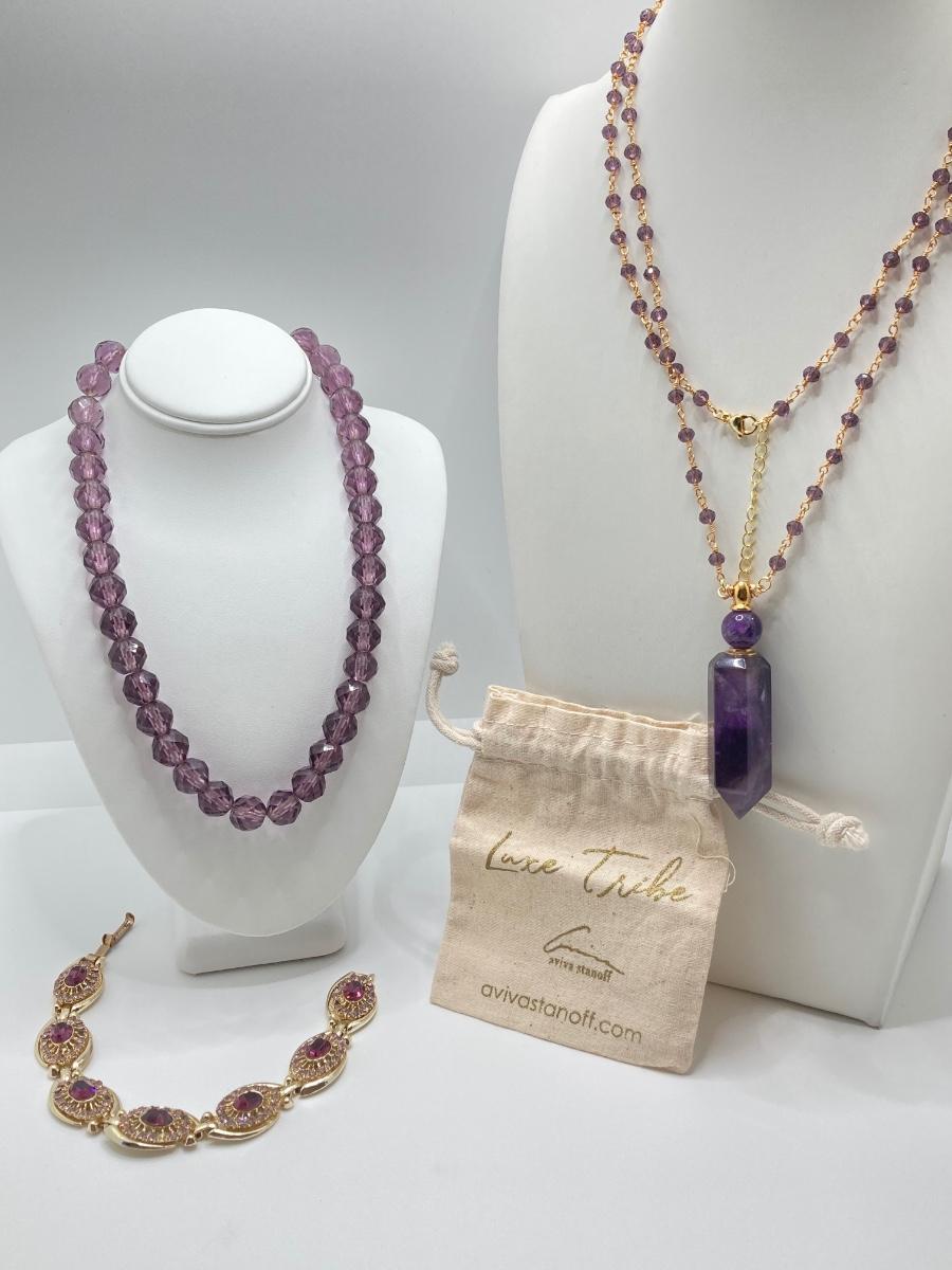 LOT 41: Aviva Stanoff Luxe Tribe Amethyst Bottle (14K Gold Plate), Faceted Glass Beads and More