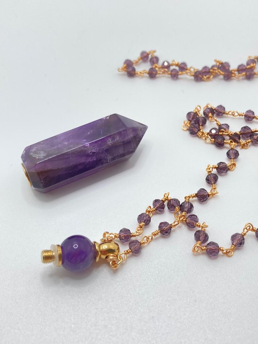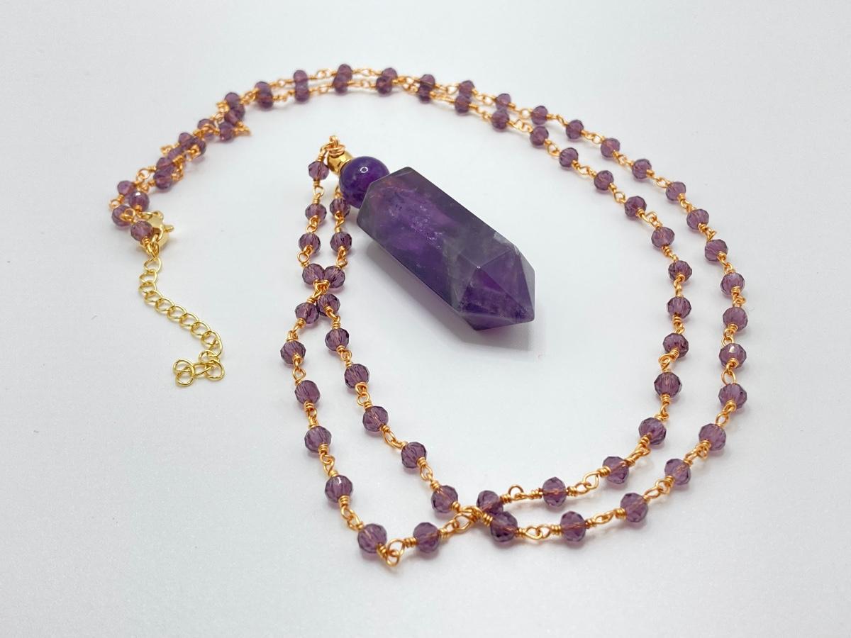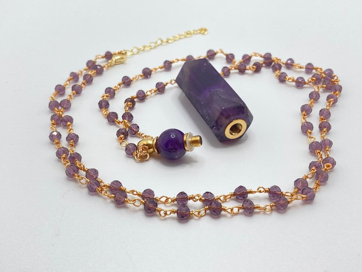 LOT 41: Aviva Stanoff Luxe Tribe Amethyst Bottle (14K Gold Plate), Faceted Glass Beads and More