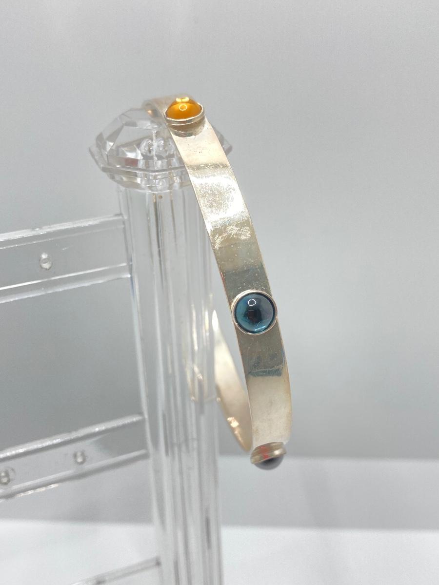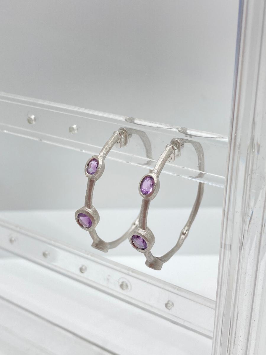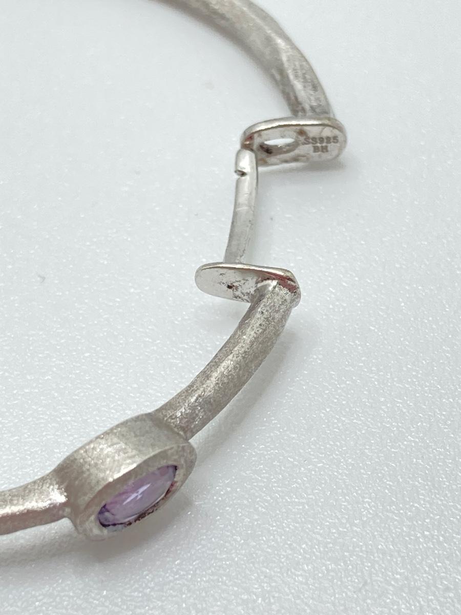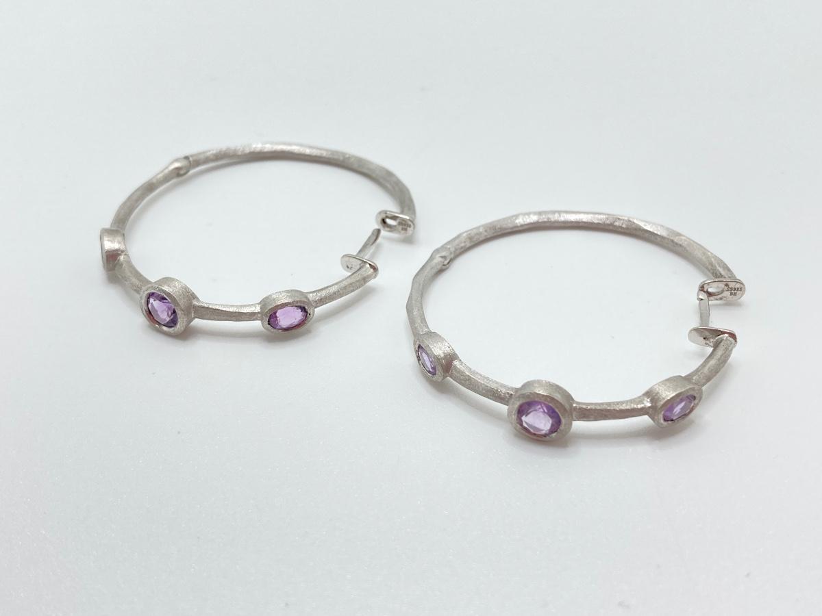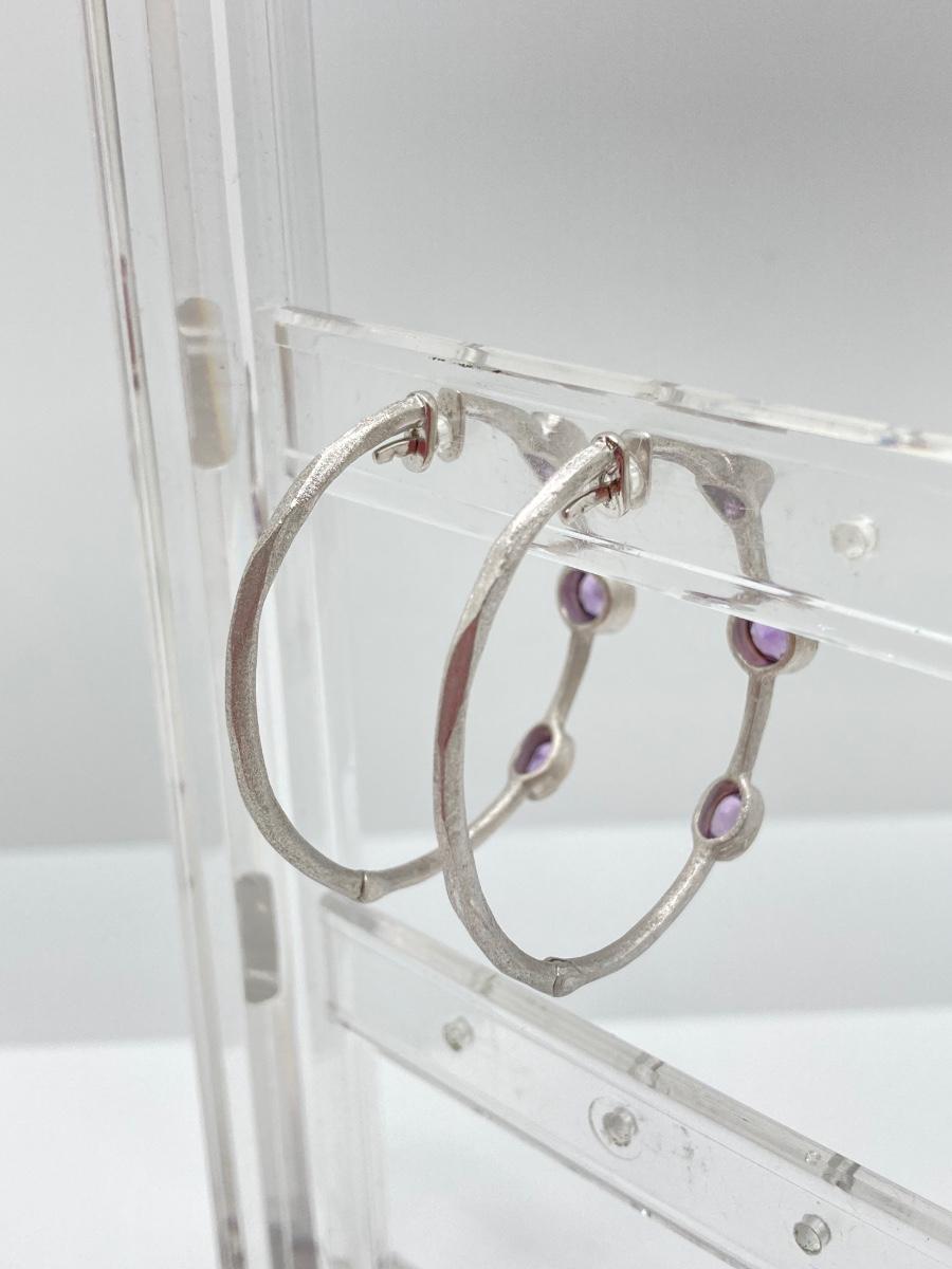 LOT 51: Amethyst Hoop Earrings and Artisan Sterling and Gemstone Bangle Bracelet