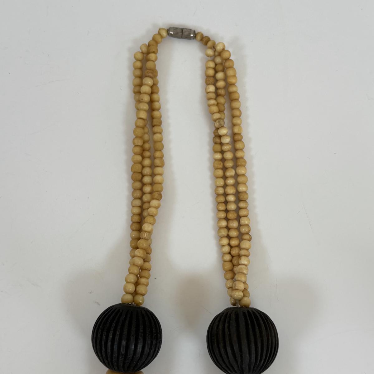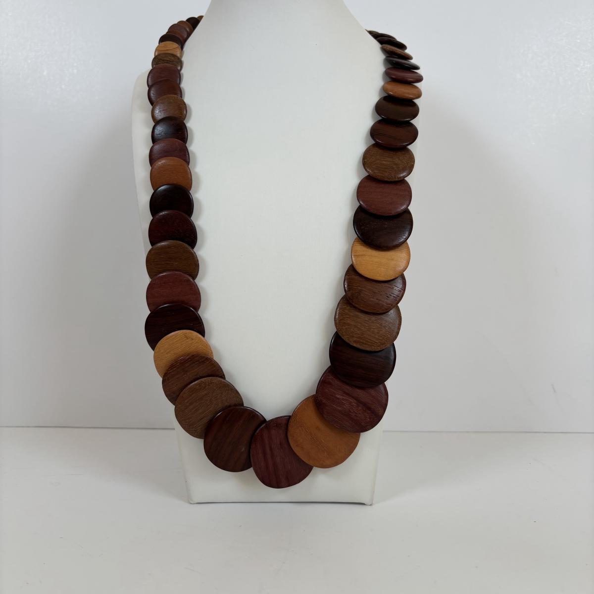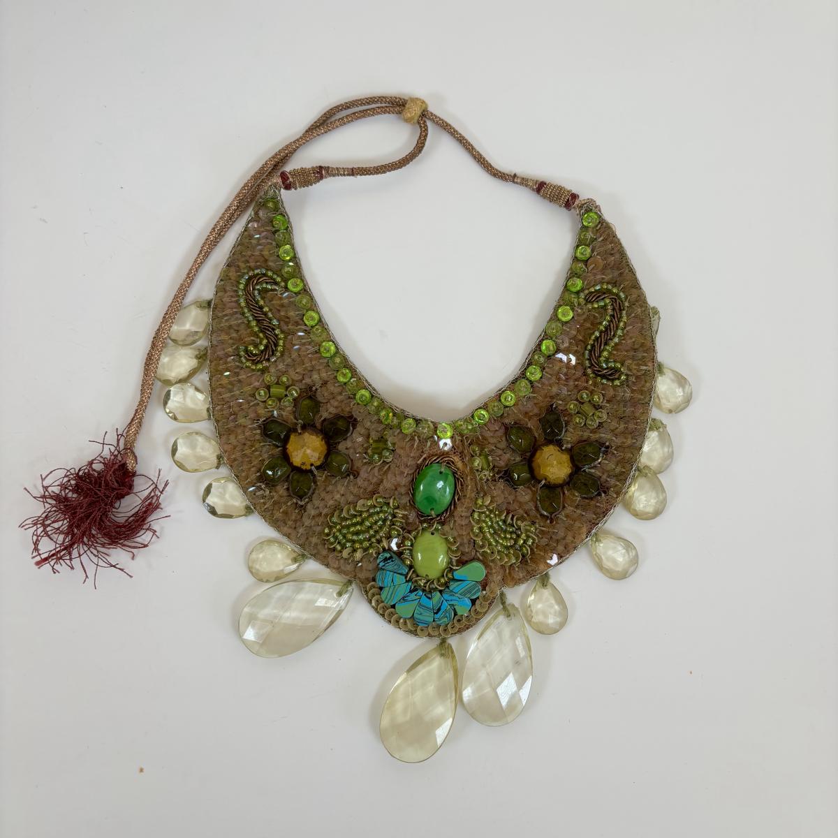 LOT 64: Hand Crafted Jewelry Collection: Wood Necklace & Earrings, Fabric Brooches & Collar Necklace, Embroidered Beaded Bracelet and Bone Necklace