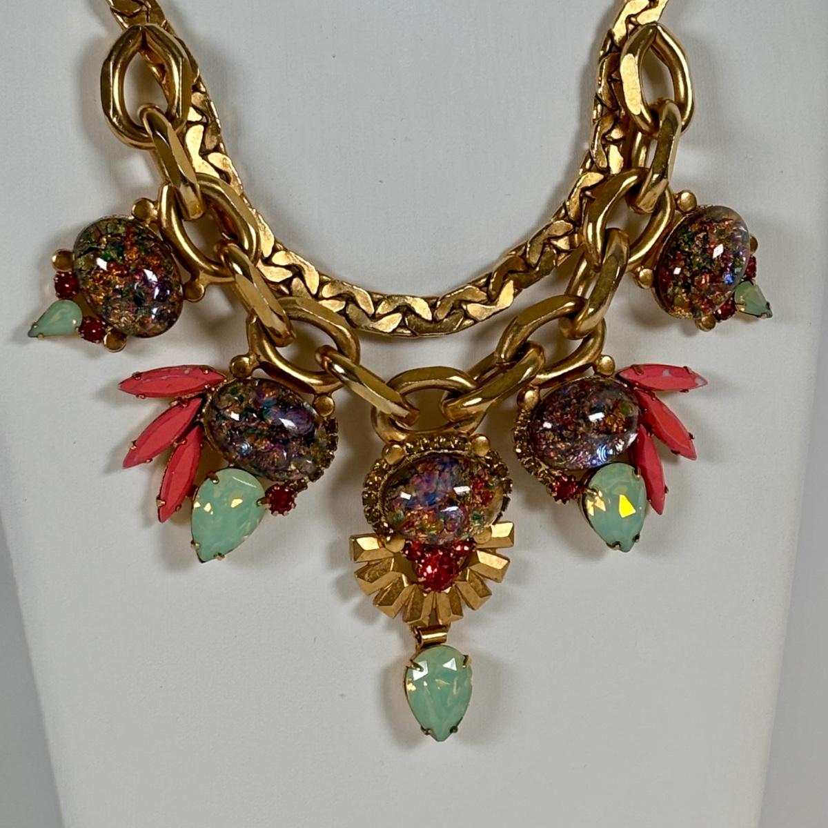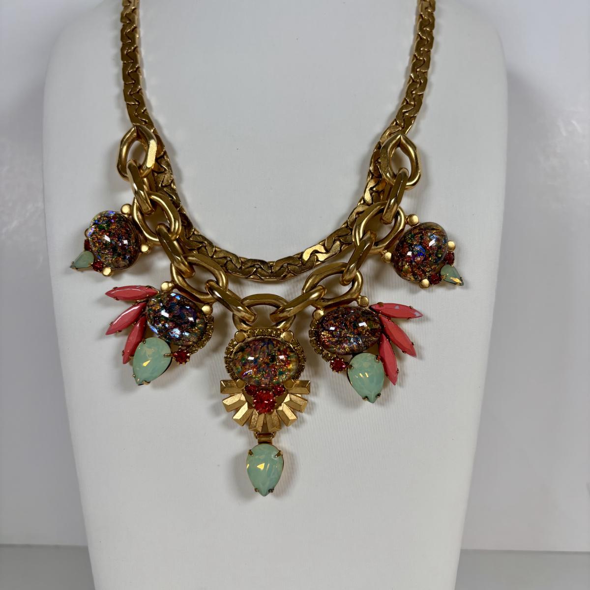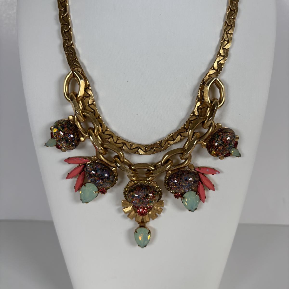 LOT 75: Vintage Elizabeth Cole Jeweled Gold-Tone Statement Necklace