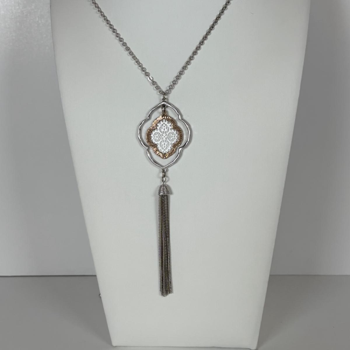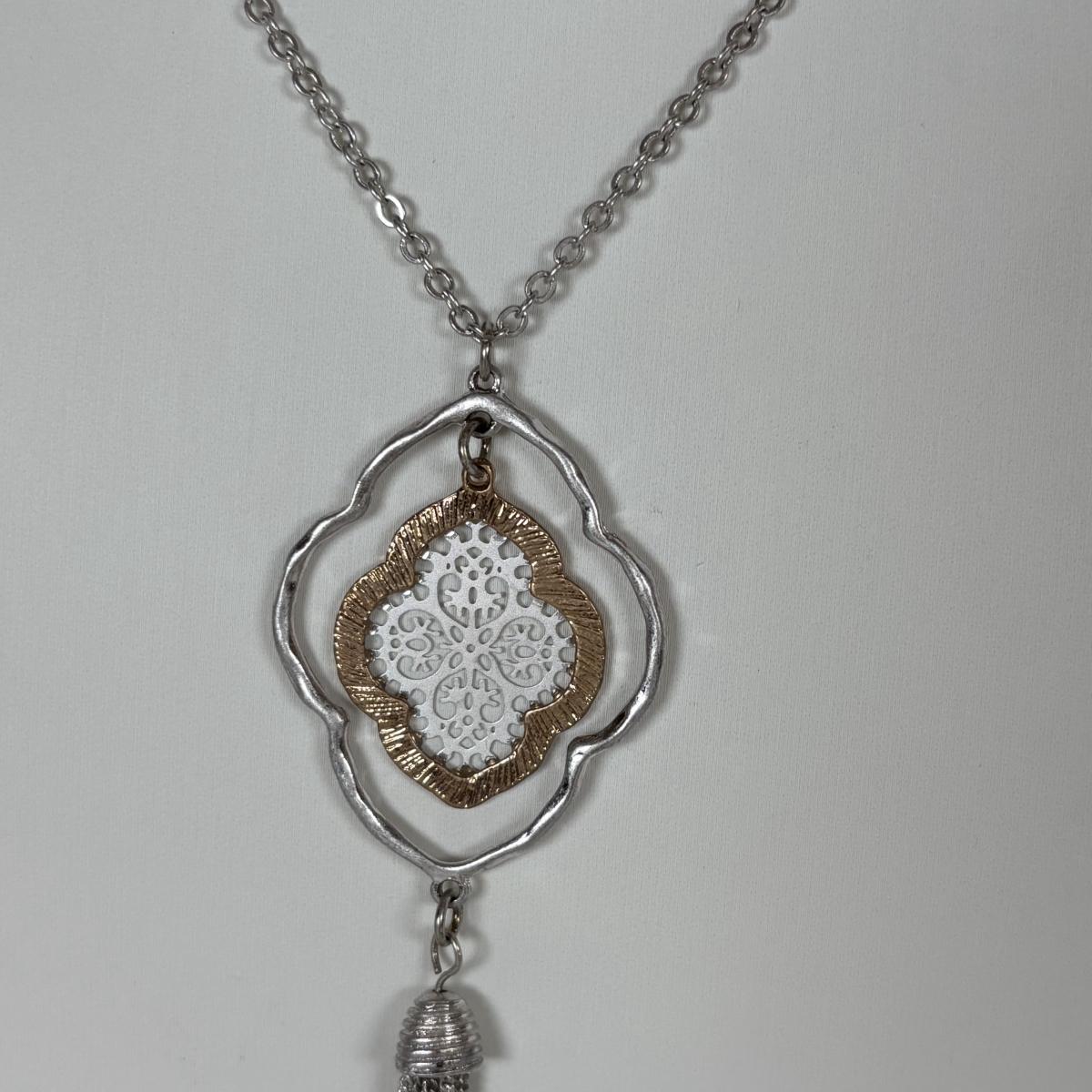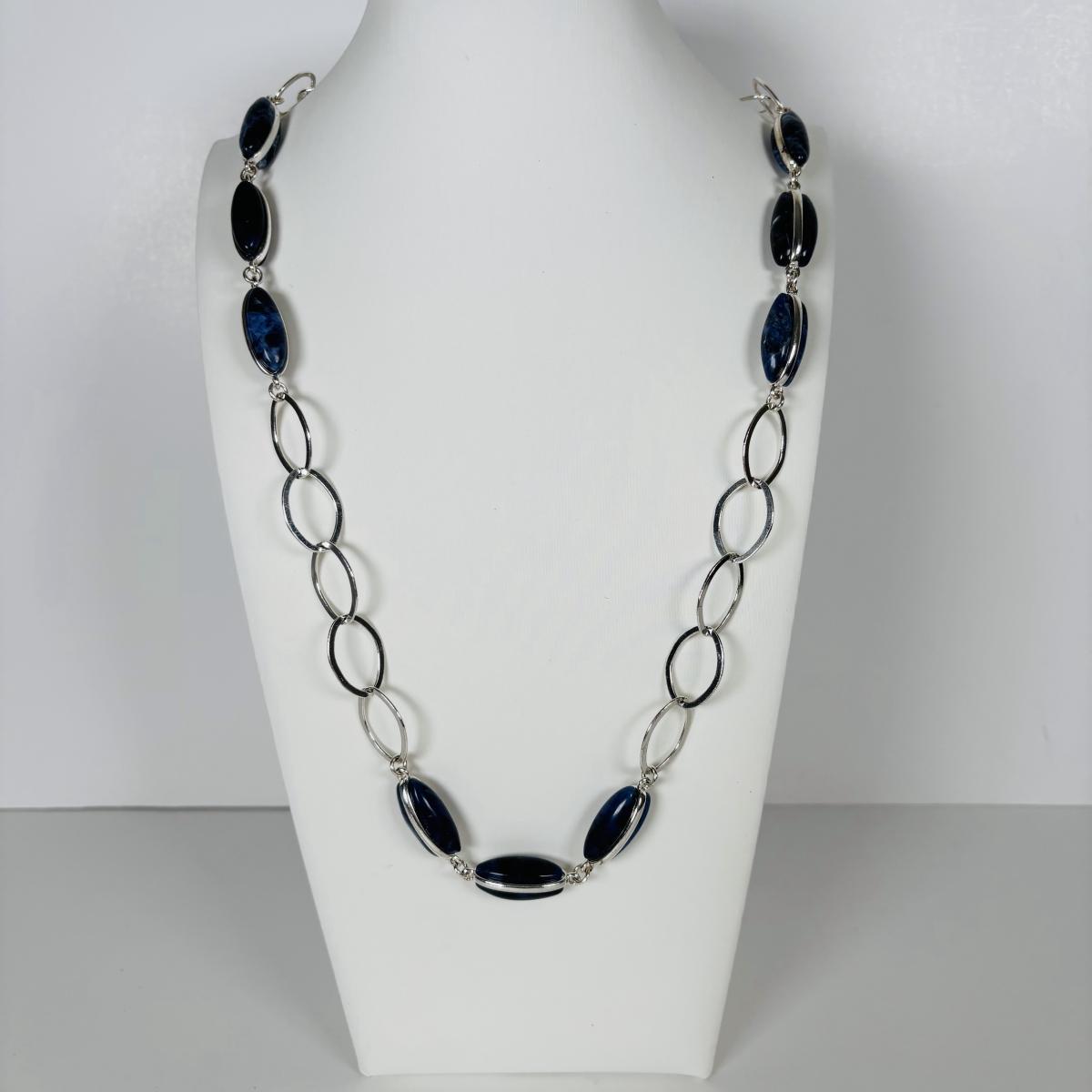 LOT 77: Silver-Tone/Gold-Tone Necklace & Earring Set, Blue Beaded Necklace, Monet Necklace, Luck Brand Hinged Bracelet & Pierced Earrings