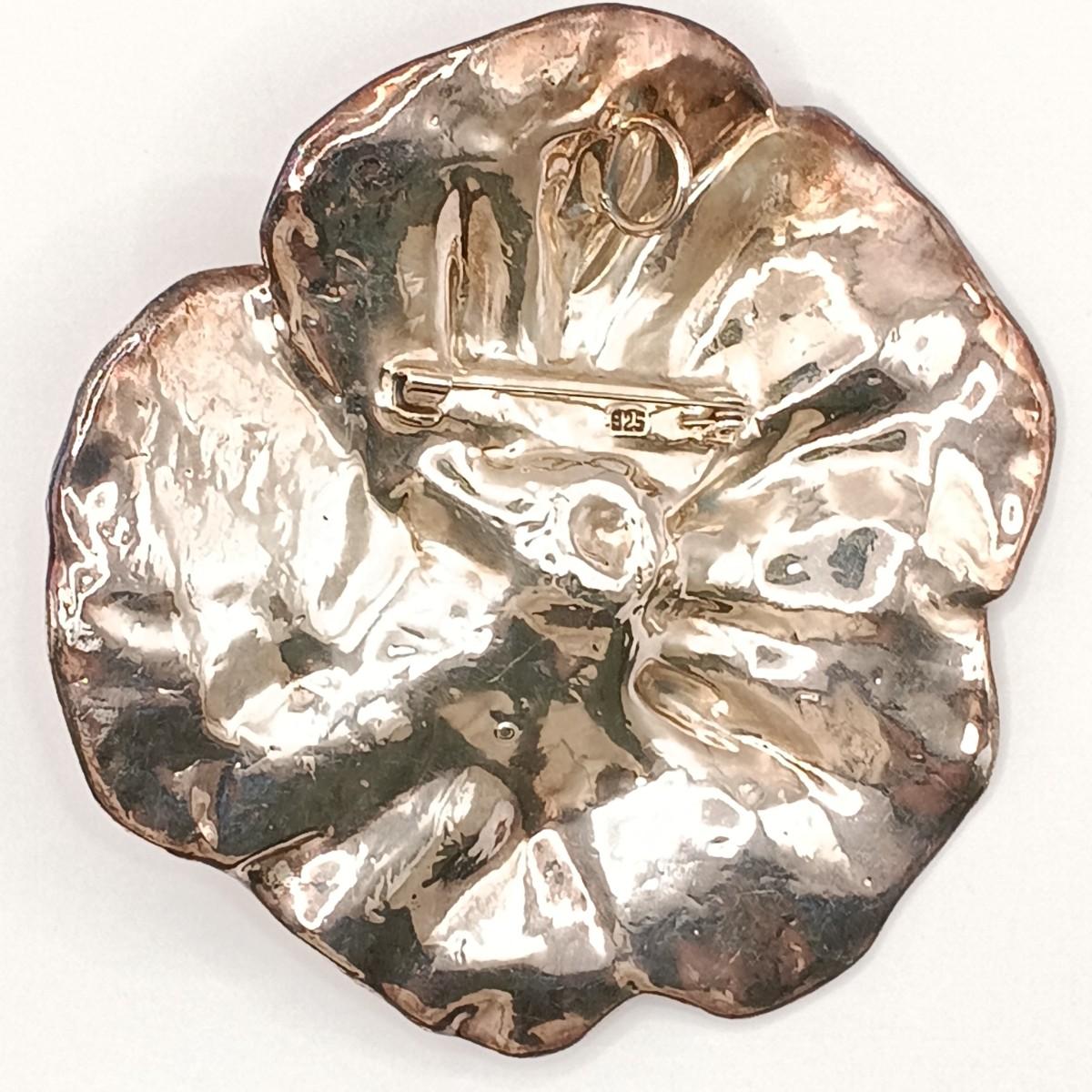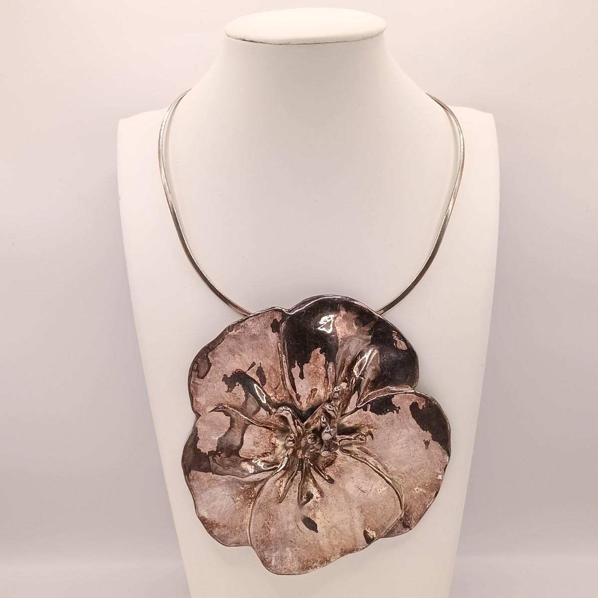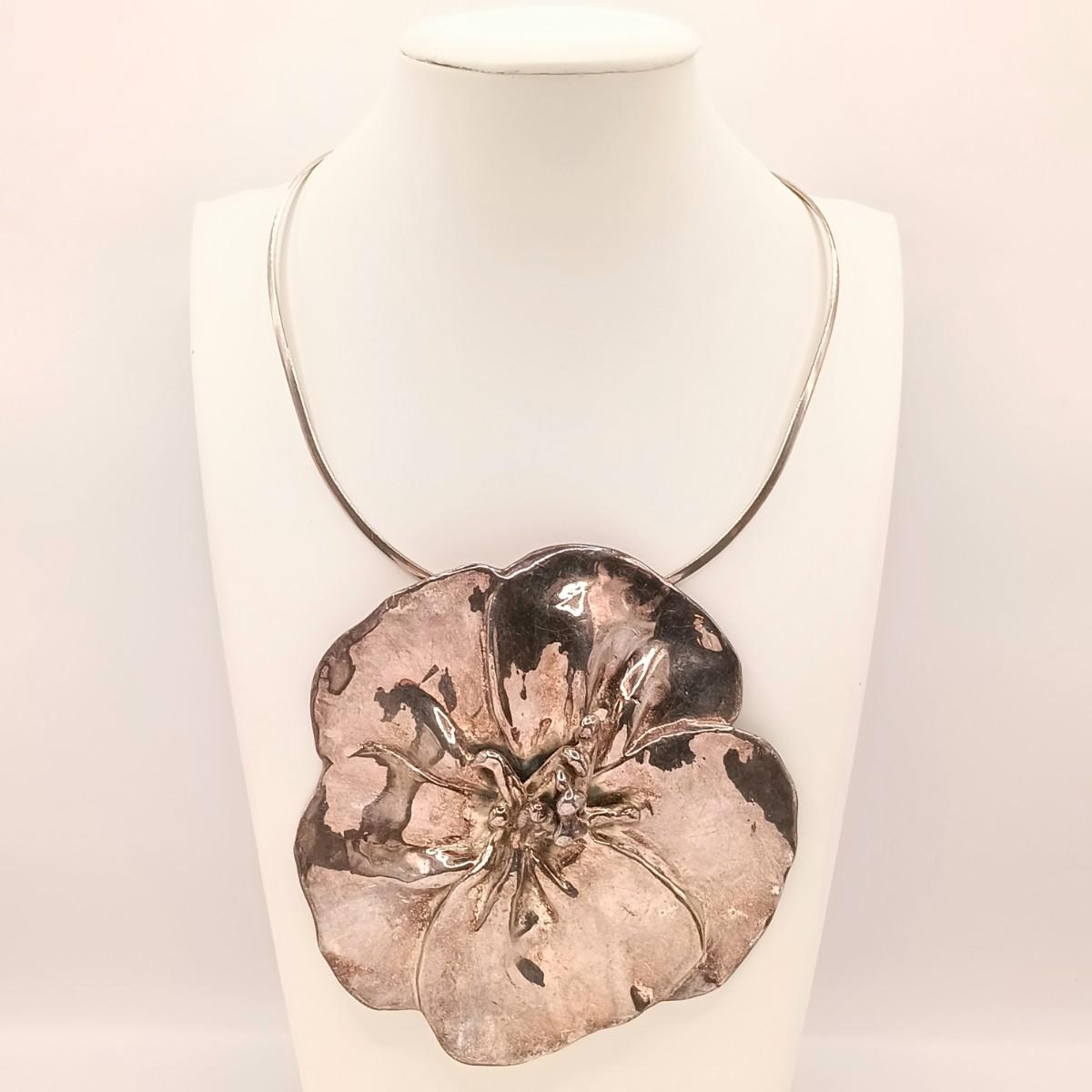 LOT 143: Large 62.5g 925 Sterling Flower Pendant / Brooch on a 925 Sterling Choker