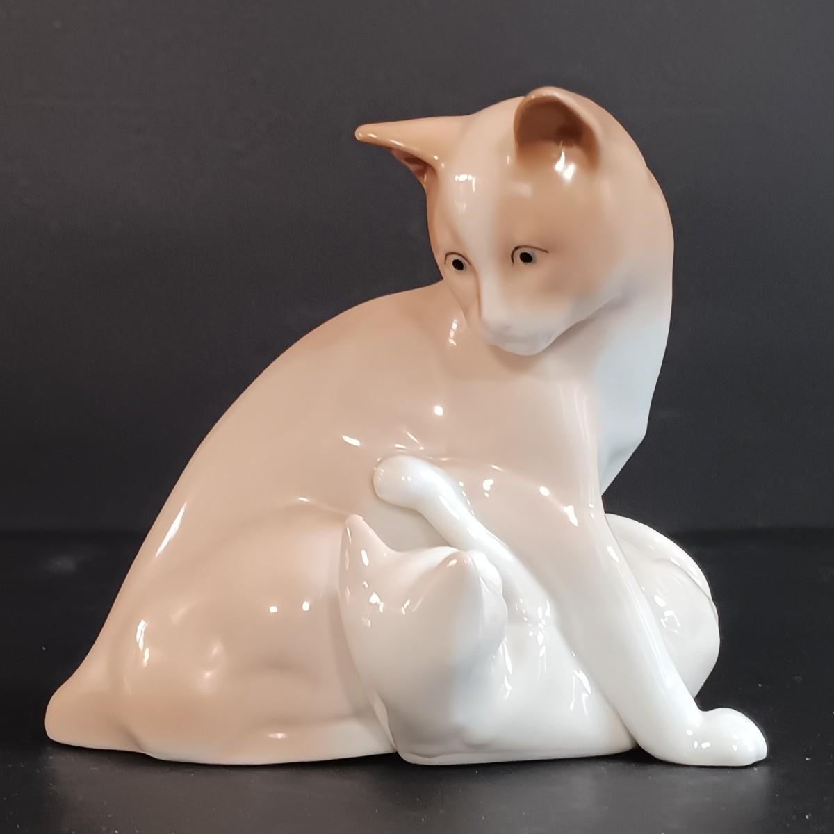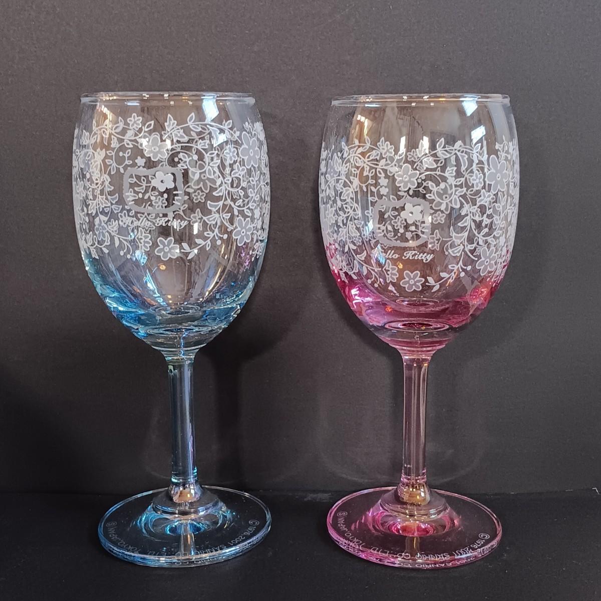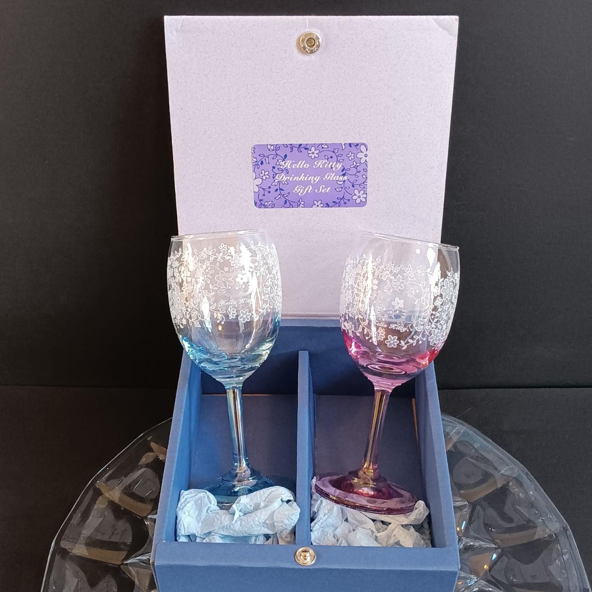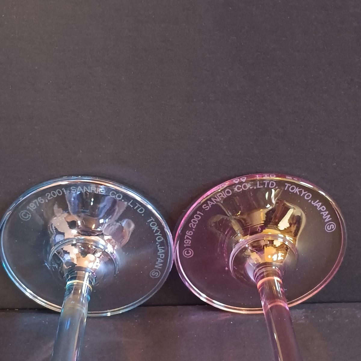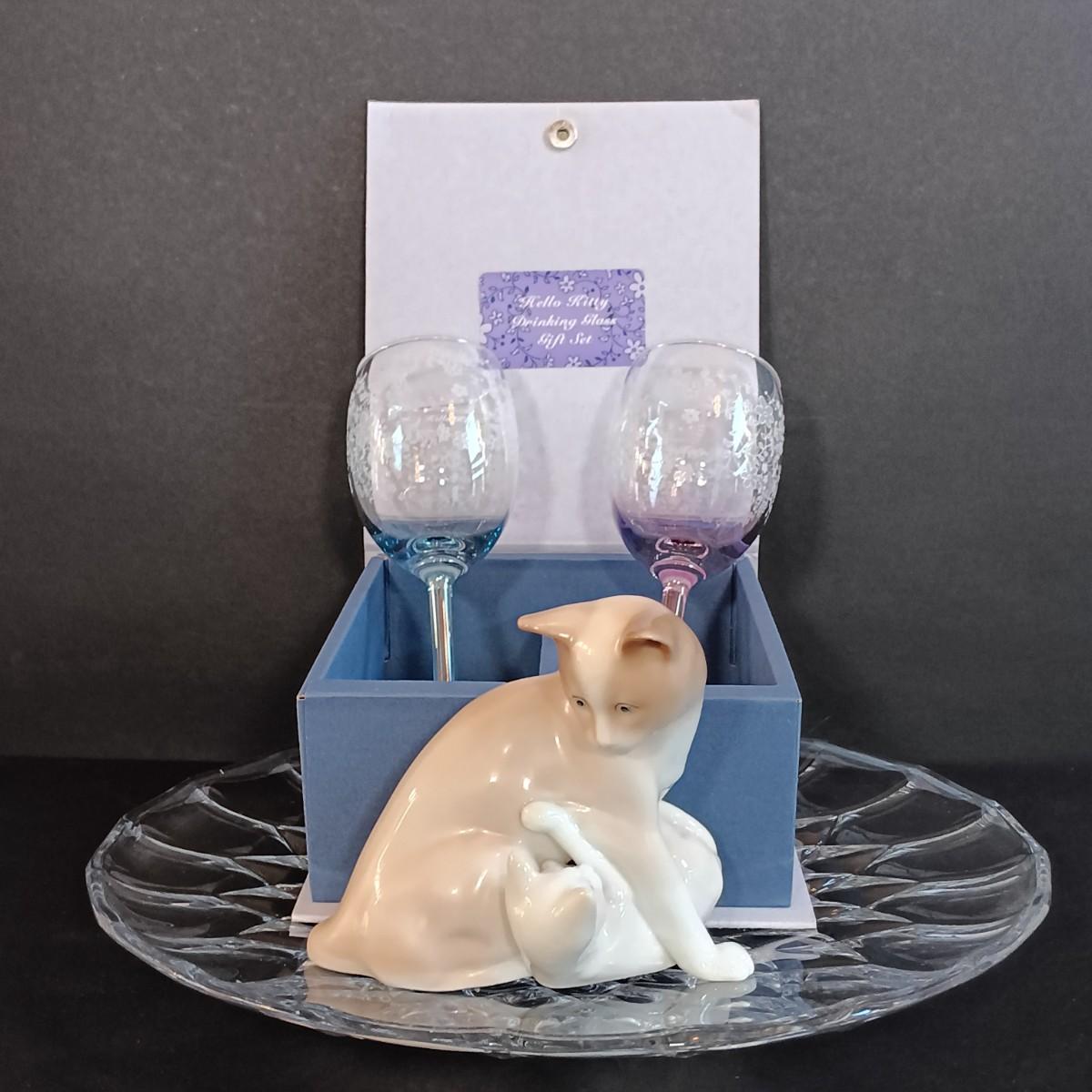LOT 23: Hello Kitty Sanrio 2001 Wine Glass Set, Franklin Mint Cat Figurine & VSL Crystal Plate