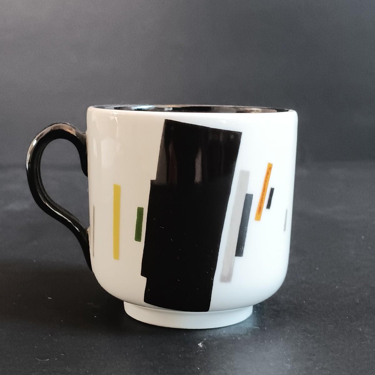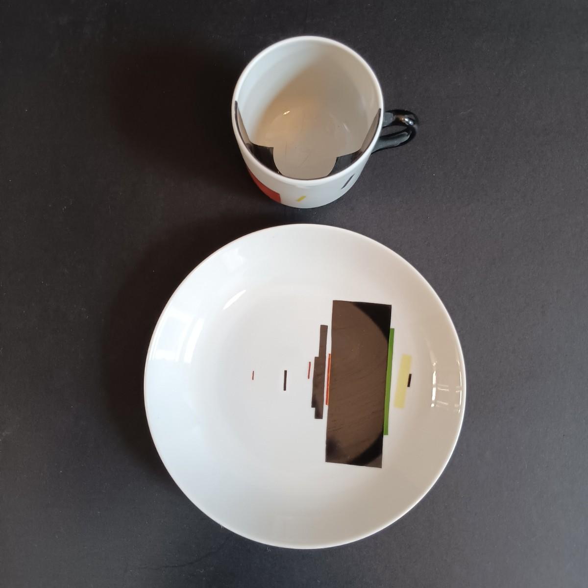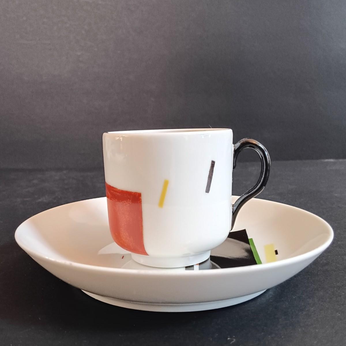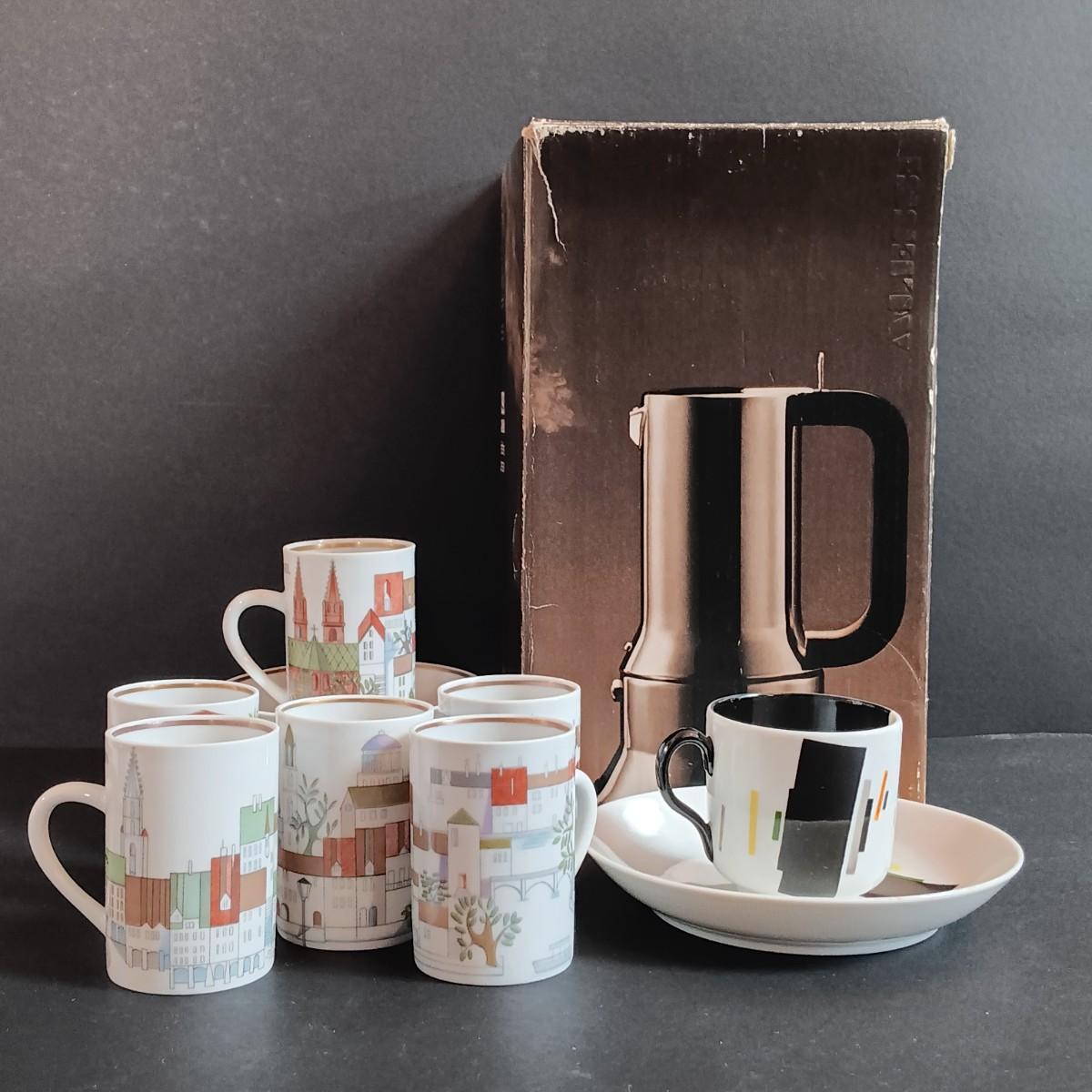 LOT 25: Suisse Langenthal Cities Demitasse Cups, Alessi Espresso Maker & MOMA Suprematist Design Cup and Saucer