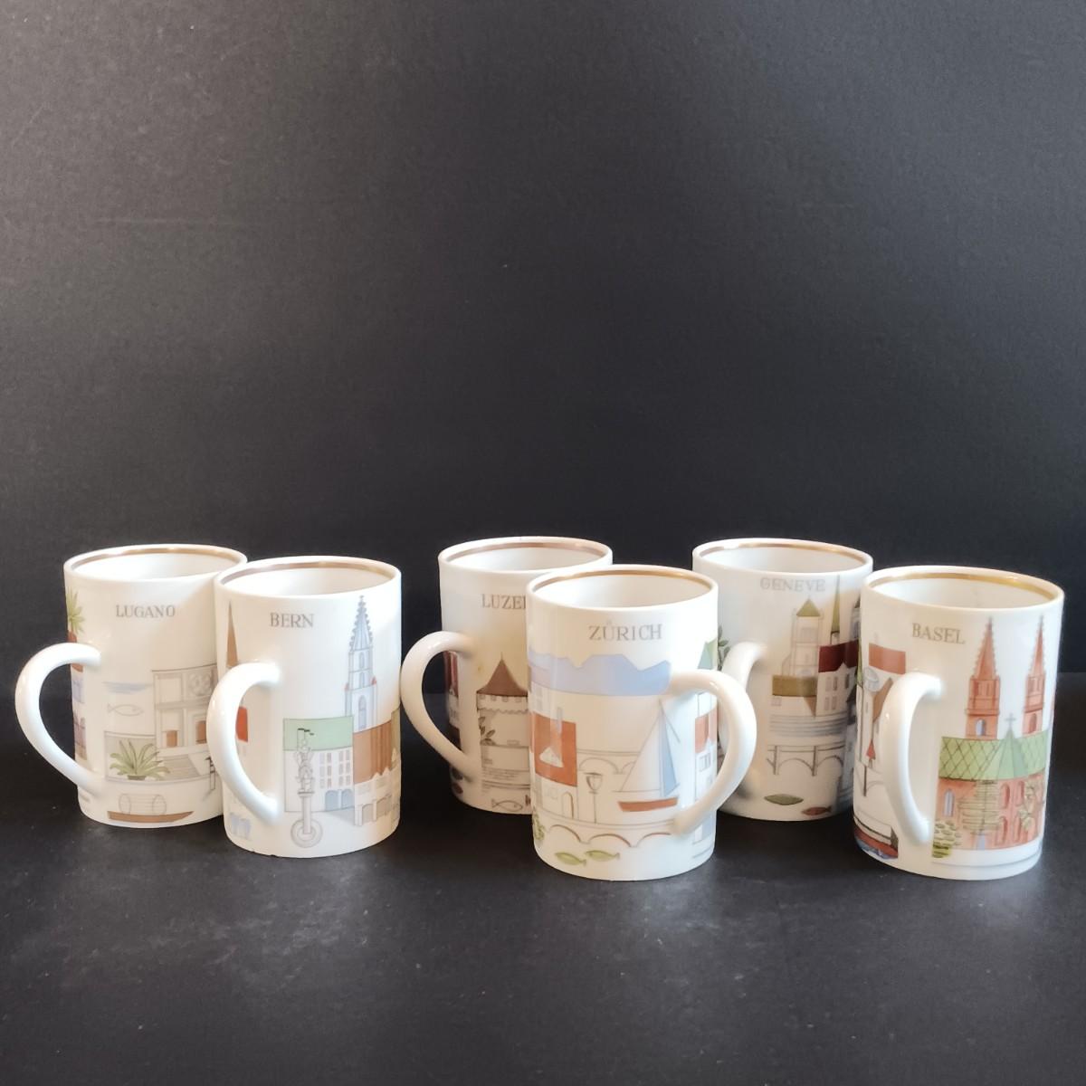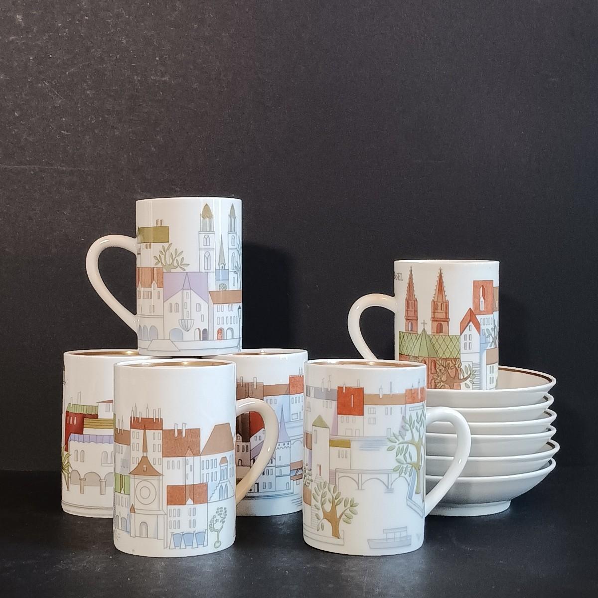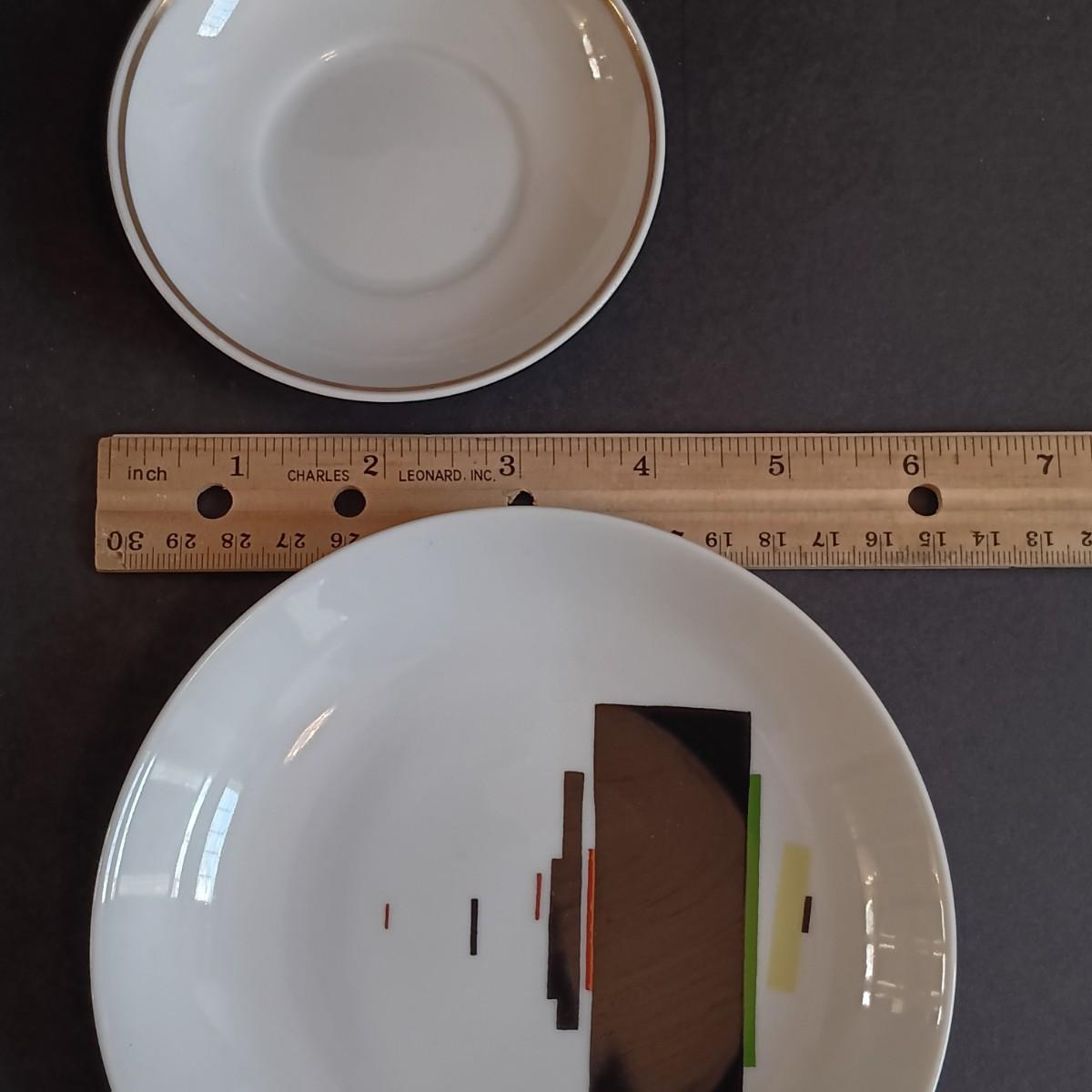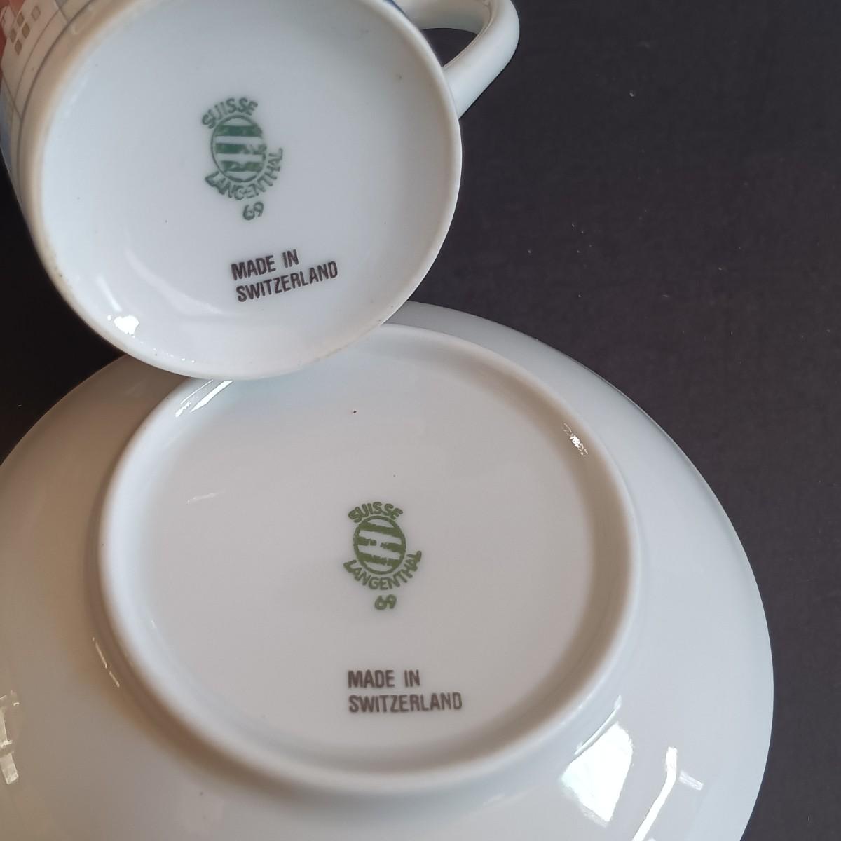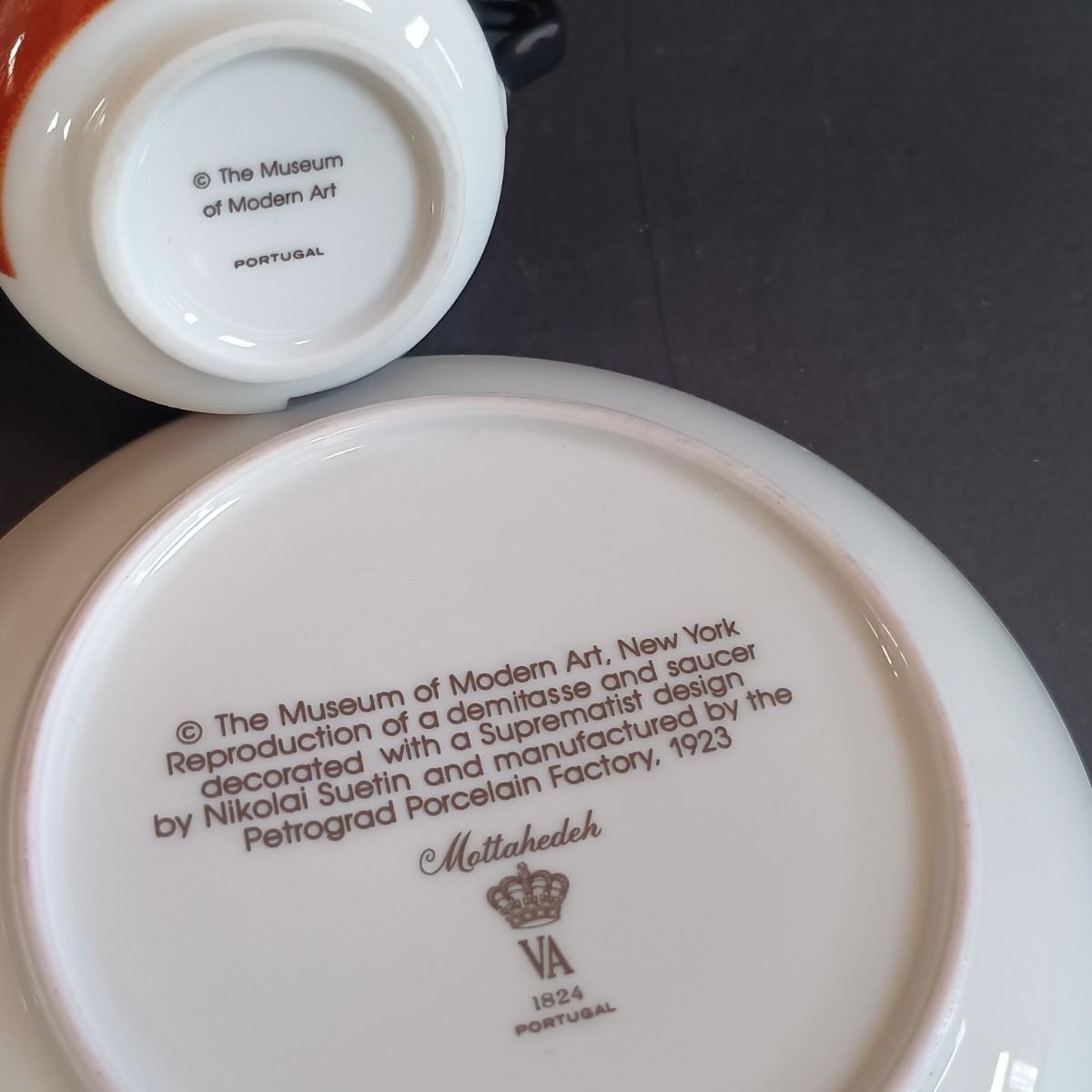 LOT 25: Suisse Langenthal Cities Demitasse Cups, Alessi Espresso Maker & MOMA Suprematist Design Cup and Saucer