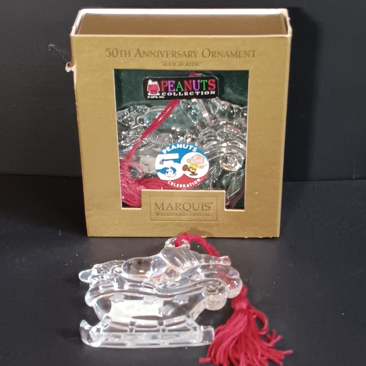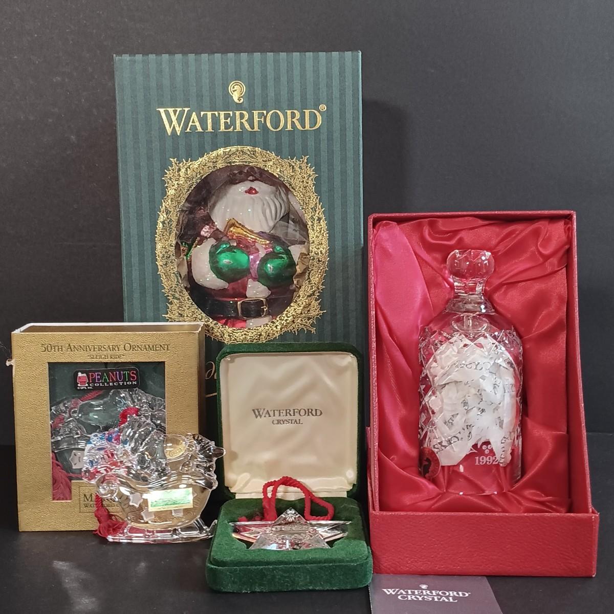 LOT 26: Waterford Crystal Collection - 1998 Collector's Santa Ornament, 50th Anniversary Peanuts Ornaments & More