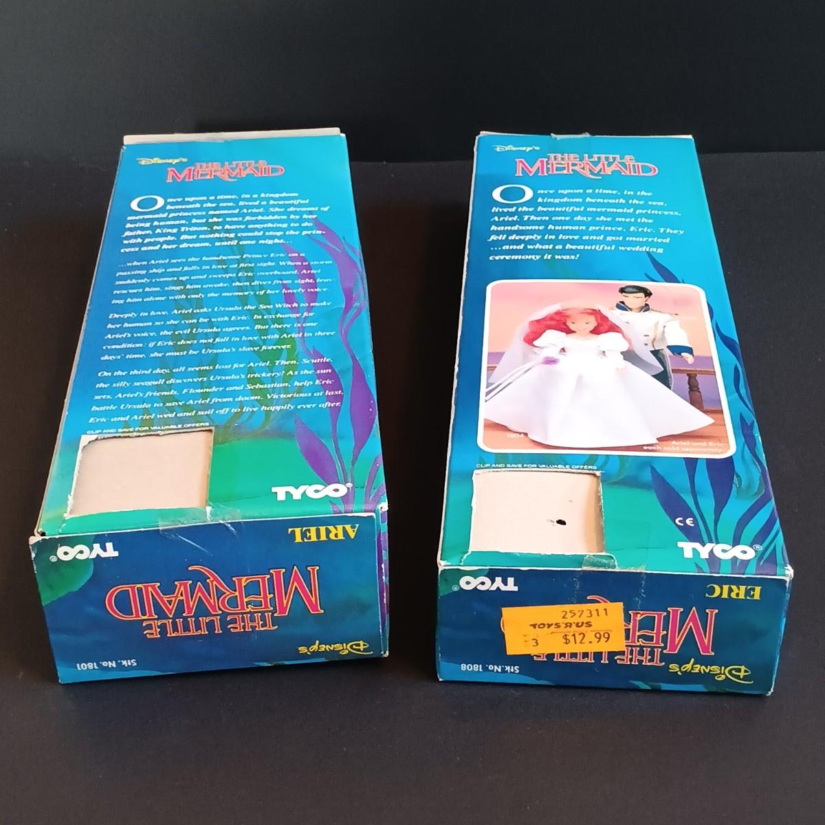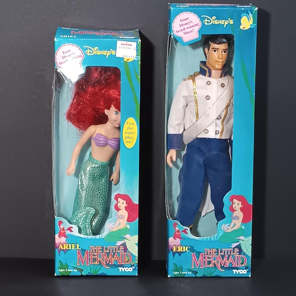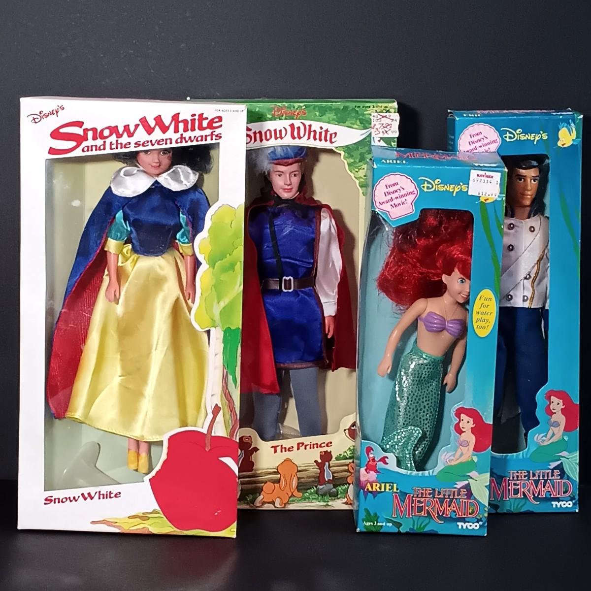 LOT 38: Vintage Bikin Disney Snow White and the Prince Dolls with Tyco Disney Little Mermaid and Eric Dolls