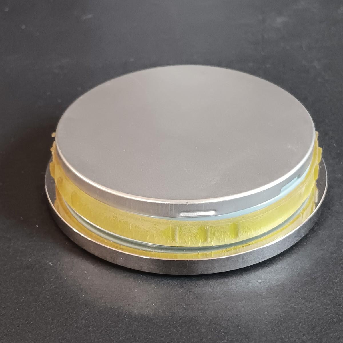The rubber that holds the clock face in place is worn from age.