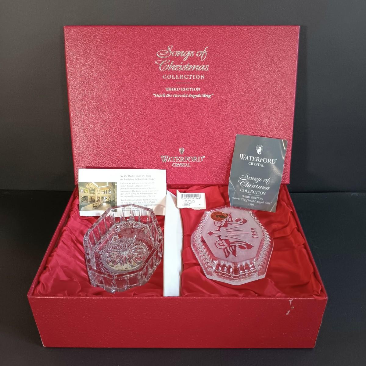 LOT 49: Waterford Crystal Songs of Christmas 3rd Edition "Hark! The Herald Anglels Sing" 1998 Trinket/Music Box In Original Packaging