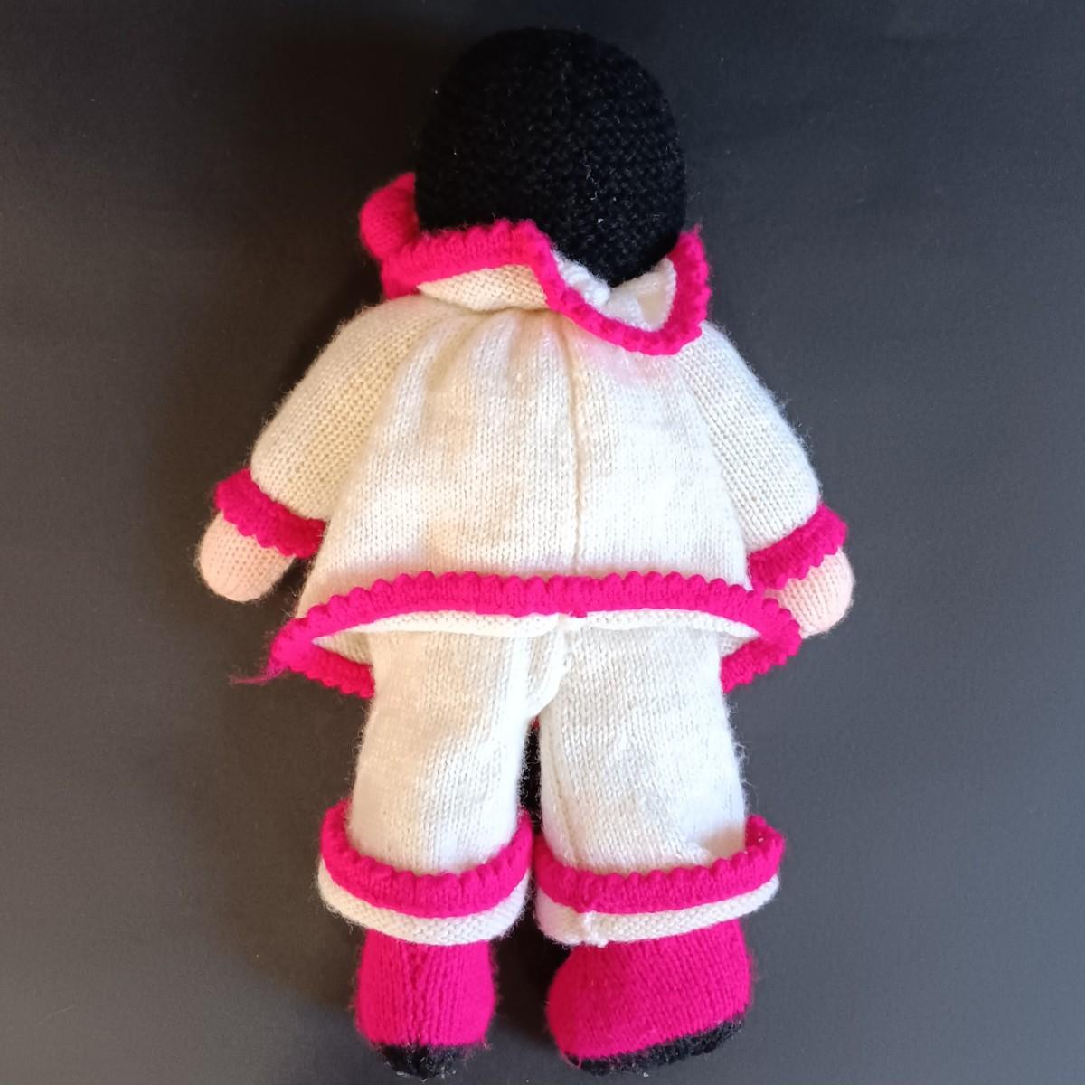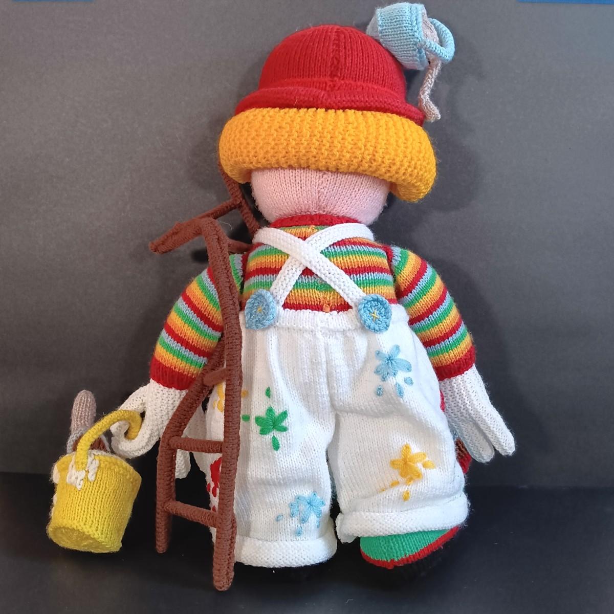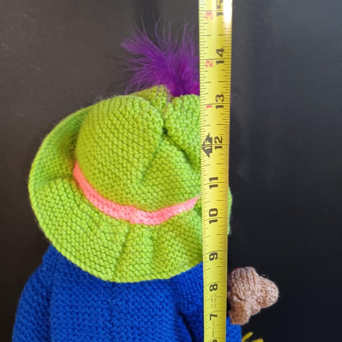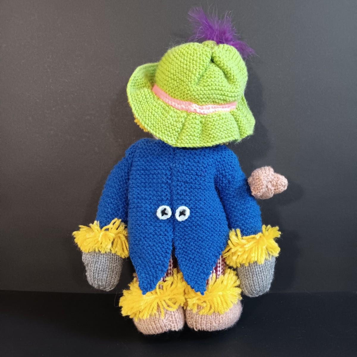 LOT 50: Jean Greenhowe Patterns Knitted 'Sidney Slapstick' Clown, Scarecrow and Pierrot with Little Miss No Name Doll